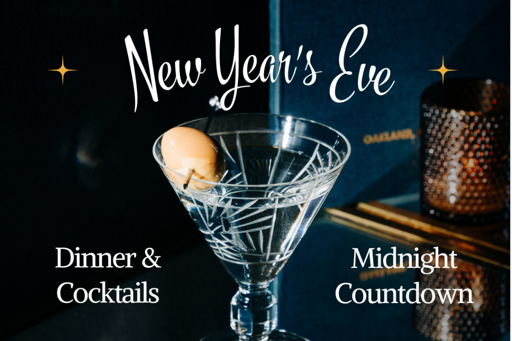Join us at Bardo for a special New Year’s Eve celebration. Savor Chef Amol’s NYE Prix Fixe menu while you sip, toast, and sparkle your way to 2025 in classic vintage ambiance. $125/pp for 4 courses. Vegetarian option available. Complimentary glass of bubbles for all NYE dinner guests! Please note: Our last seating for dinner is at 9:45pm, but the bar will be open late with a Midnight Countdown featuring DJ Yens. Click here for info.