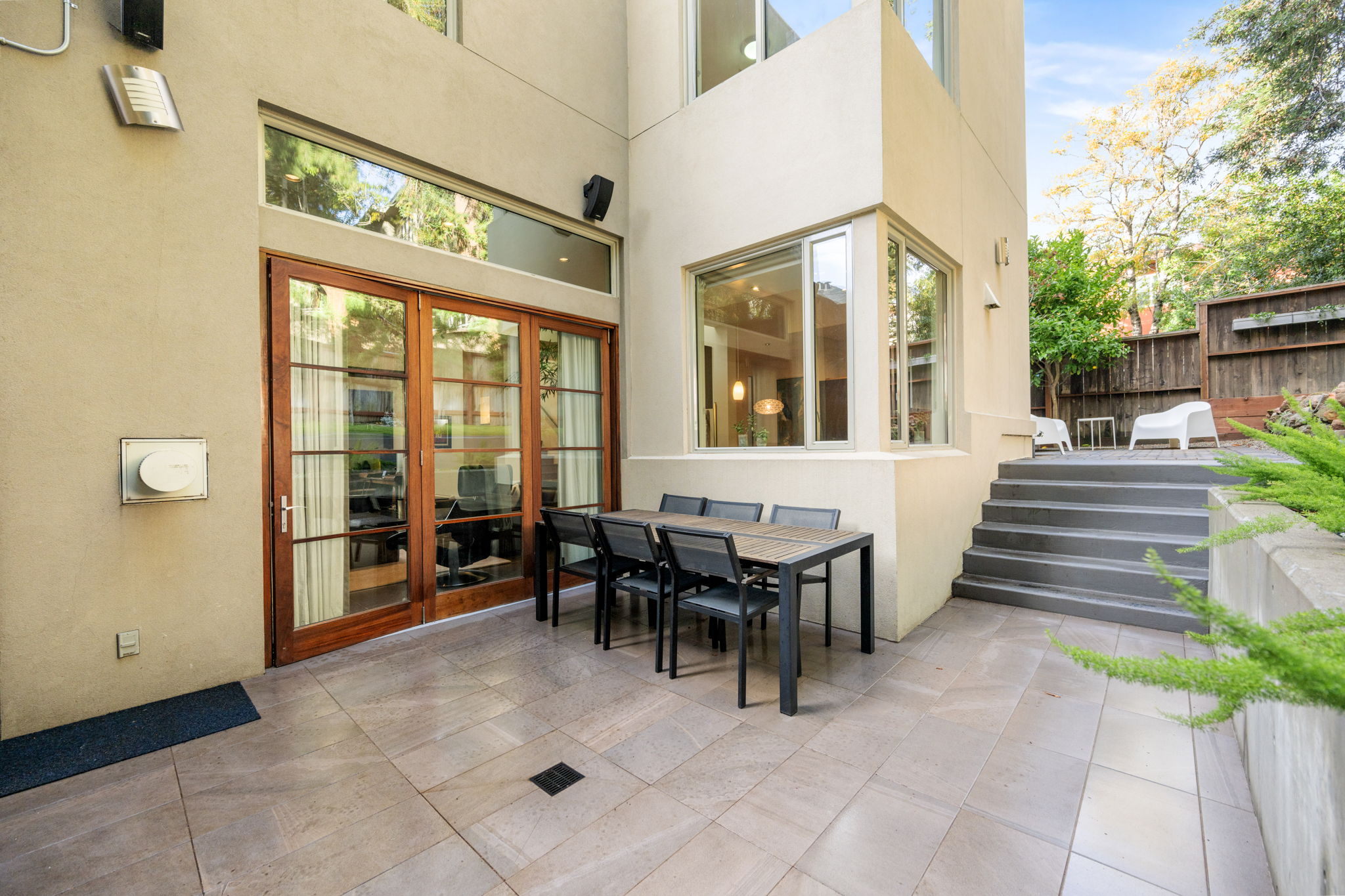 With all bedrooms located on upper levels, the spacious primary suite features a private balcony, lavish spa bathroom, jacuzzi tub, expansive shower with dual heads, double sink vanity, and luxurious walk-in closet. Flooded with light and offering serene private vistas from all areas of the home leading, its grand jewel is an awe-inspiring rooftop deck lending exclusivity and views of greater San Francisco.
