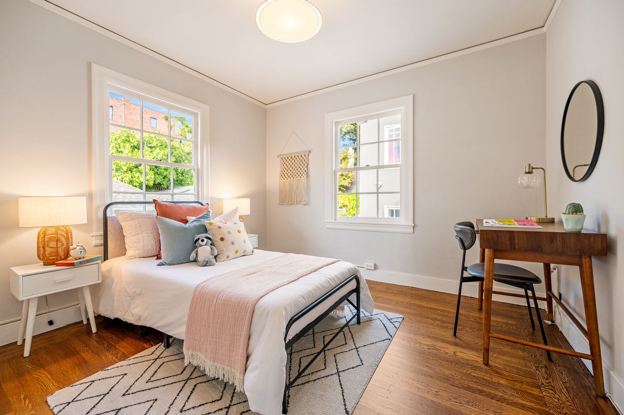 The detached garage is positioned off the rear of the home and offers plentiful room for both vehicles and storage. Centrally located just minutes to the Bay Bridge to San Francisco, and a short stroll to Beth Jacob Congregation, Lakeshore Avenue retail, and the award-winning Crocker Highlands Elementary.
