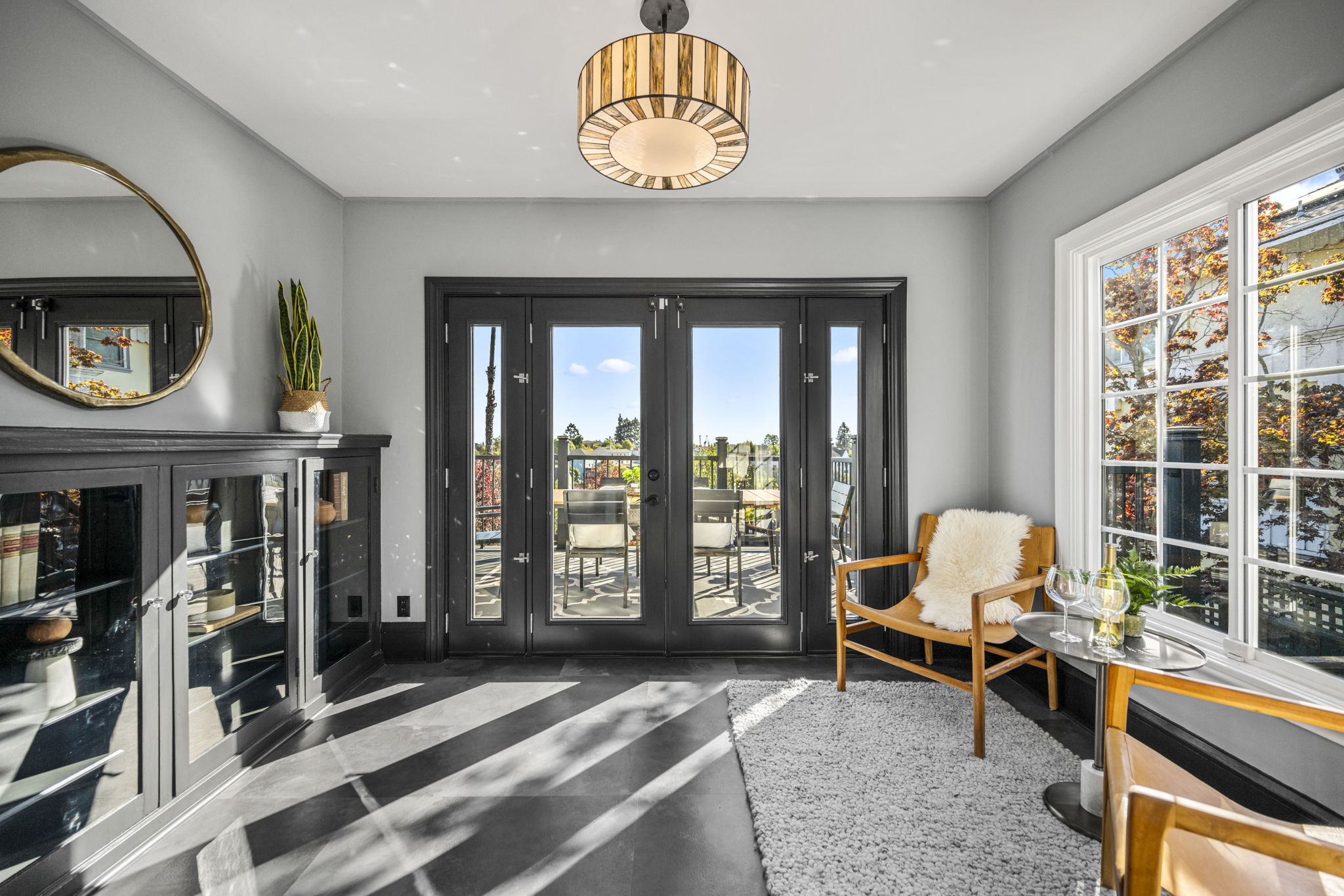 *Sunny Living Room with Exquisite Fireplace