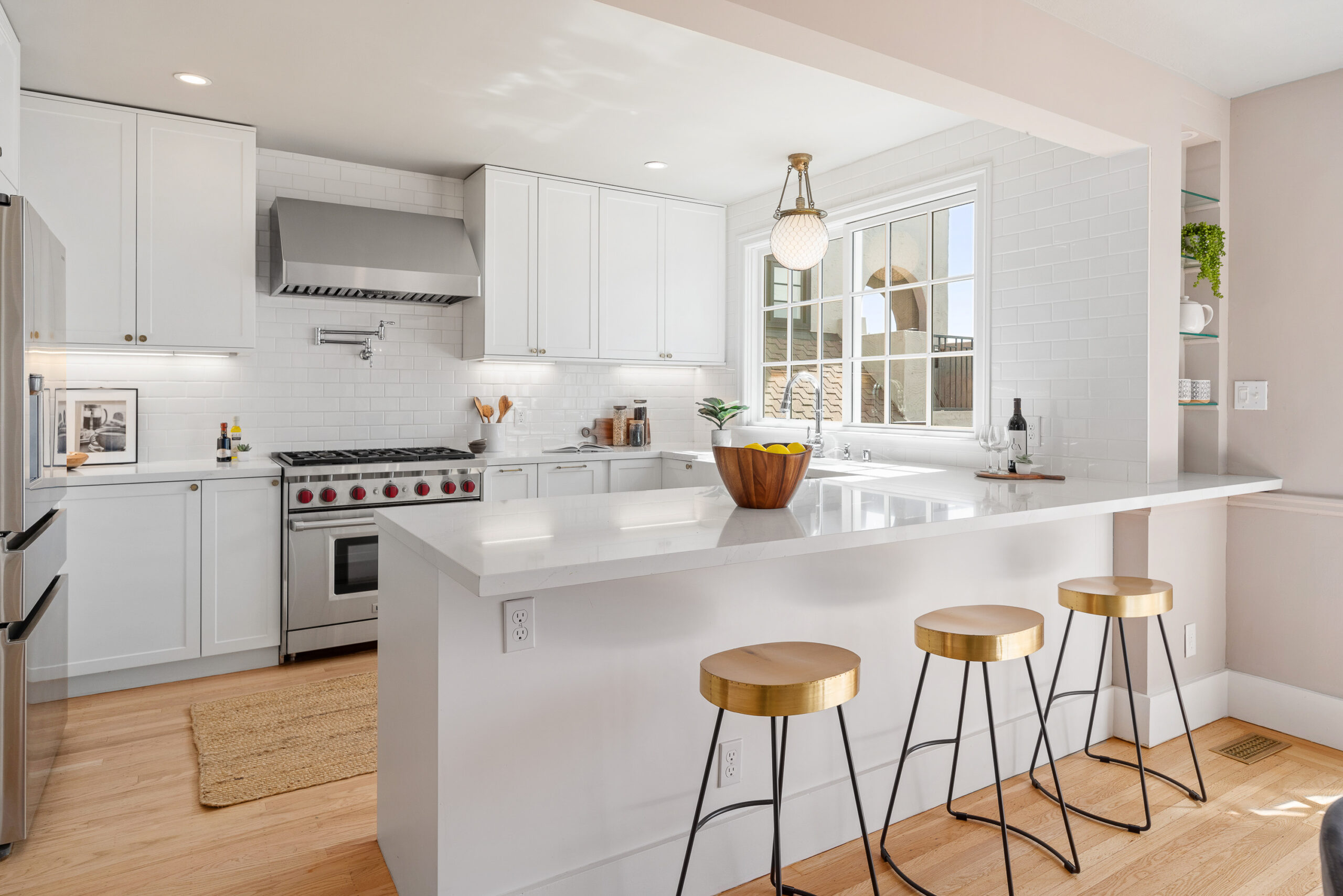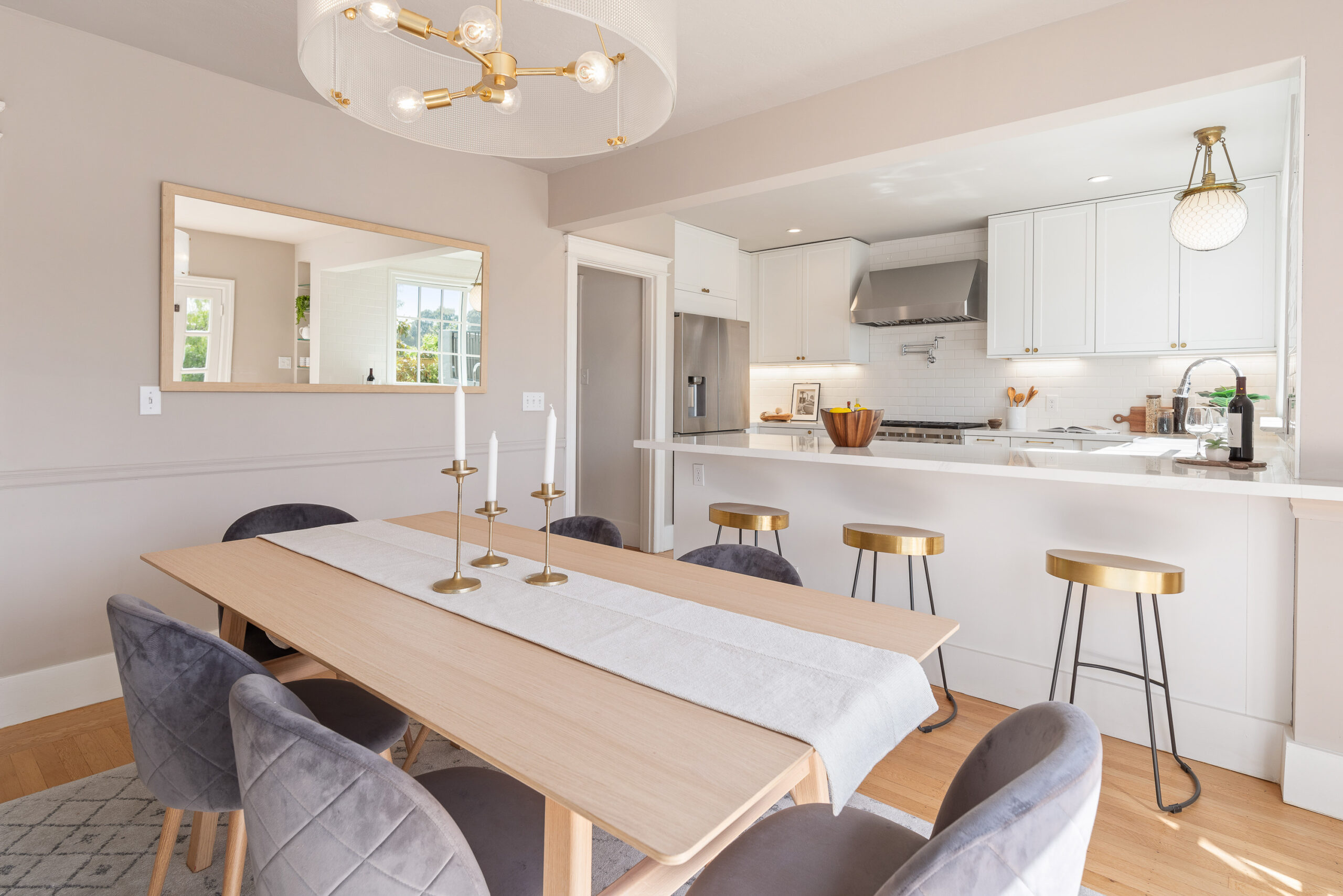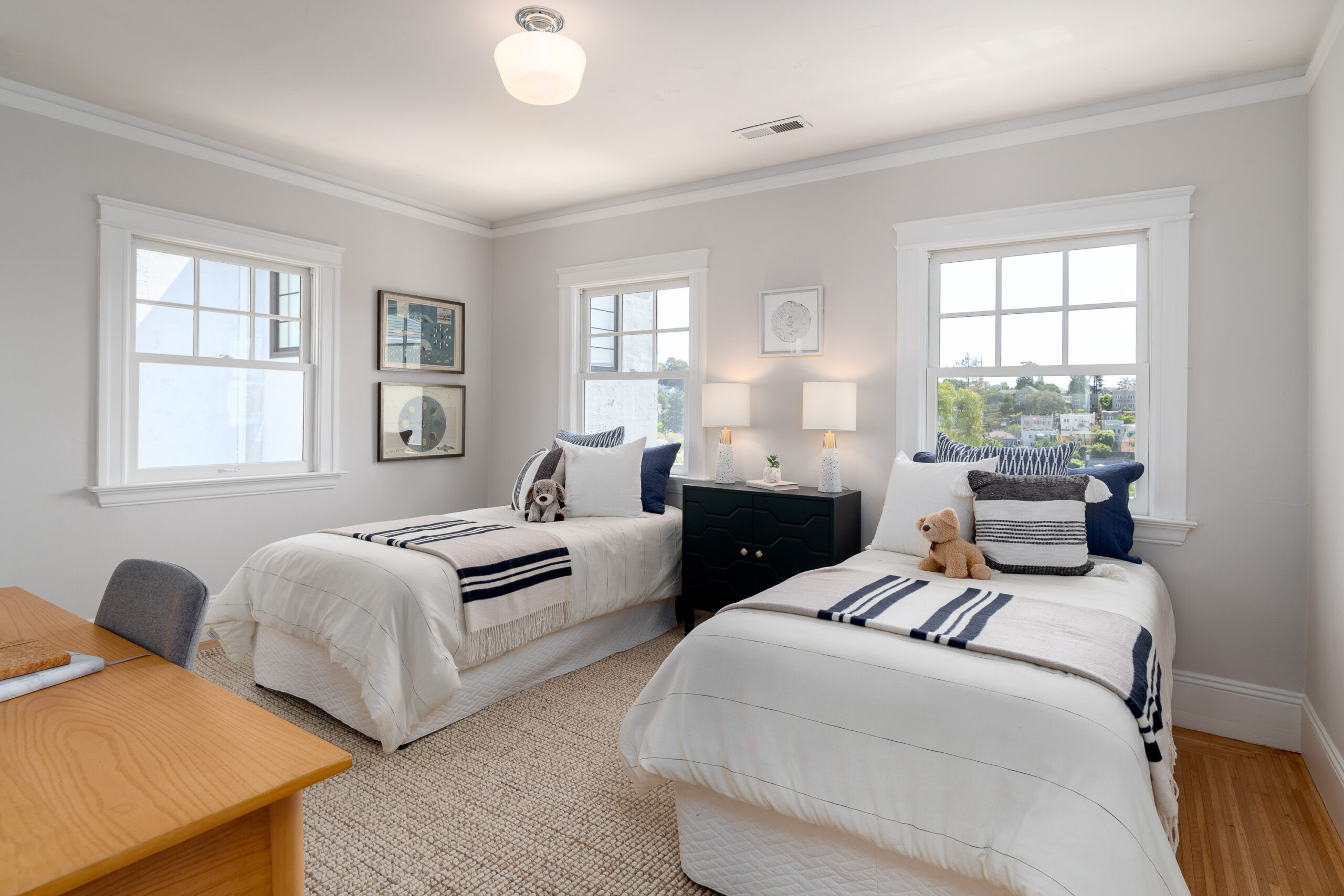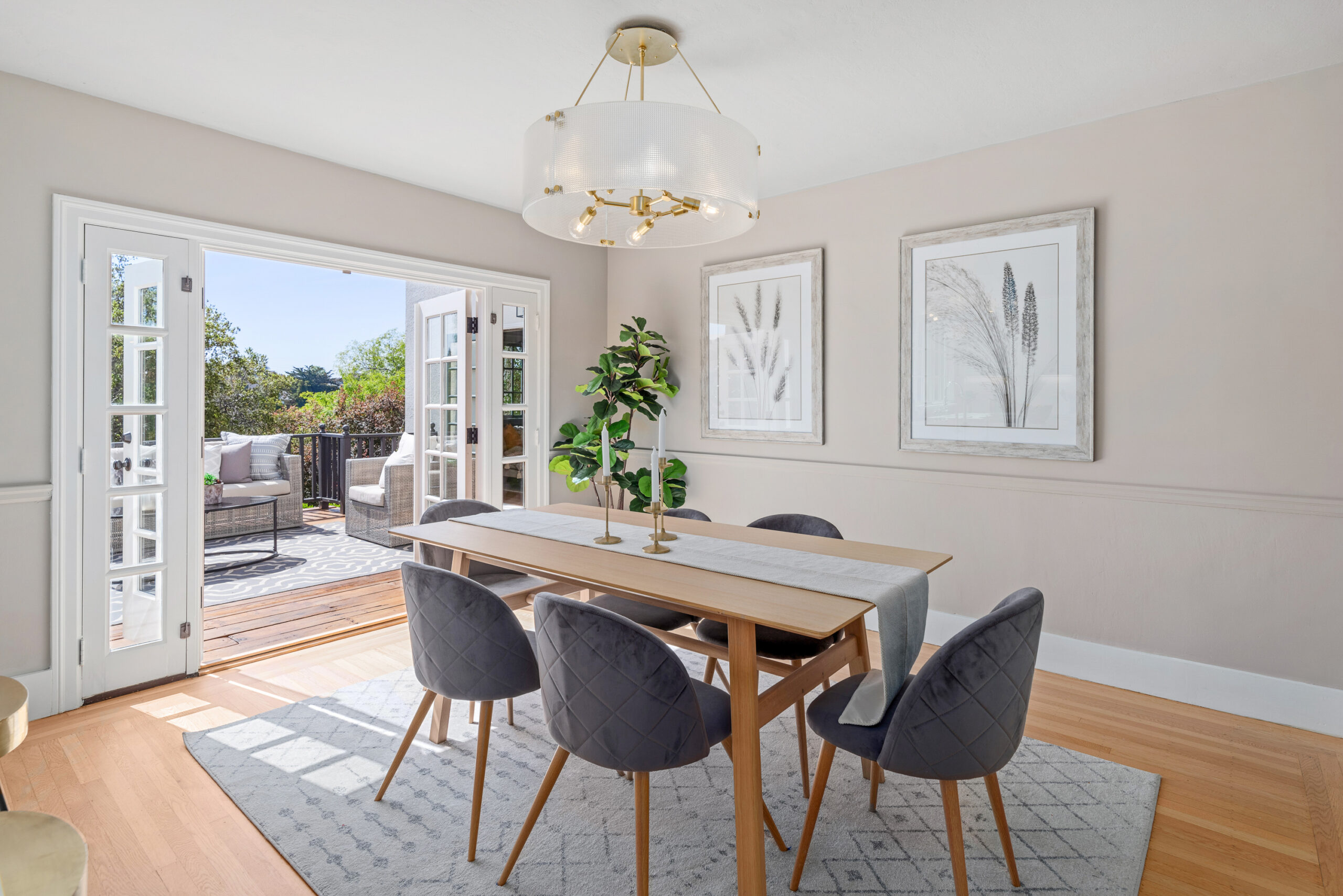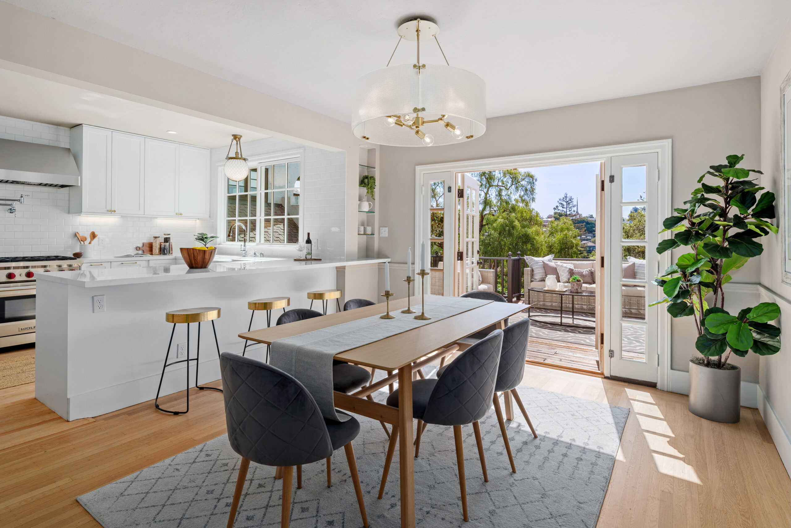 Striking storybook Traditional on one of Crocker Highlands most coveted streets. Recently renovated chef’s kitchen with designer finishes and stainless appliances opening to a dining room with French Doors leading onto decks offering stunning neighborhood views. Spacious, light-filled living room with designer lighting, fireplace, and adjacent bonus room/study.