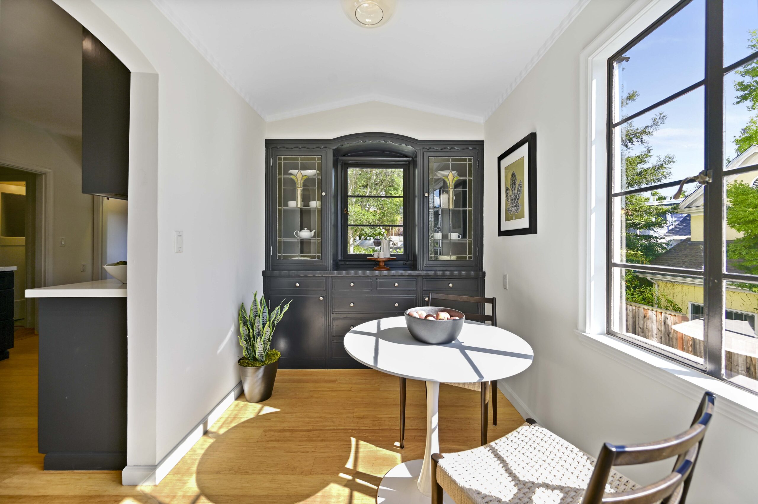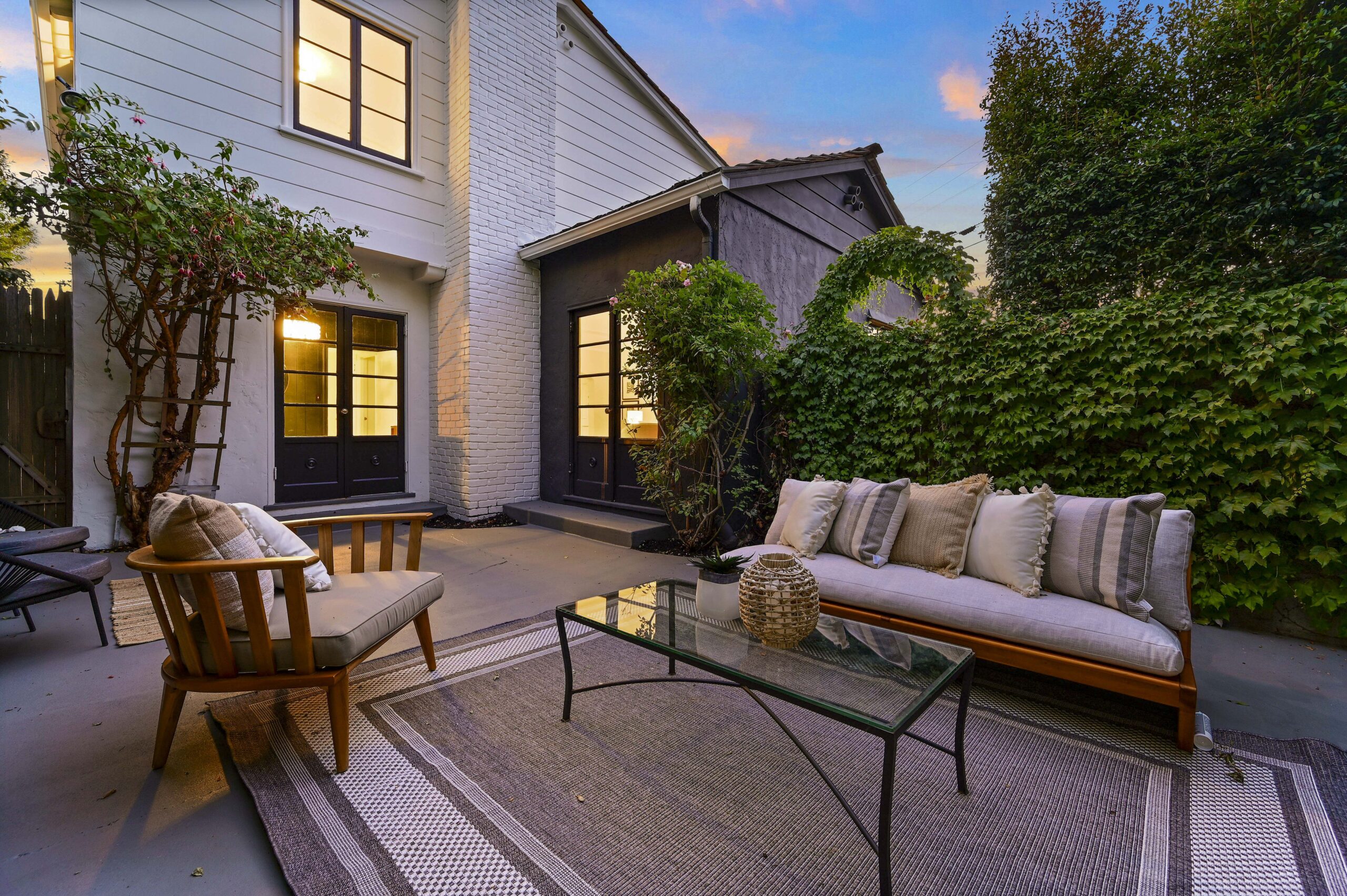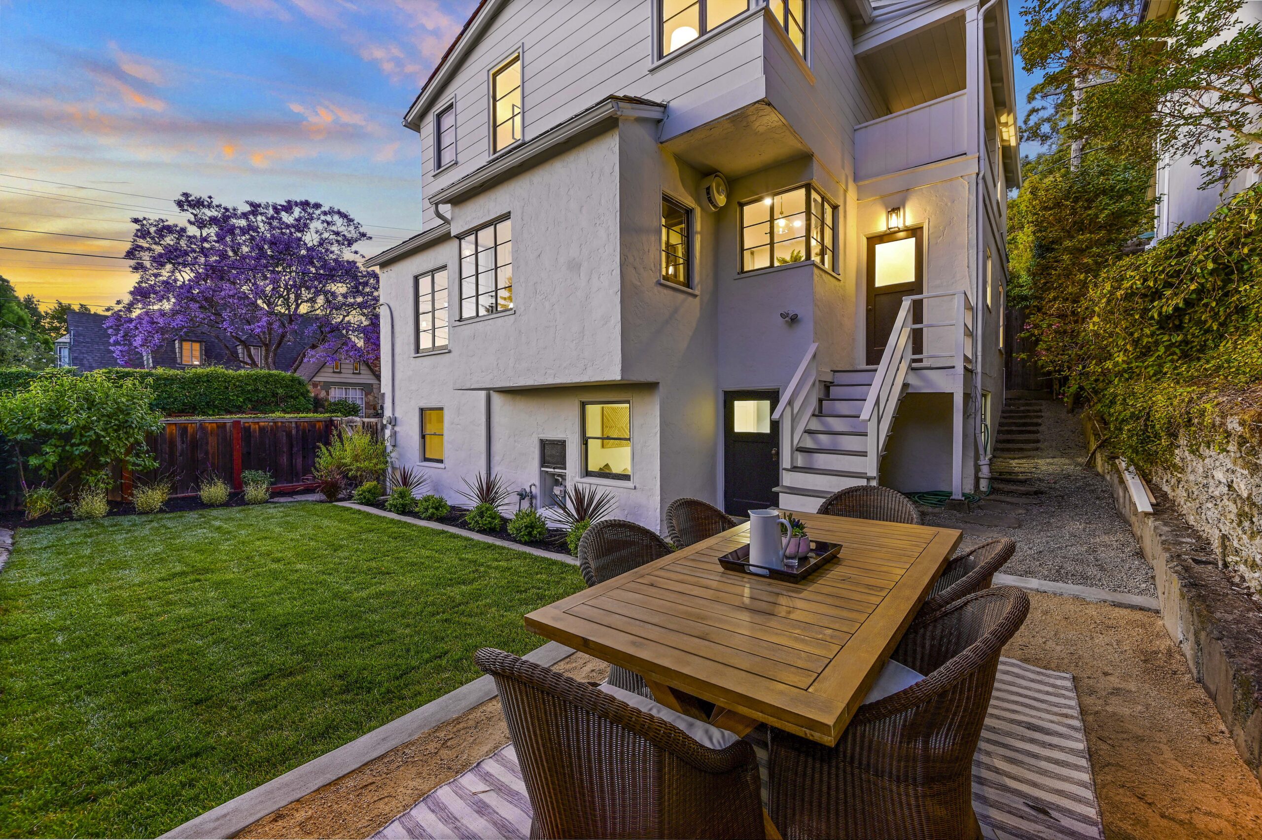 Crocker Highlands treasure positioned on a quiet corner lot and loaded with vintage charm! Captivating from the start, with its wide and welcoming covered front porch, this sun-drenched home will steal your heart. Spacious living room with wide plank oak floors, original wood burning fireplace, exposed beamed ceilings and french doors flowing onto an enchanting ivy clad courtyard with built-in outdoor fireplace perfect for entertaining outdoors on warm summer evenings. Sunny dining room with large picture window overlooking the neighborhood. Updated kitchen with eat-in nook combines original details with modern conveniences including all new stainless appliances, quartz countertops, and designer tile backsplash.