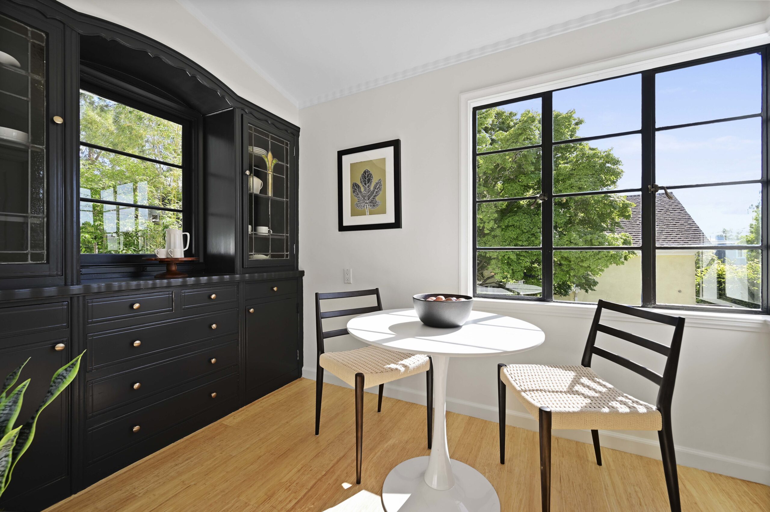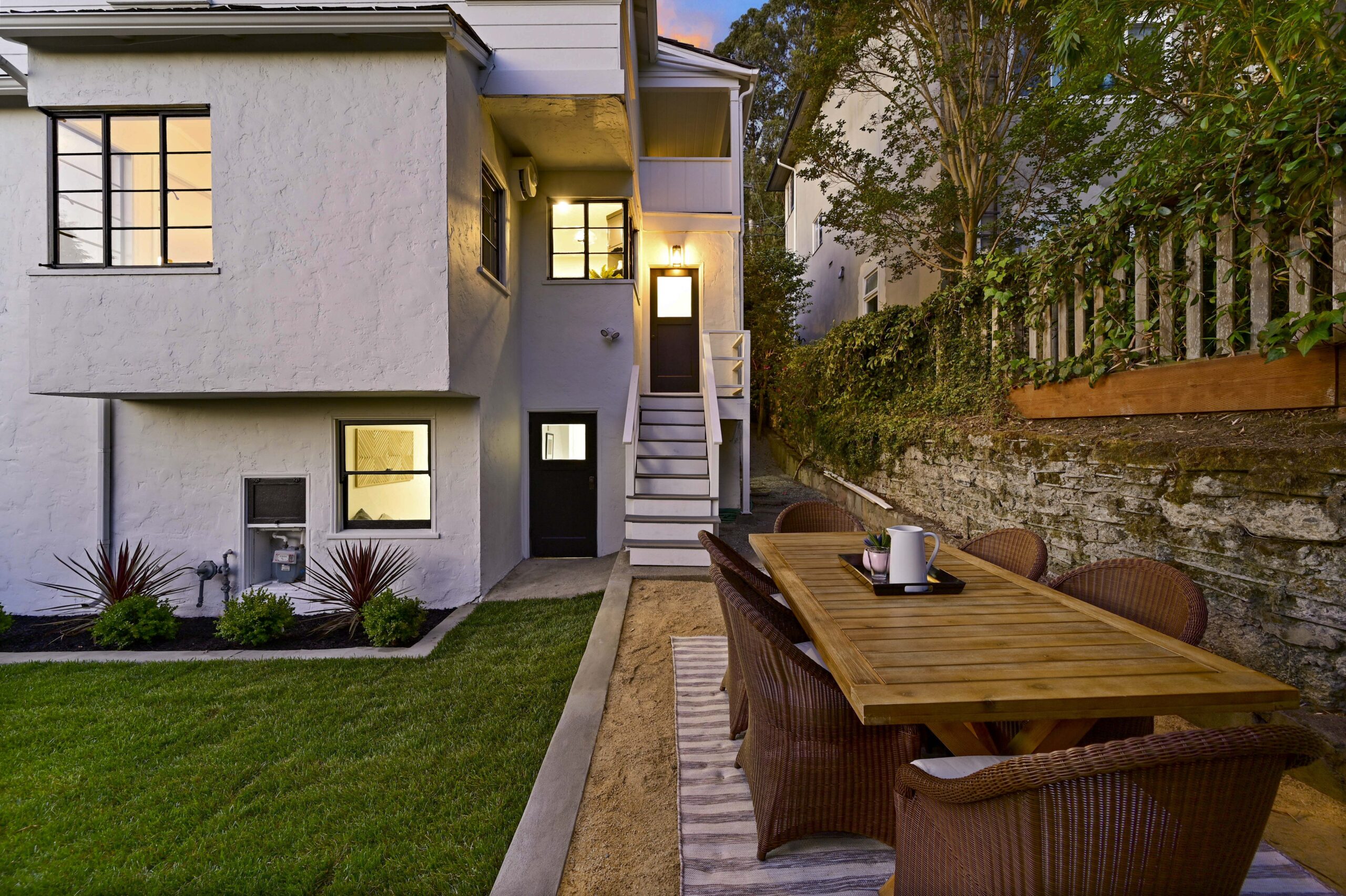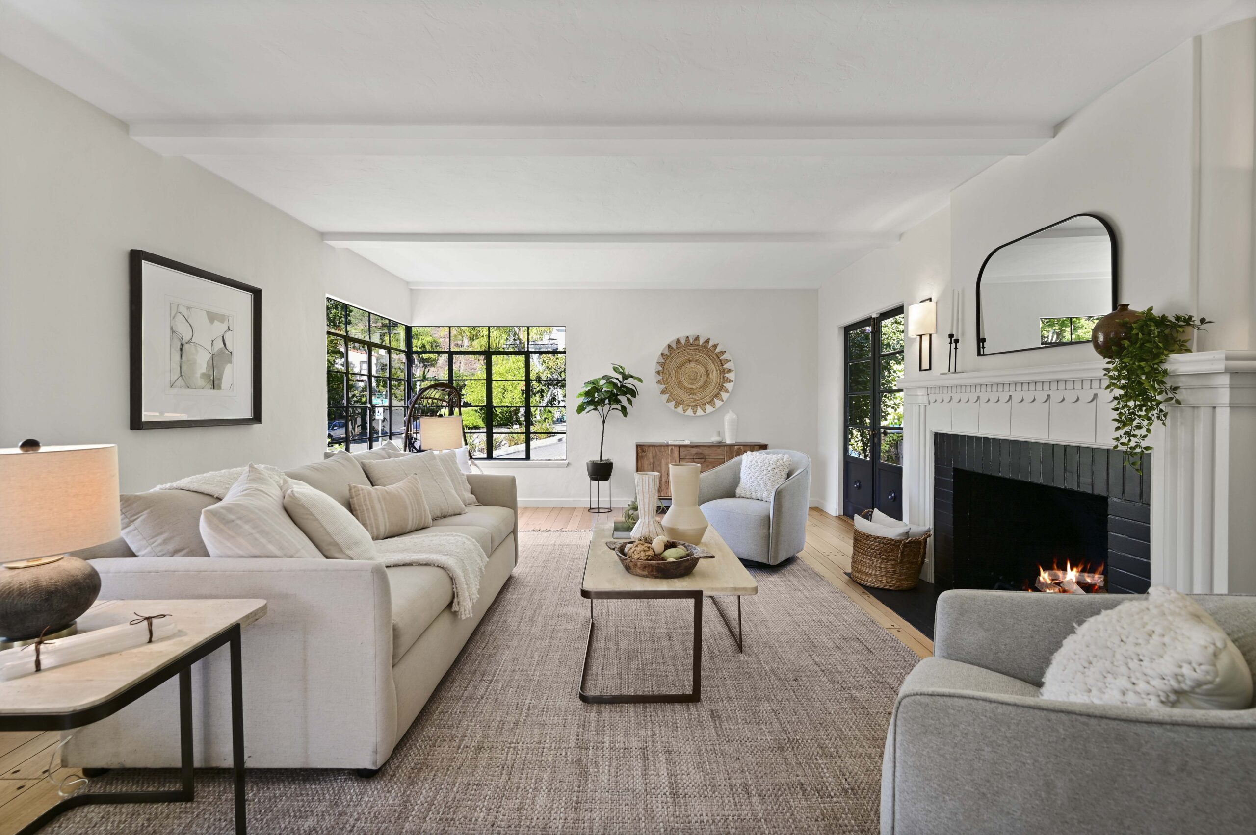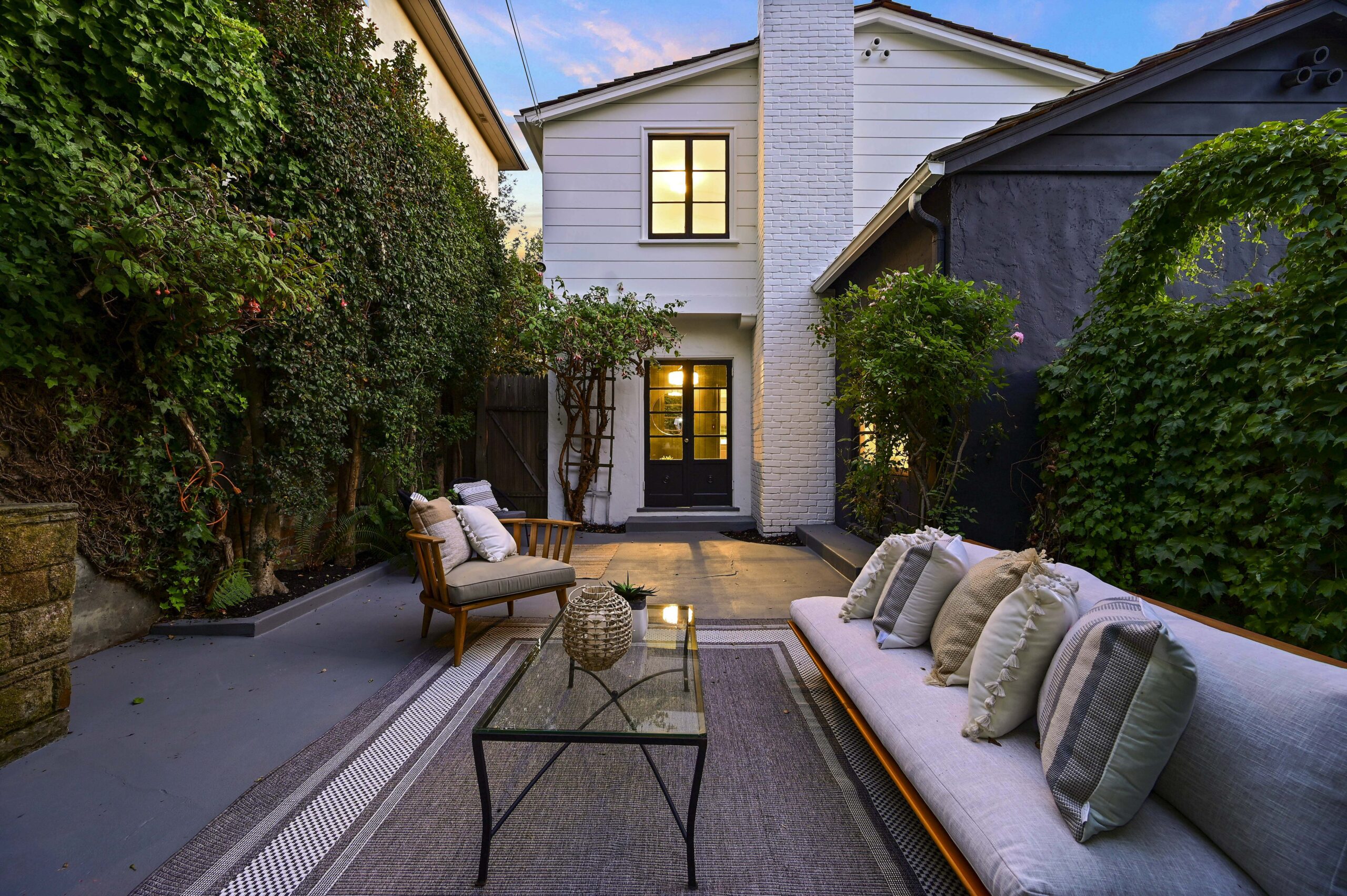 Crocker Highlands treasure positioned on a quiet corner lot and loaded with vintage charm! Captivating from the start, with its wide and welcoming covered front porch, this sun-drenched home will steal your heart. Spacious living room with wide plank oak floors, original wood burning fireplace, exposed beamed ceilings and french doors flowing onto an enchanting ivy clad courtyard with built-in outdoor fireplace perfect for entertaining outdoors on warm summer evenings. Sunny dining room with large picture window overlooking the neighborhood. Updated kitchen with eat-in nook combines original details with modern conveniences including all new stainless appliances, quartz countertops, and designer tile backsplash.