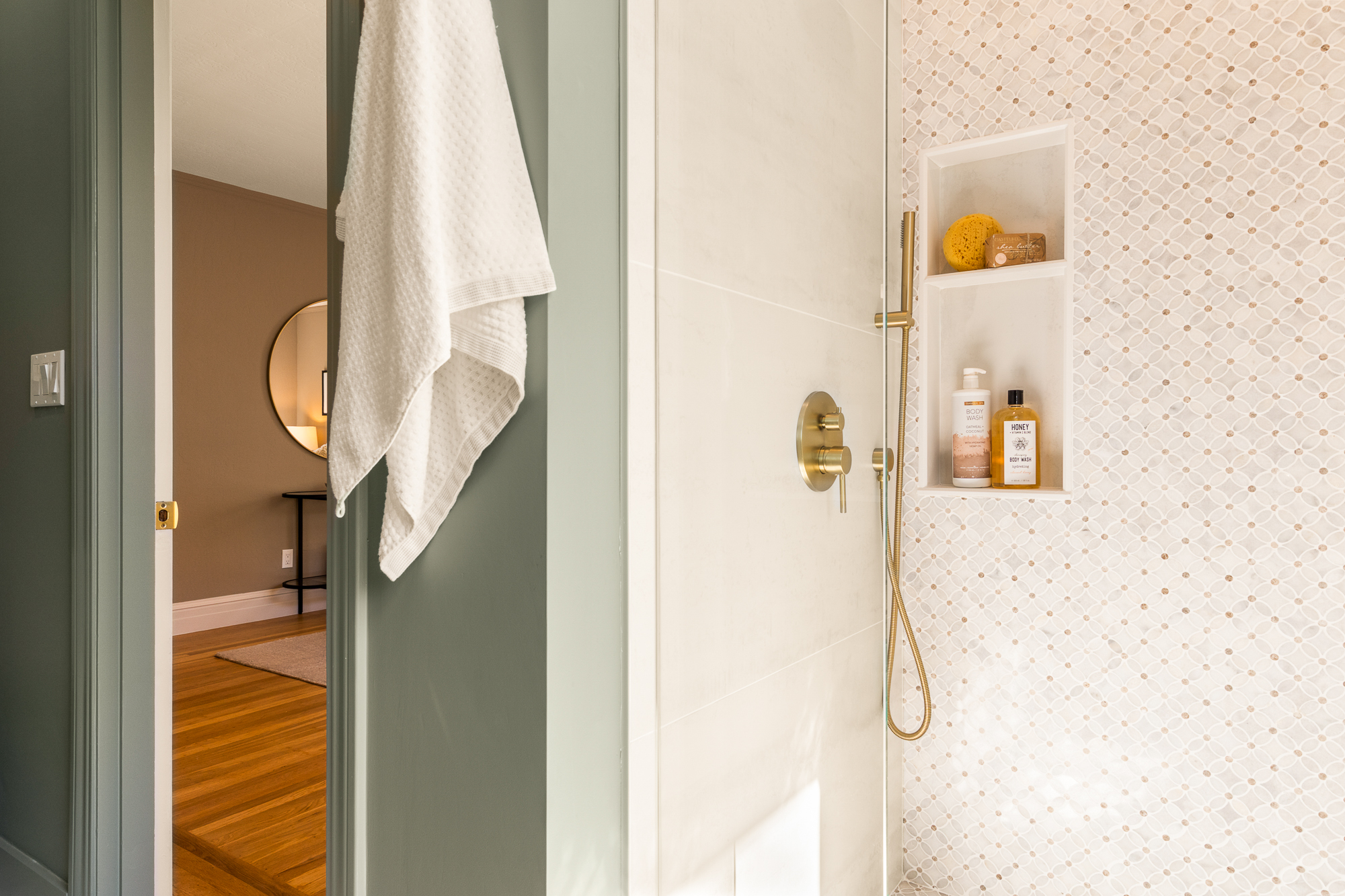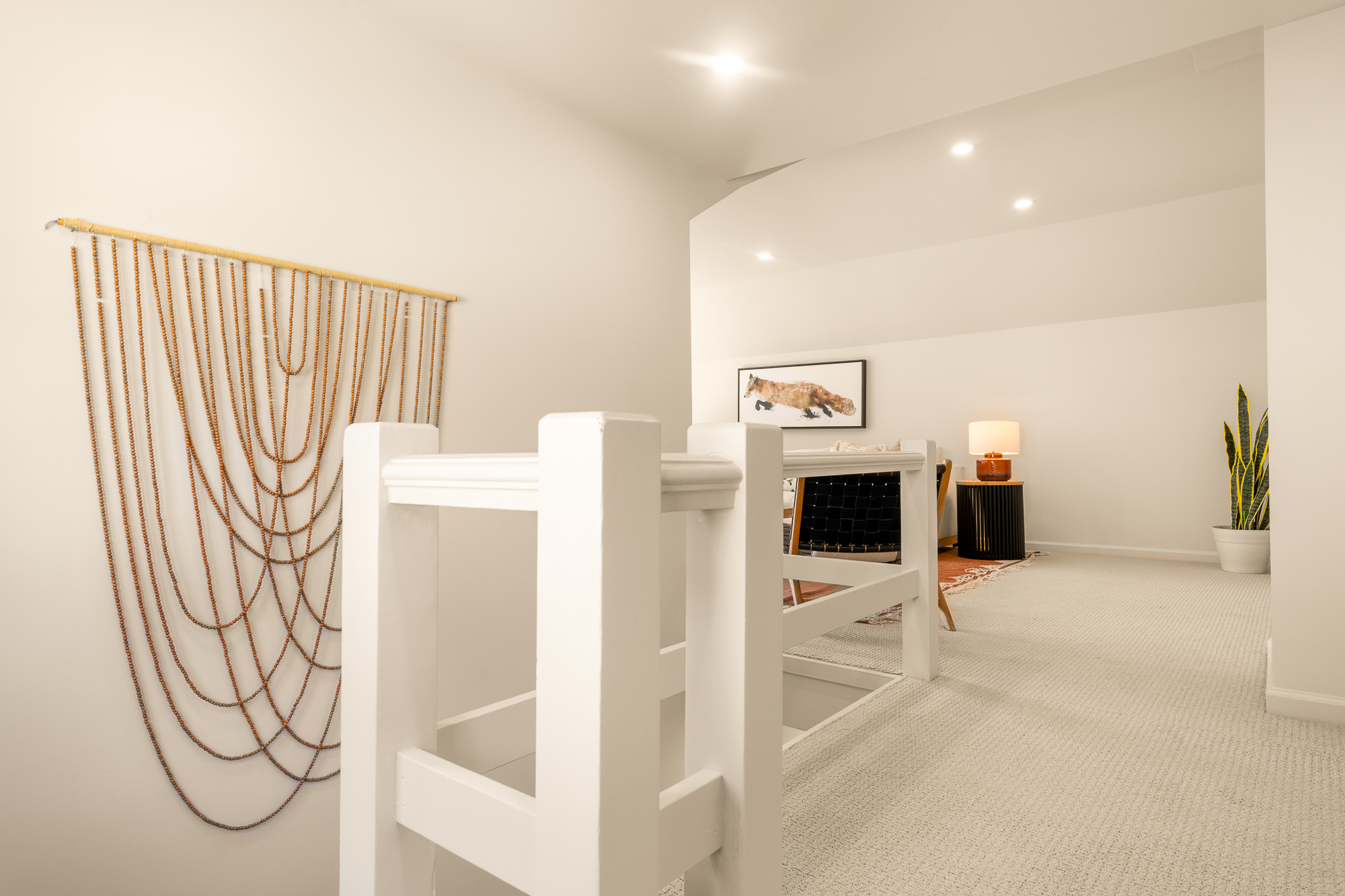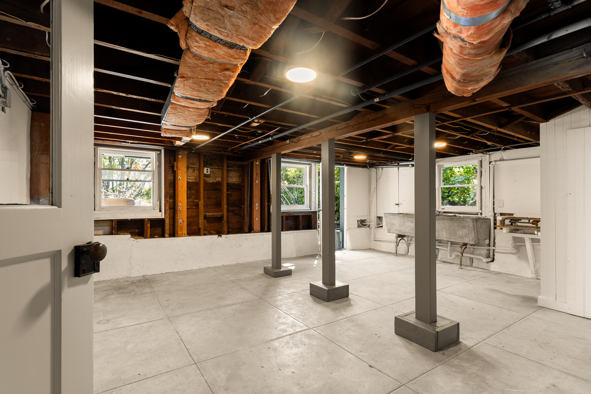 The main level offers three bedrooms, including a serene primary suite with a refreshed bespoke bathroom. A spacious hall bath showcases designer finishes, a frameless glass shower, and a luxe vanity.
