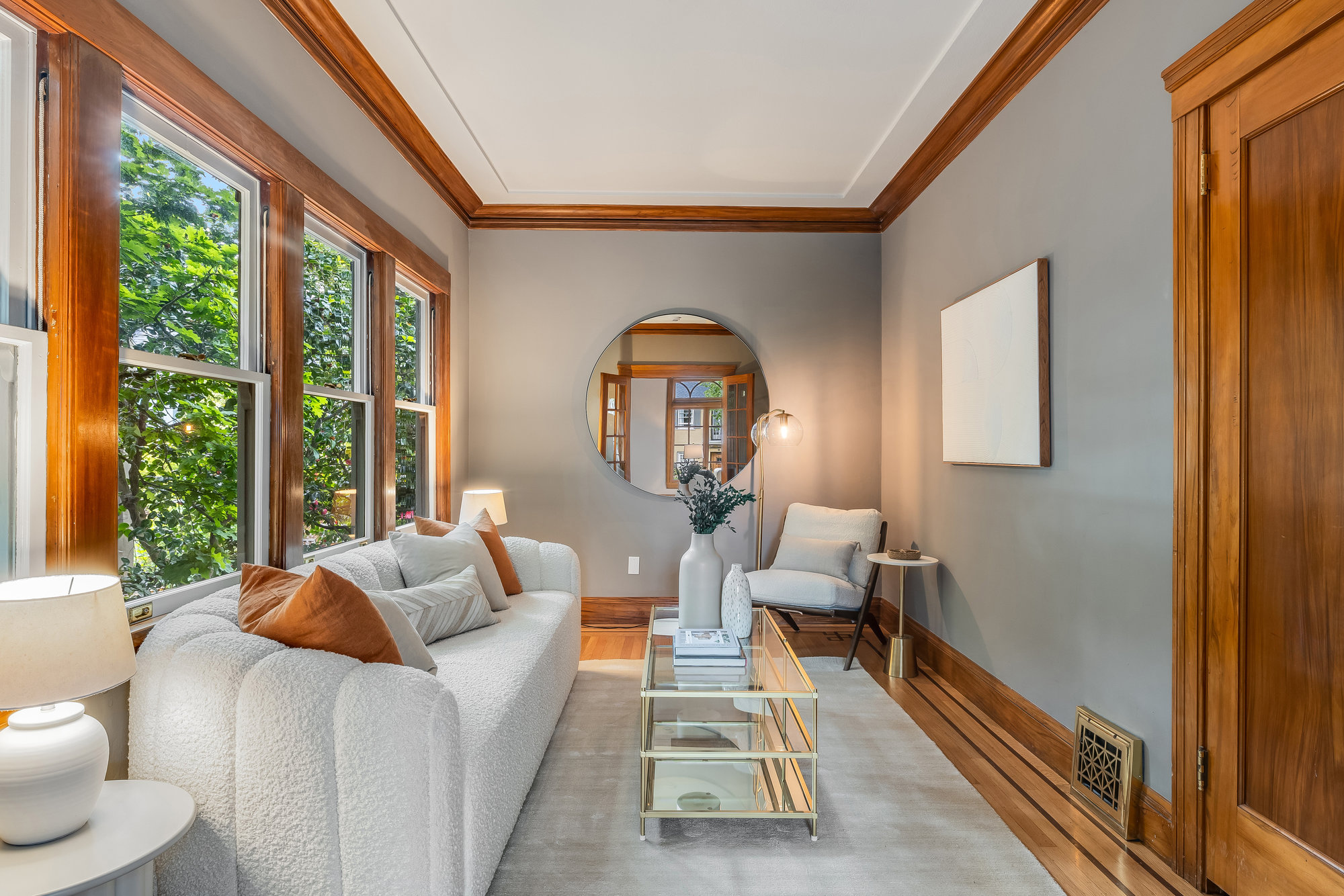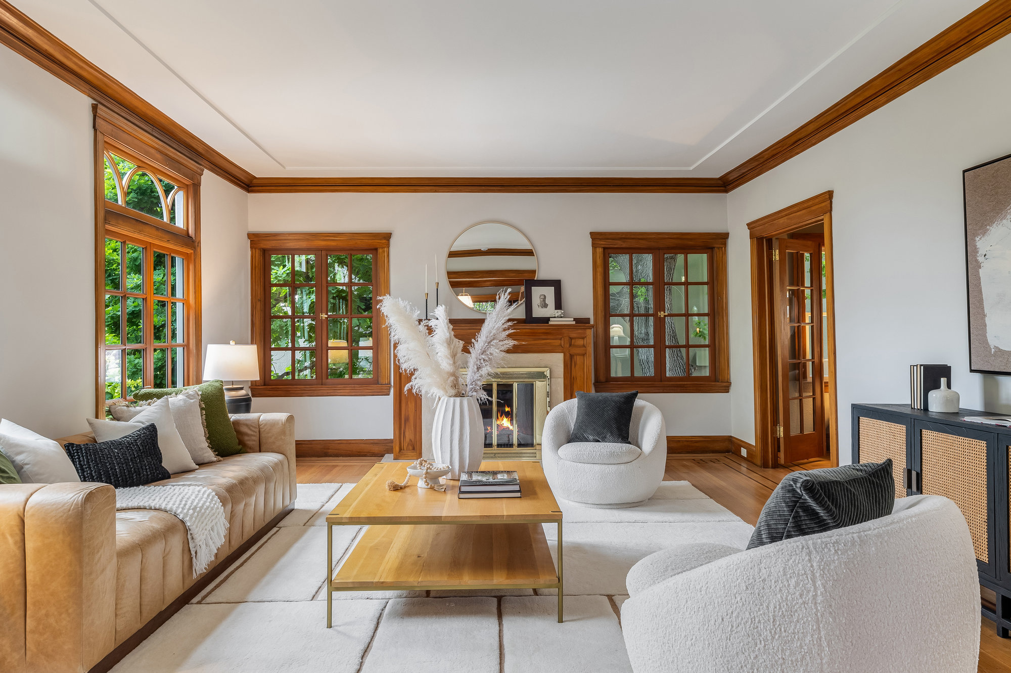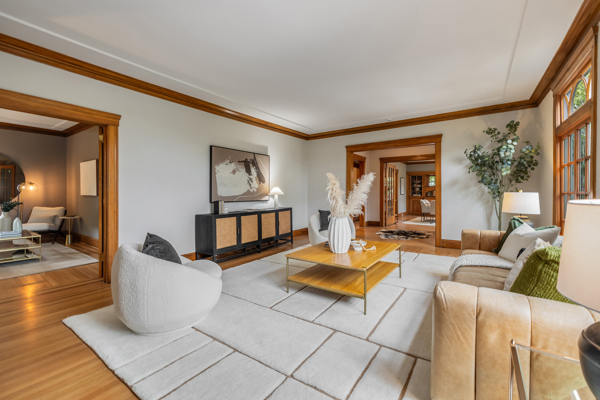 — Grand Living Room with Gumwood Details