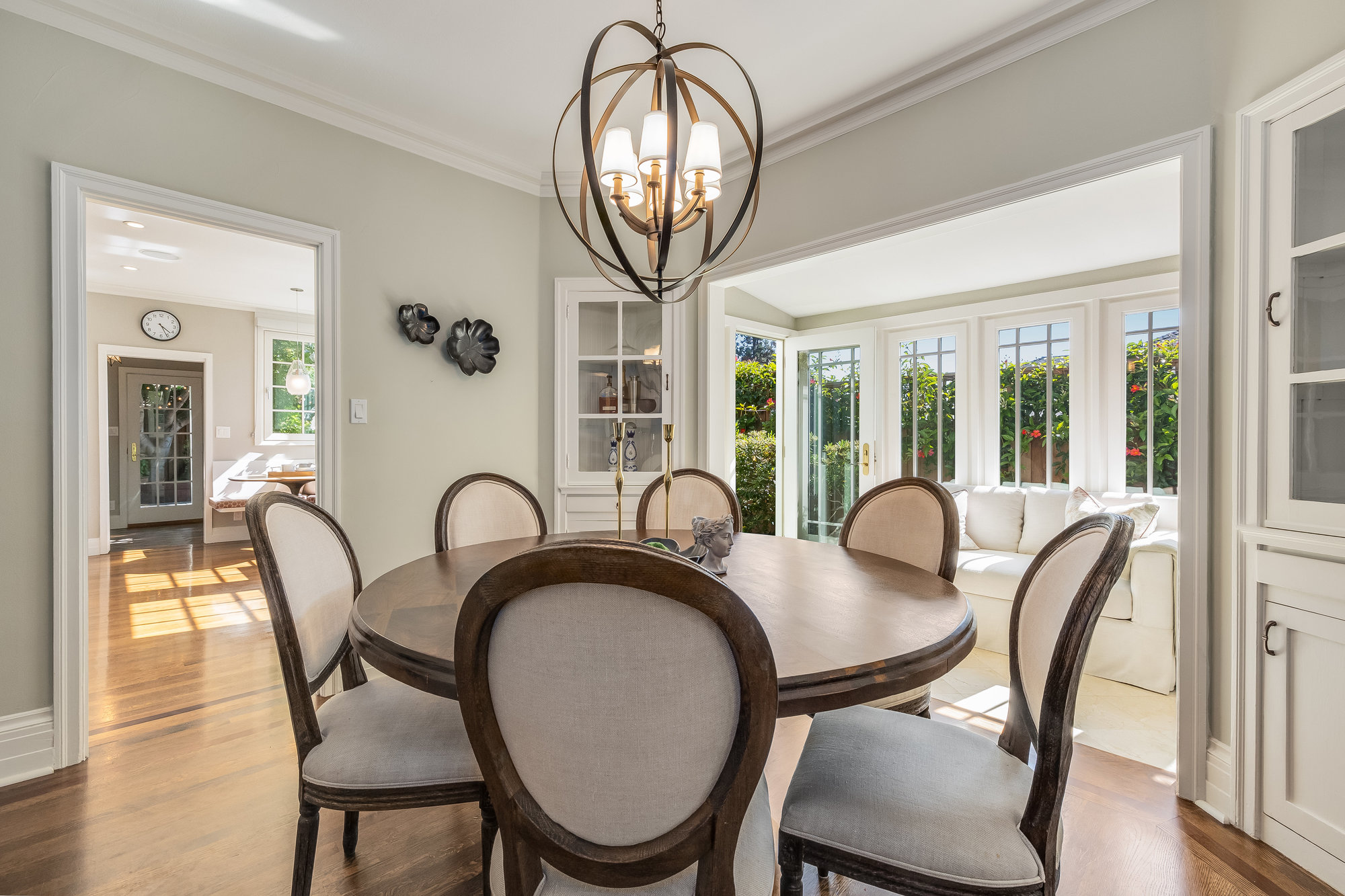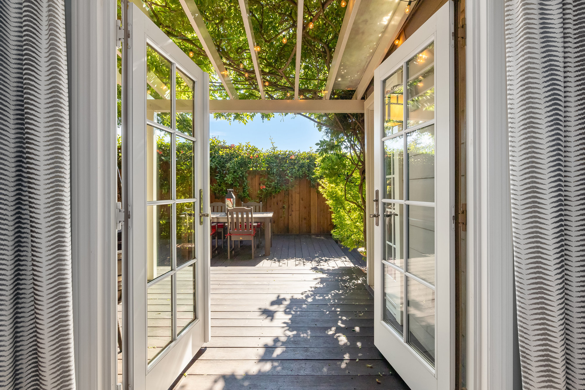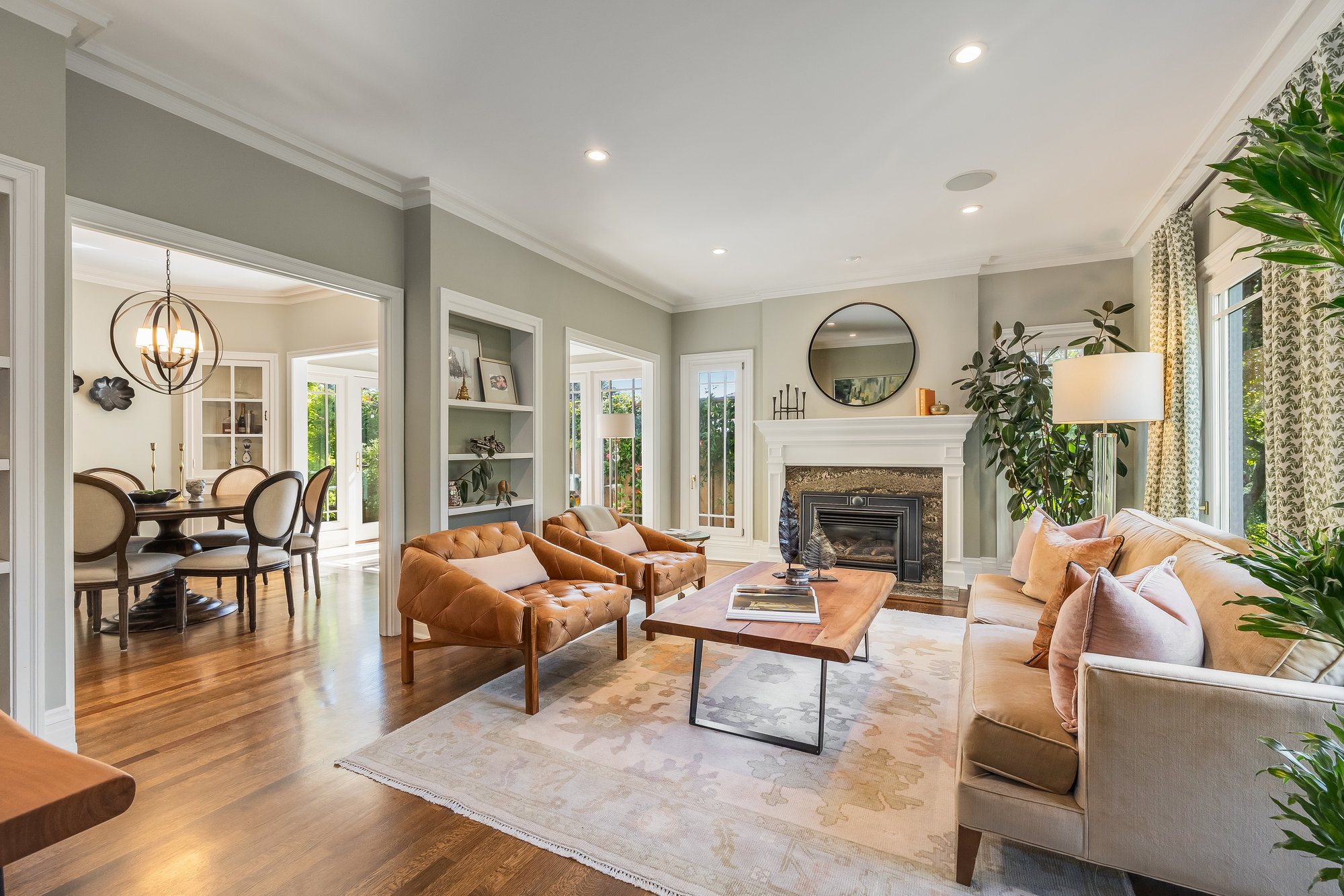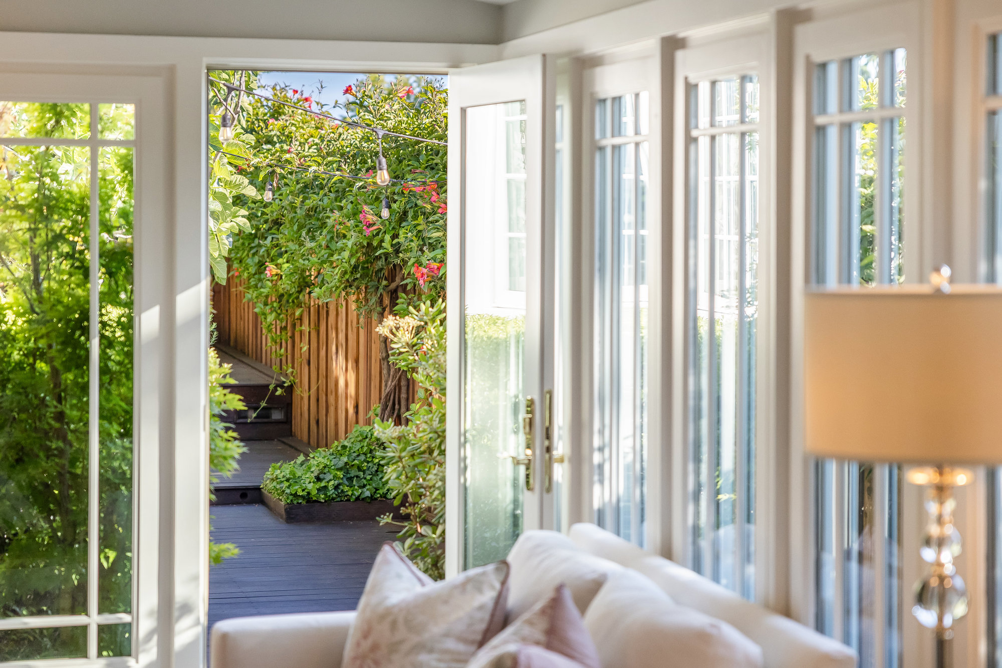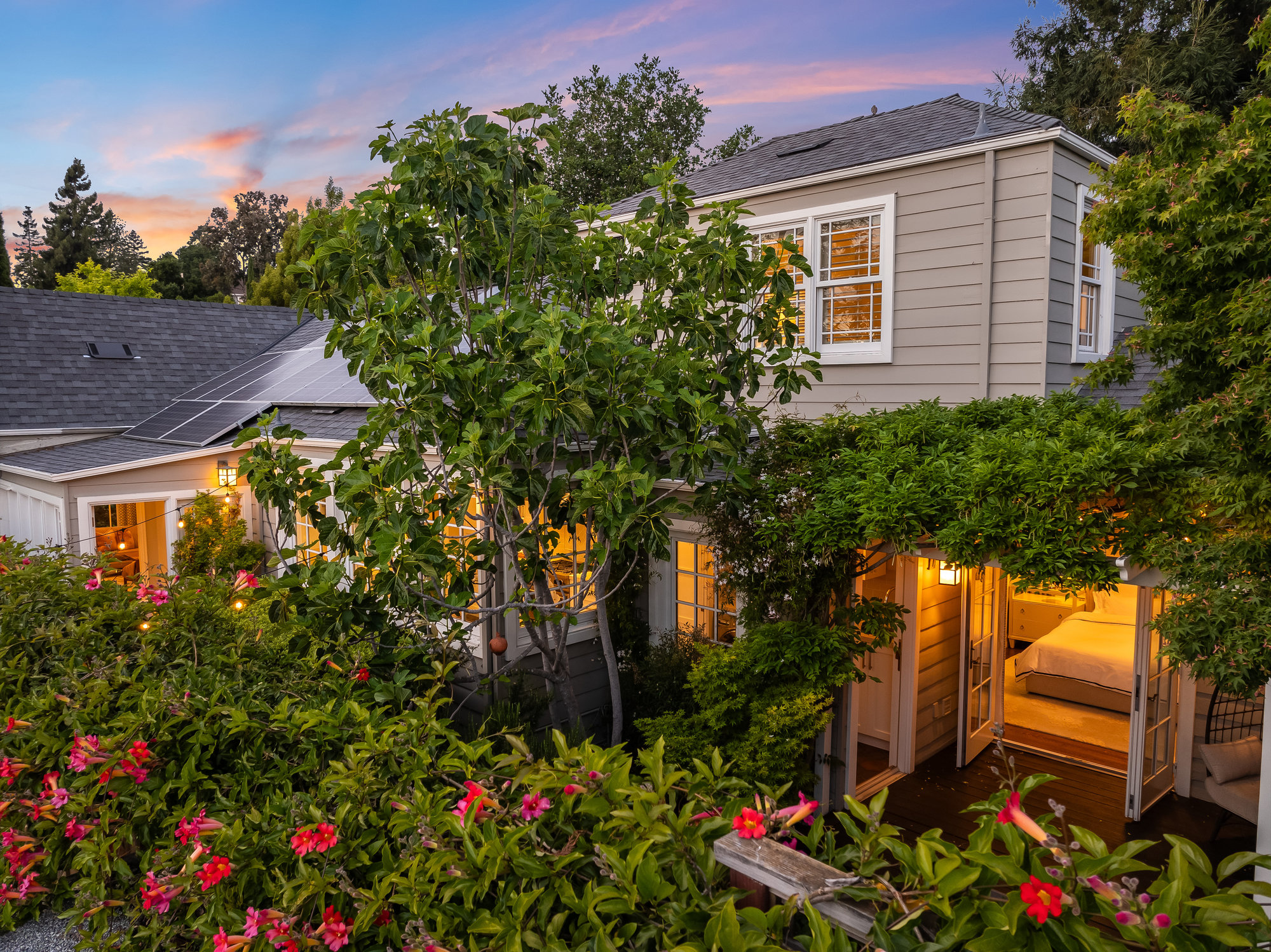 Turn-key home from top to bottom with luxury finishes, newly remodeled, eat-in kitchen with Cambria quartz counters, custom tile backsplash, Blue Star 6-burner gas oven and range, Zephyr range hood, Bosch dishwasher, Fisher and Paykel Fridge, stainless appliances, designer lighting, even a dedicated outlet for espresso machine. Primary suite with doors leading onto a private deck, fully renovated bathroom with frameless glass shower radiant heat floors, and luxe finishes. Sun soaked formal living and dining rooms offering tranquil privacy leading to a connected sun room offering doors onto the private gardens with hot tub wrapped by custom deck.