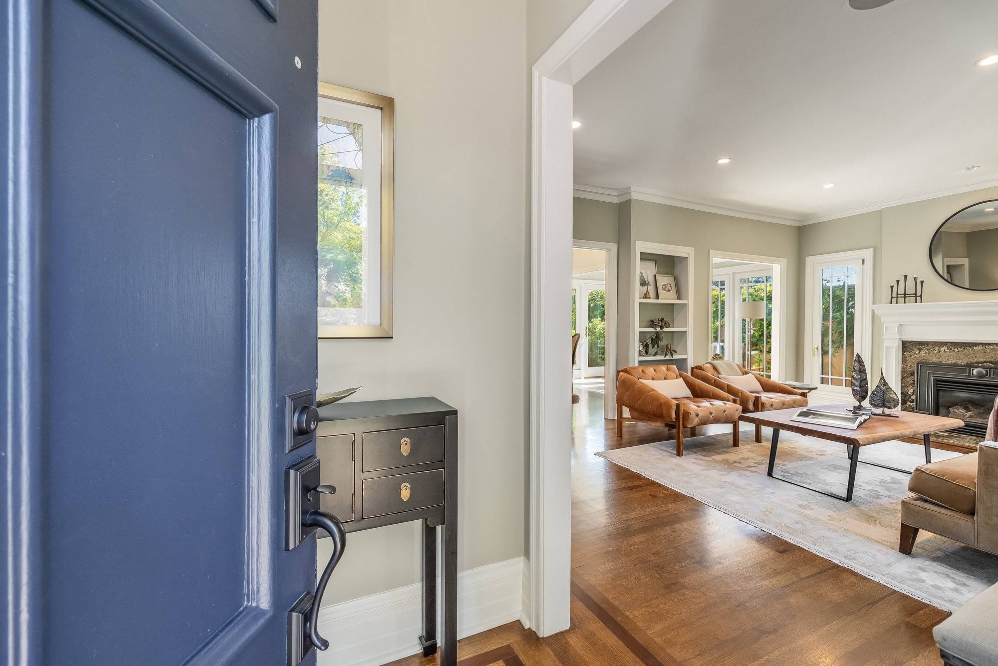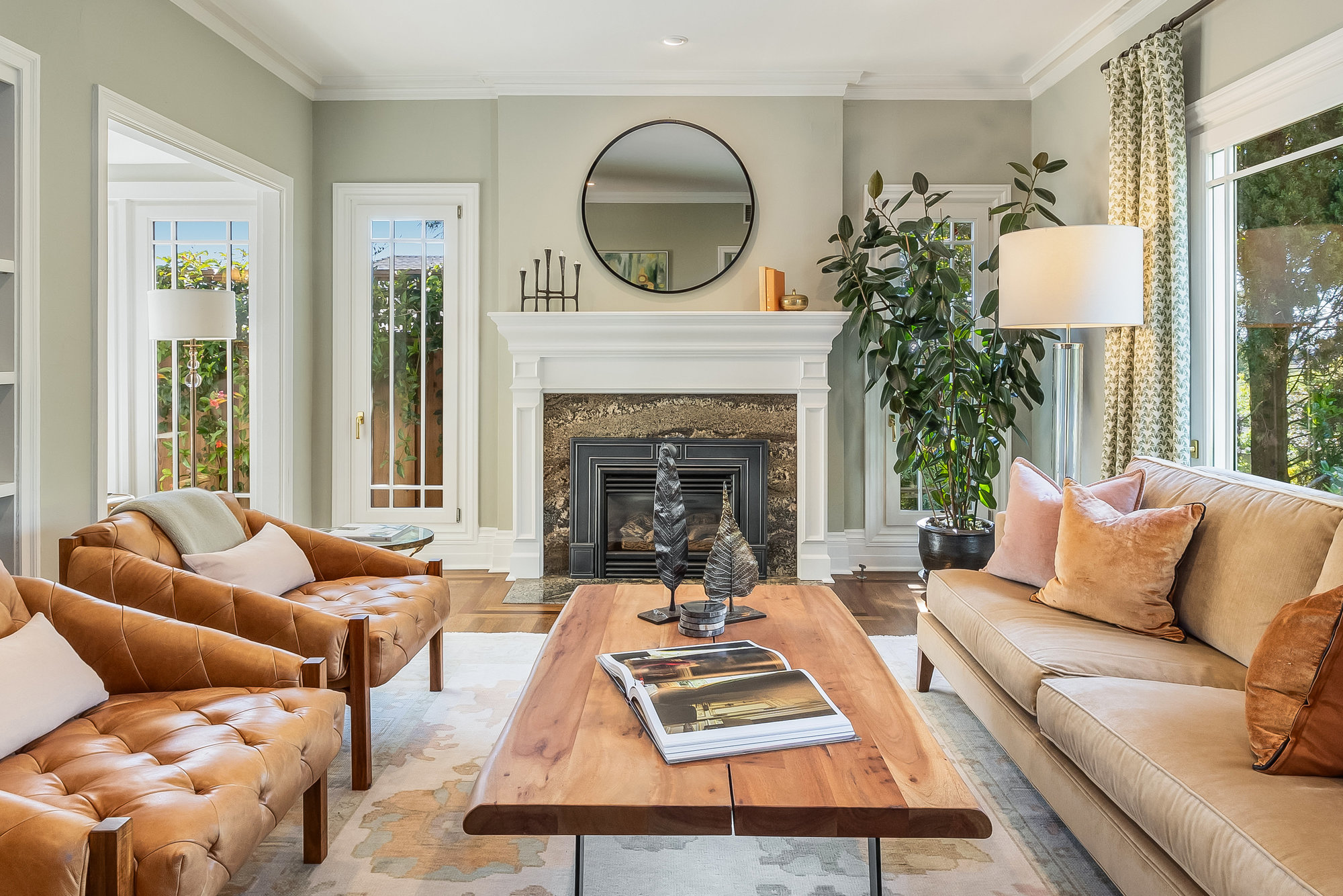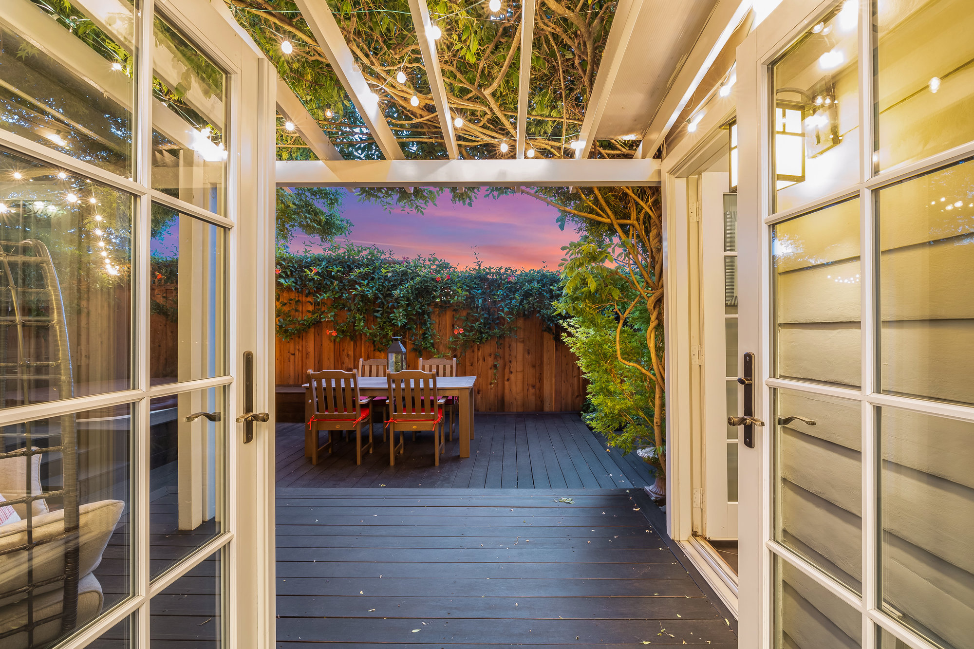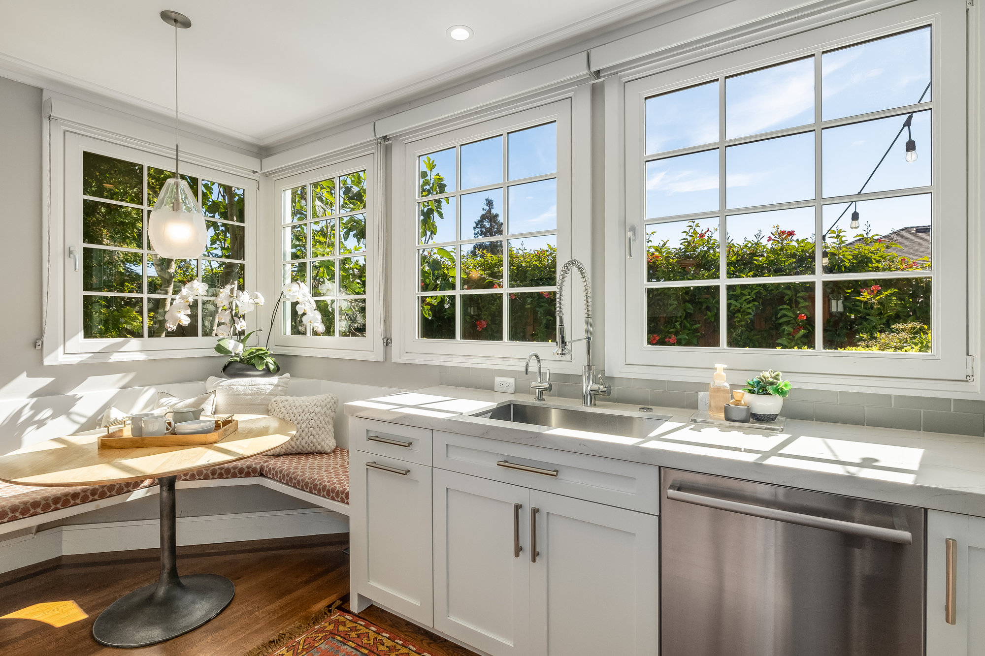 Turn-key home from top to bottom with luxury finishes, newly remodeled, eat-in kitchen with Cambria quartz counters, custom tile backsplash, Blue Star 6-burner gas oven and range, Zephyr range hood, Bosch dishwasher, Fisher and Paykel Fridge, stainless appliances, designer lighting, even a dedicated outlet for espresso machine. Primary suite with doors leading onto a private deck, fully renovated bathroom with frameless glass shower radiant heat floors, and luxe finishes. Sun soaked formal living and dining rooms offering tranquil privacy leading to a connected sun room offering doors onto the private gardens with hot tub wrapped by custom deck.