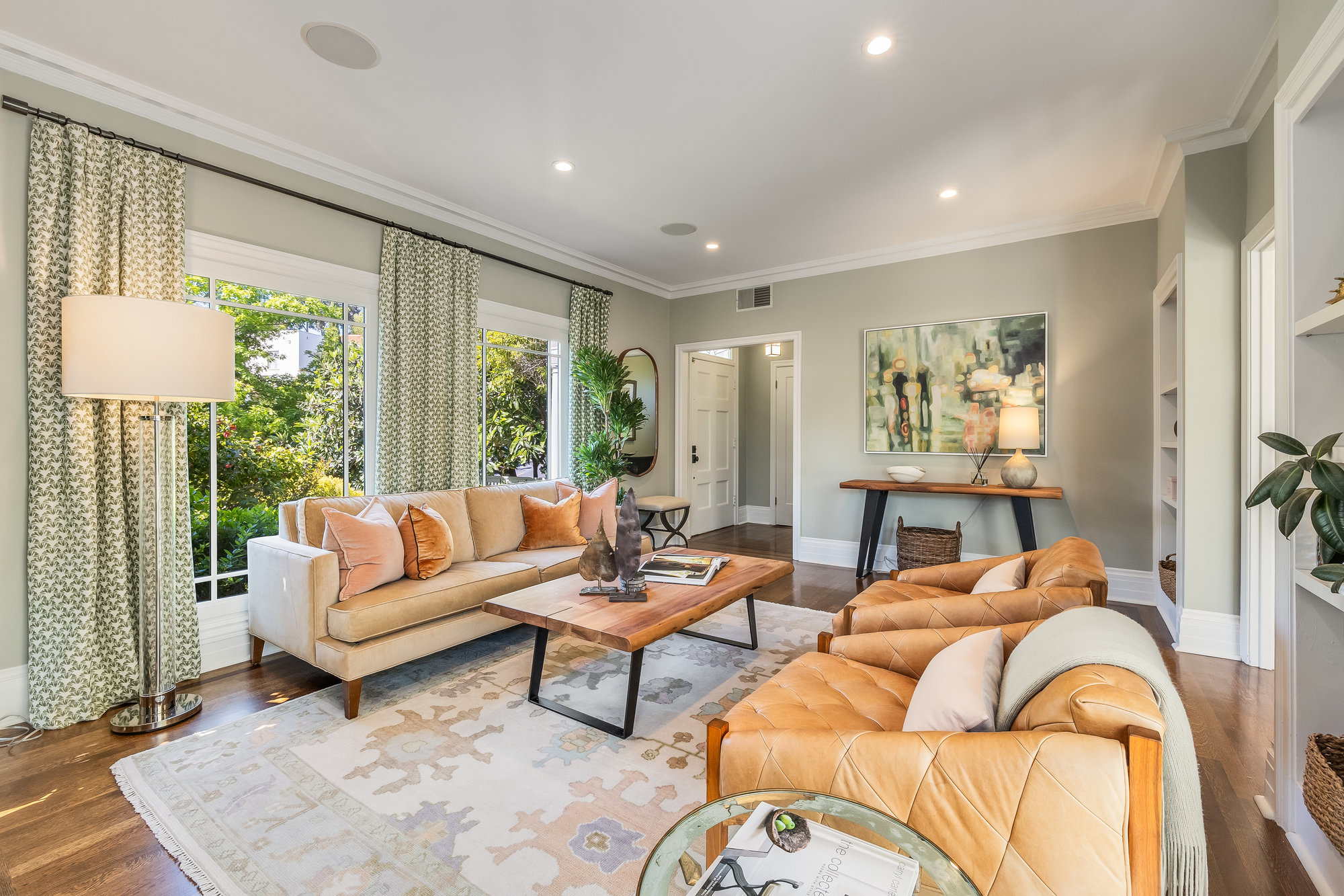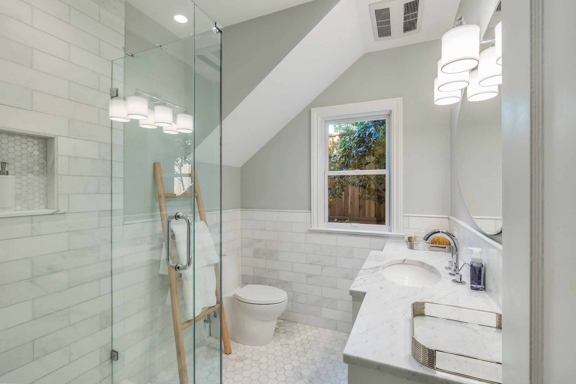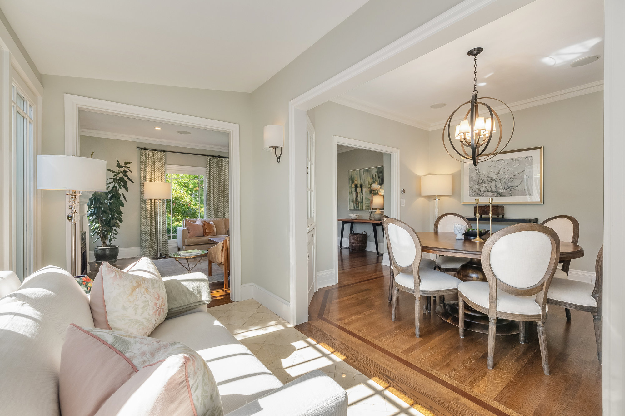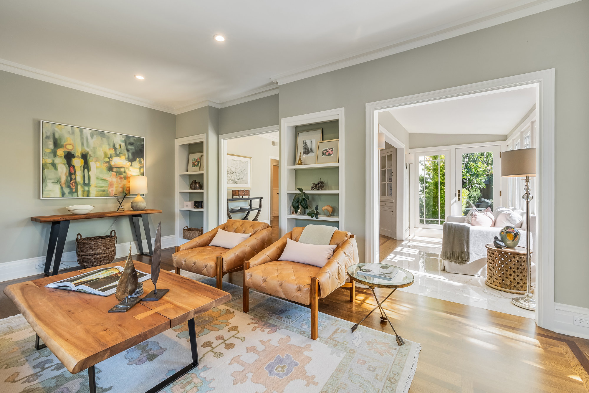 Turn-key home from top to bottom with luxury finishes, newly remodeled, eat-in kitchen with Cambria quartz counters, custom tile backsplash, Blue Star 6-burner gas oven and range, Zephyr range hood, Bosch dishwasher, Fisher and Paykel Fridge, stainless appliances, designer lighting, even a dedicated outlet for espresso machine. Primary suite with doors leading onto a private deck, fully renovated bathroom with frameless glass shower radiant heat floors, and luxe finishes. Sun soaked formal living and dining rooms offering tranquil privacy leading to a connected sun room offering doors onto the private gardens with hot tub wrapped by custom deck.