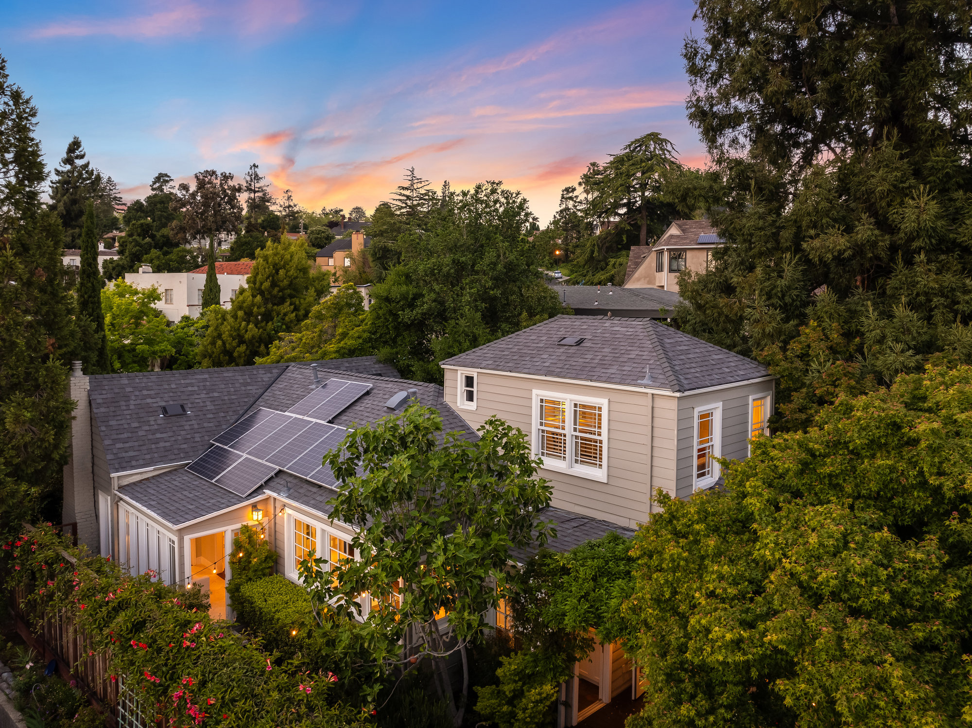 Dedicated upper level den area ideal as office, guest space or lounge offering serene views, surrounded by magical, mature gardens, decks and paths, this home is truly a dream. The detached one car garage is both ideal for your car and offers space for storage. Further updates include, new roof, permitted kitchen and bathroom remodels, solar panels (owned), plumbing and electrical updates, fencing & more. Minutes from the award winning elementary with close access to the great shops and restaurants of Grand Lake and the Bay Bridge to San Francisco.