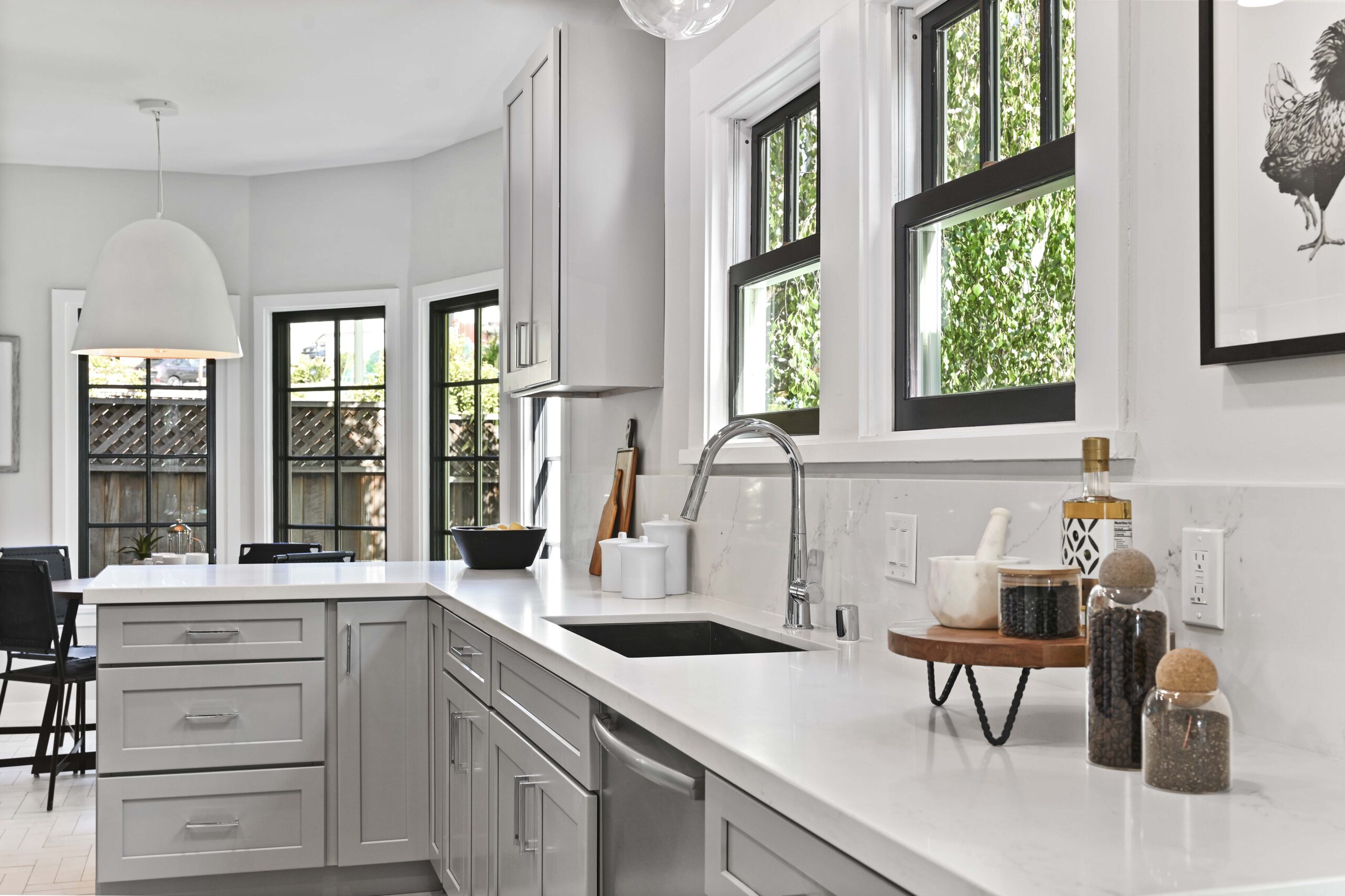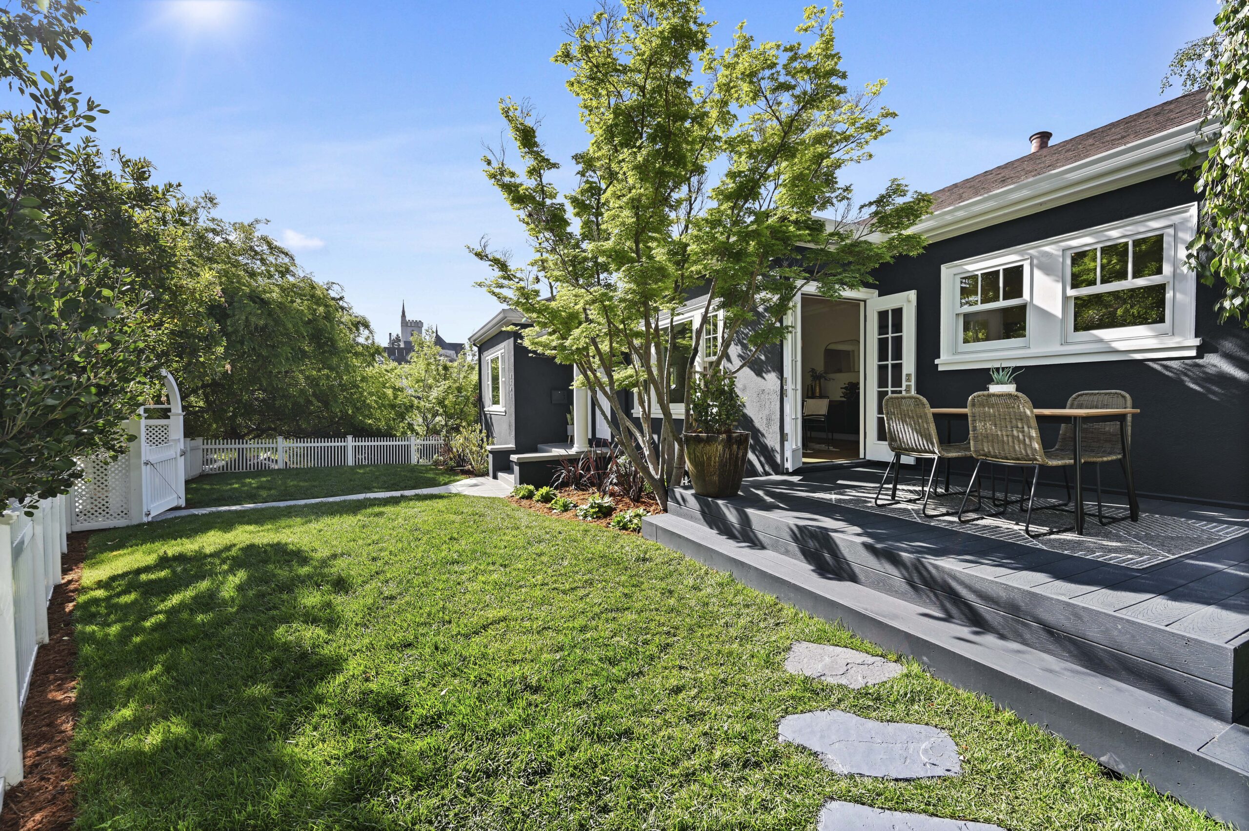 SOLD: Stunning one-level Crocker Highlands Traditional with spacious living and dining rooms, designer lighting, period details and glistening Oak hardwood floors. The renovated eat-in kitchen promises to delight the chef of the house and offers light filled windows overlooking lush private gardens.