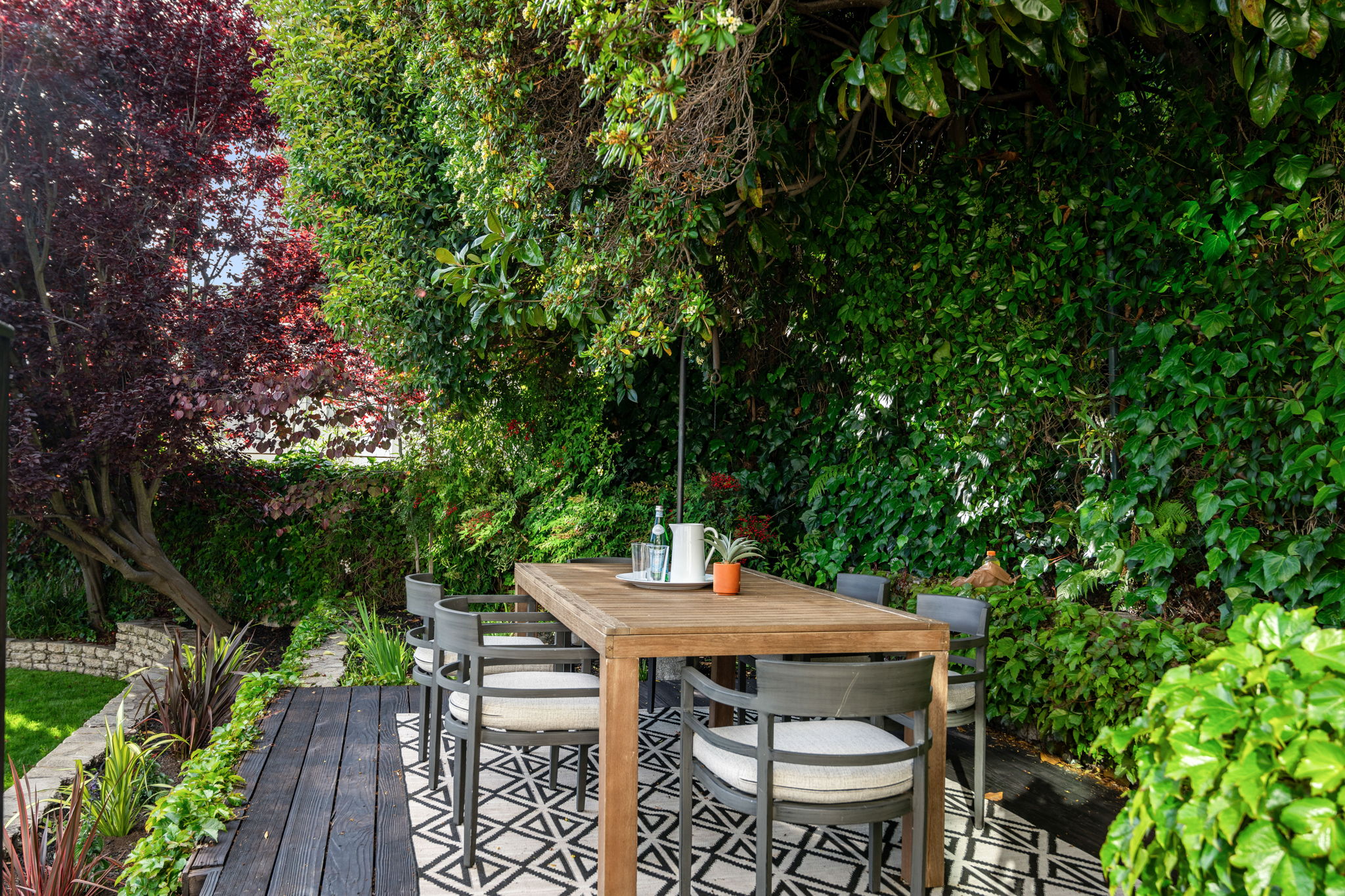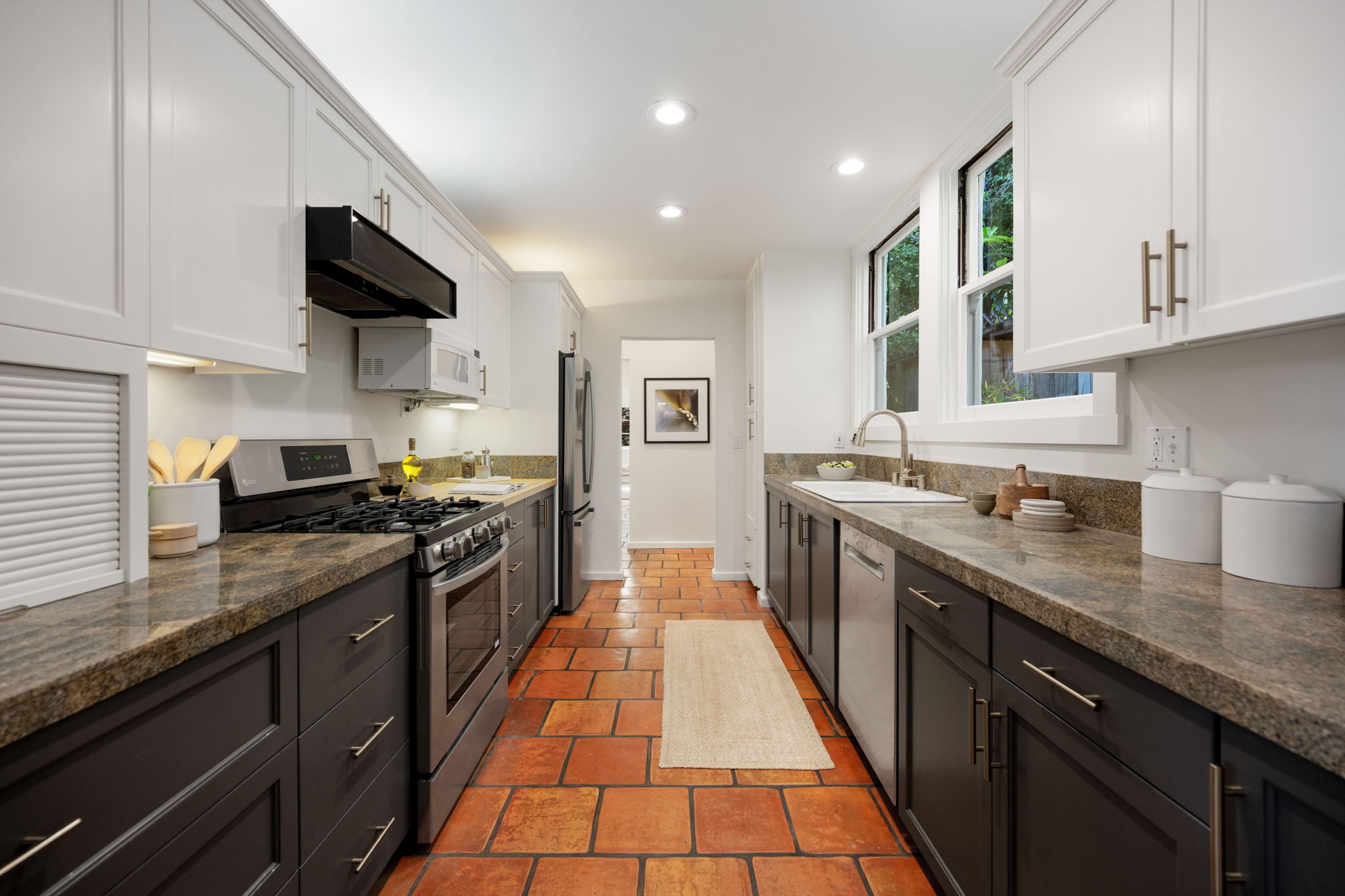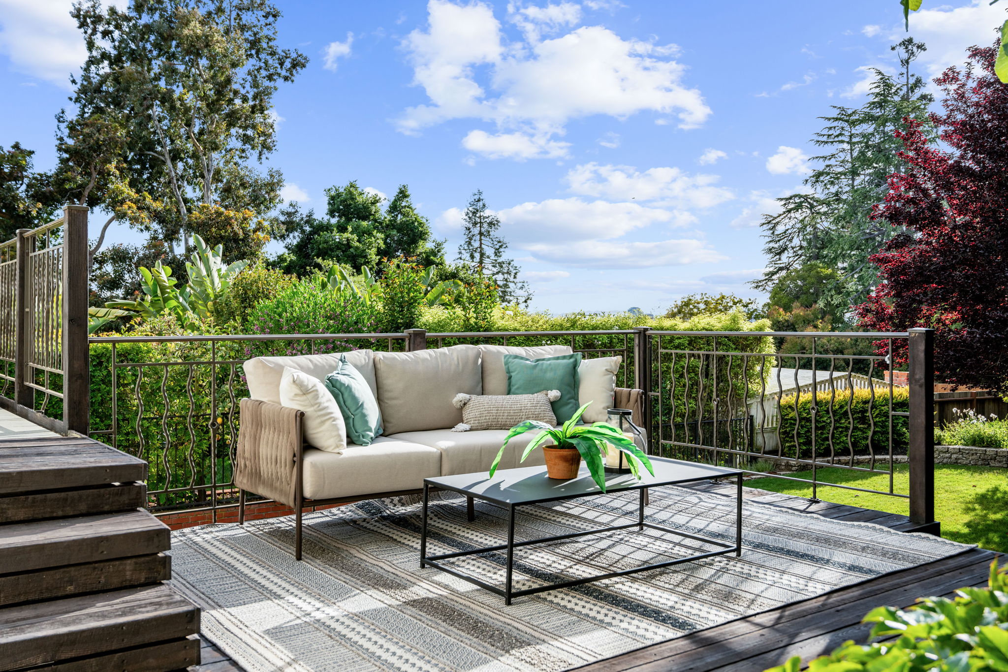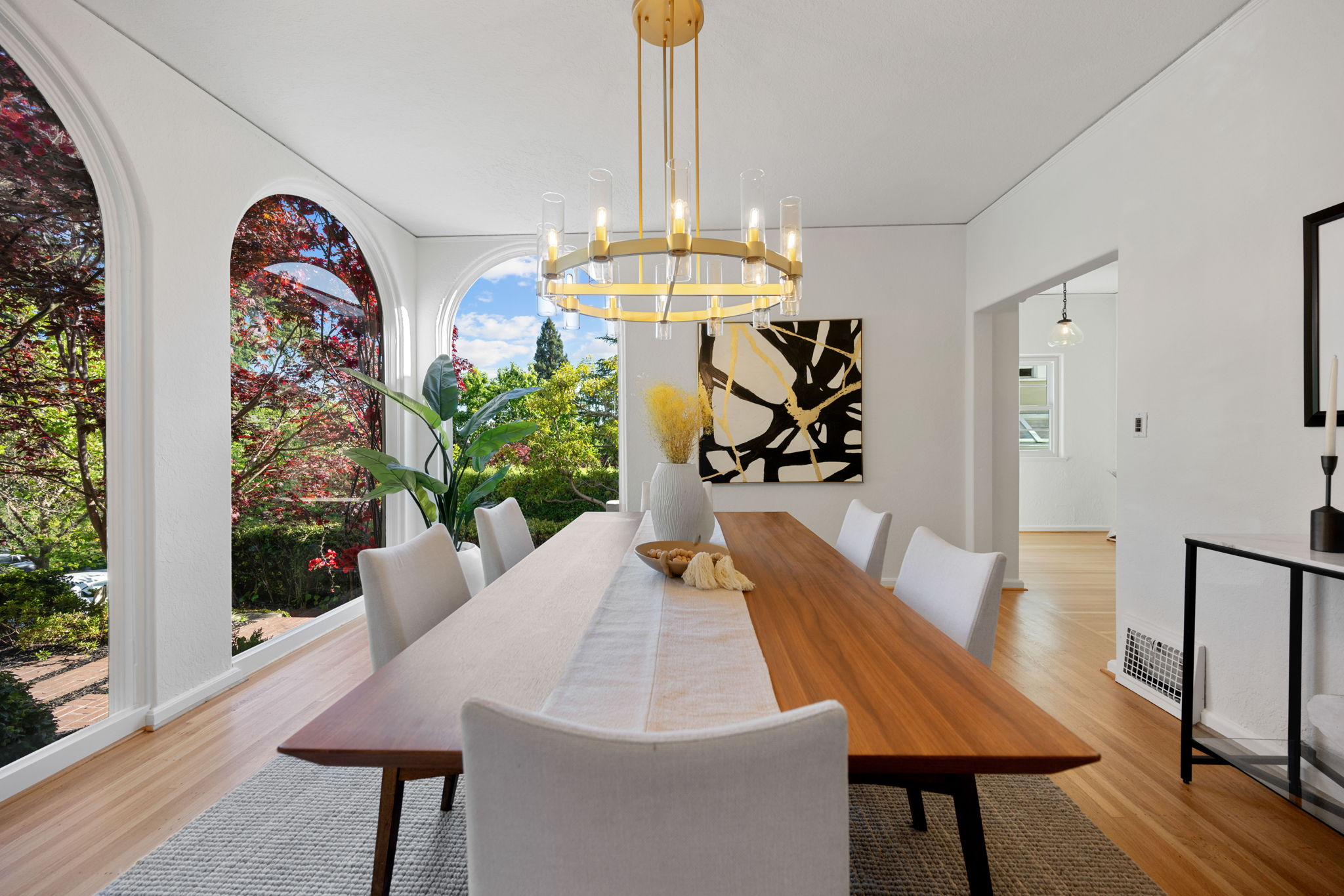 Welcome to 1144 Mandana Blvd. Captivating Crocker Highlands Traditional with level-out park-like private gardens. Upon entering one is greeted by a stunning curved staircase and cathedral ceiling foyer. Light-filled dining room ideal for formal gatherings with three floor-to-ceiling arched windows frame the exterior gardens and maple trees. Cheerful eat-in kitchen blanketed with terracotta pavers, two-tone cabinets, gas range, and dining area. Magnificent living room with french doors onto large private terrace that overlooks rear gardens featuring expansive level yard, terraced dining area and lush verdant flora offering tranquil privacy. An additional sun-soaked den off the rear of the home is ideal as office, lounge or guest space with its own door onto the rear balcony. A full bathroom and laundry area complete the main level.