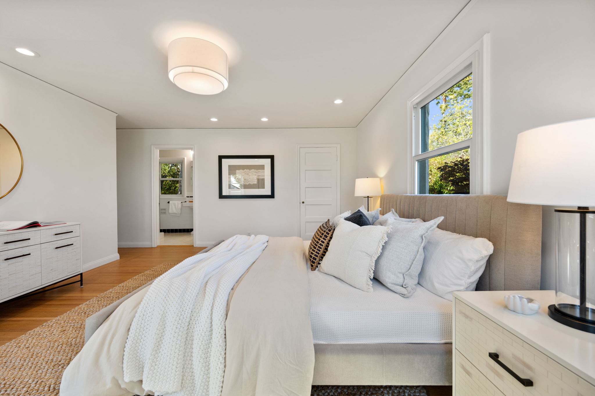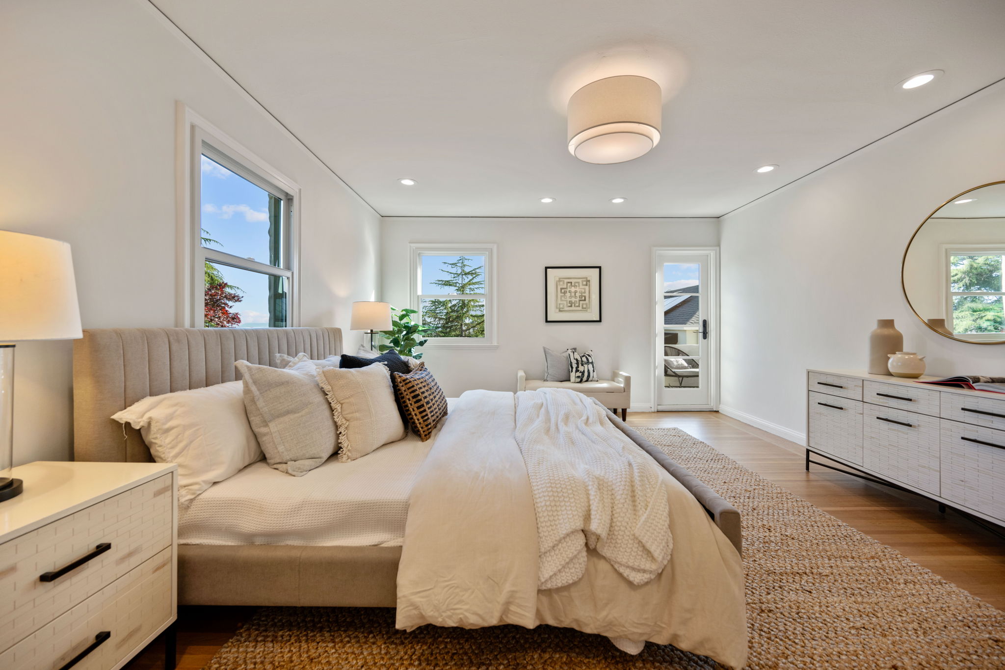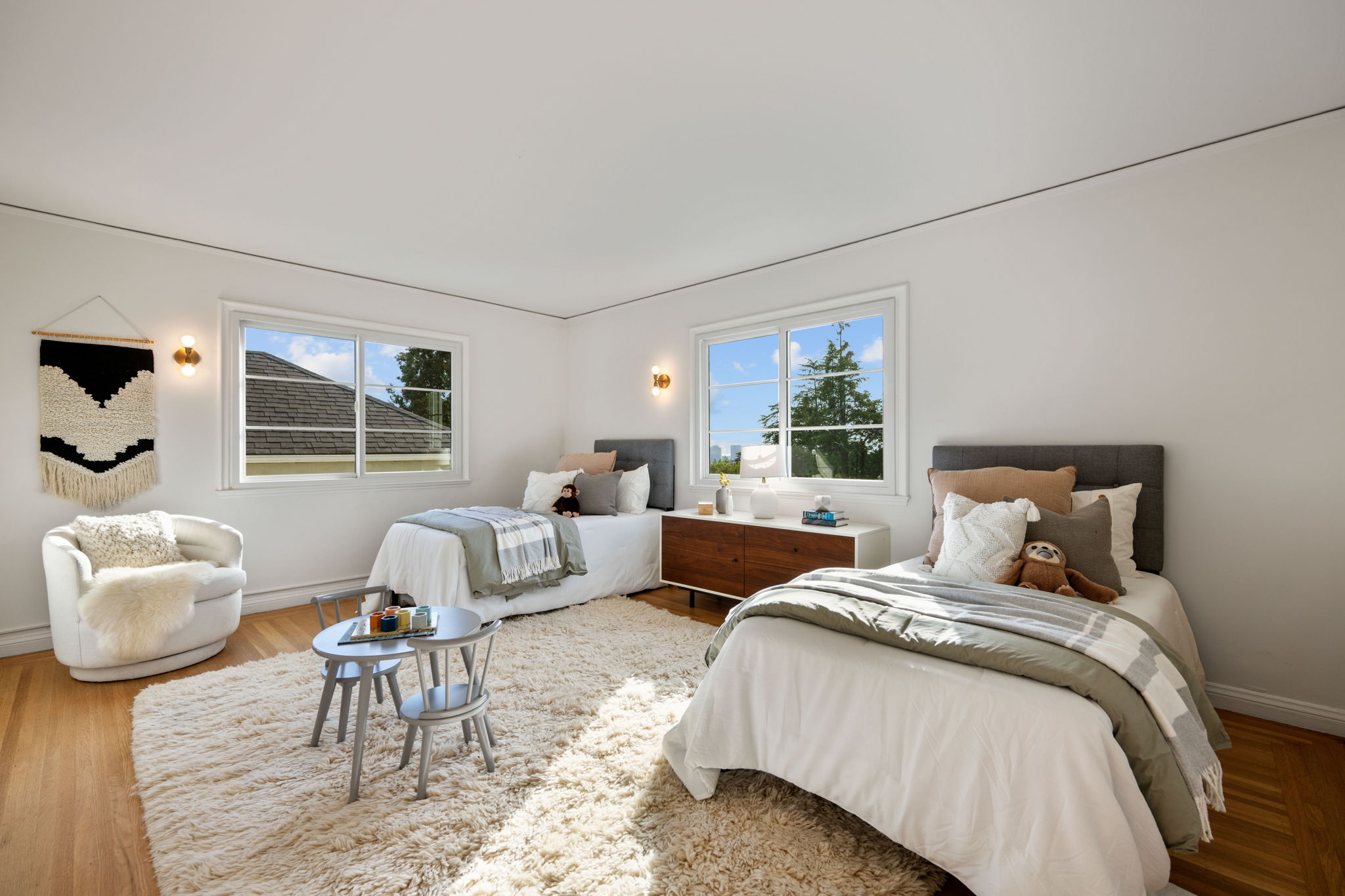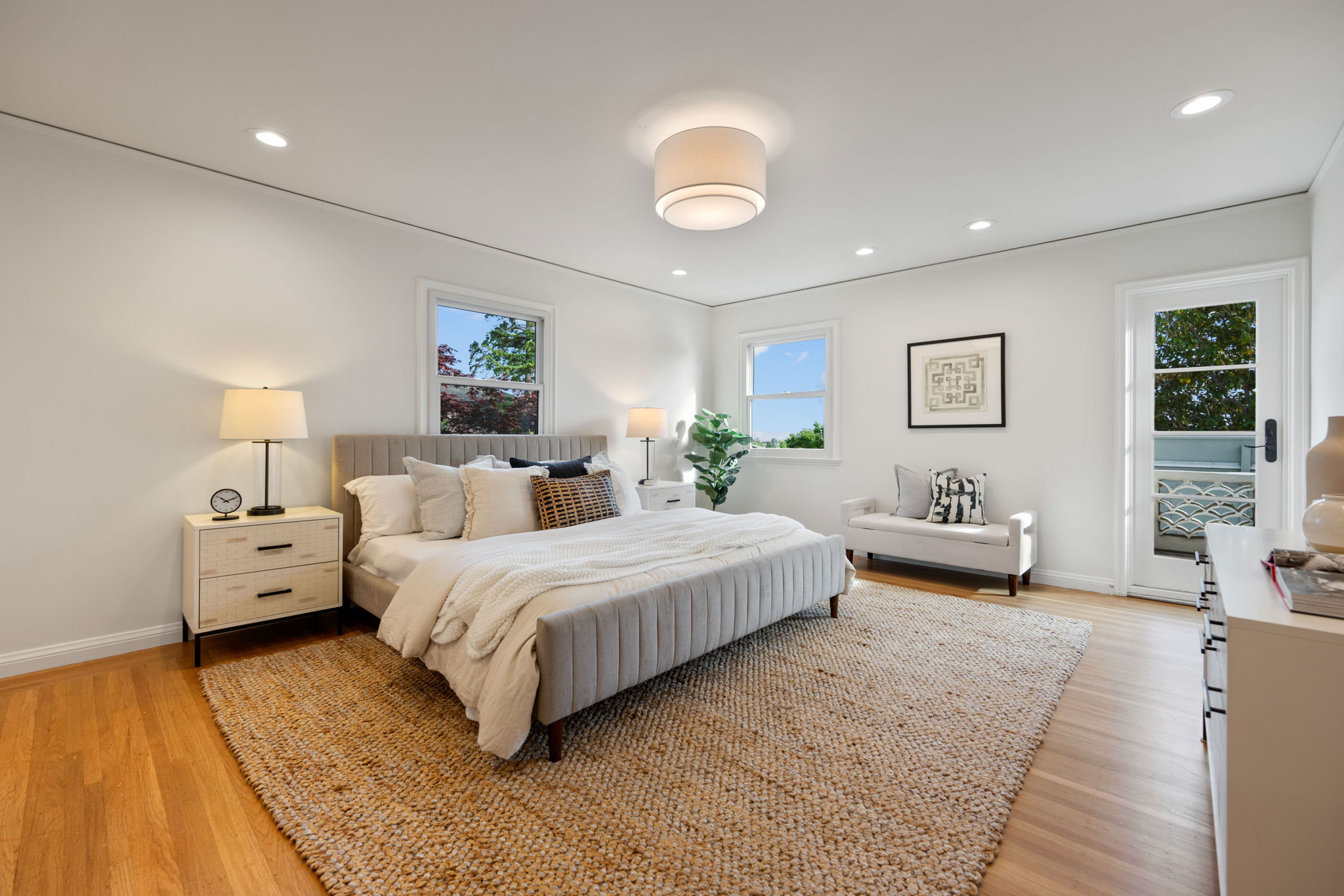 The spacious upper level offers a primary suite with glass shower and make-up vanity, three more well-proportioned bedrooms, and artisan tile hall bath. Three of the bedrooms including the primary suite offer balconies, one with rare neighborhood views of the Downtown Oakland skyline. The attached two-car garage has direct internal access and a side driveway allows parking from directly behind the home along with ample additional storage. Just blocks from the award-winning Crocker Highlands Elementary, shops and restaurants of Lakeshore and Grand Avenue, Saturday Farmers Market, and Bay Bridge to San Francisco.