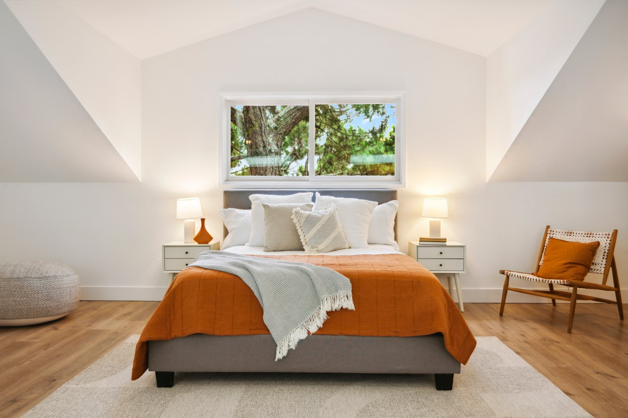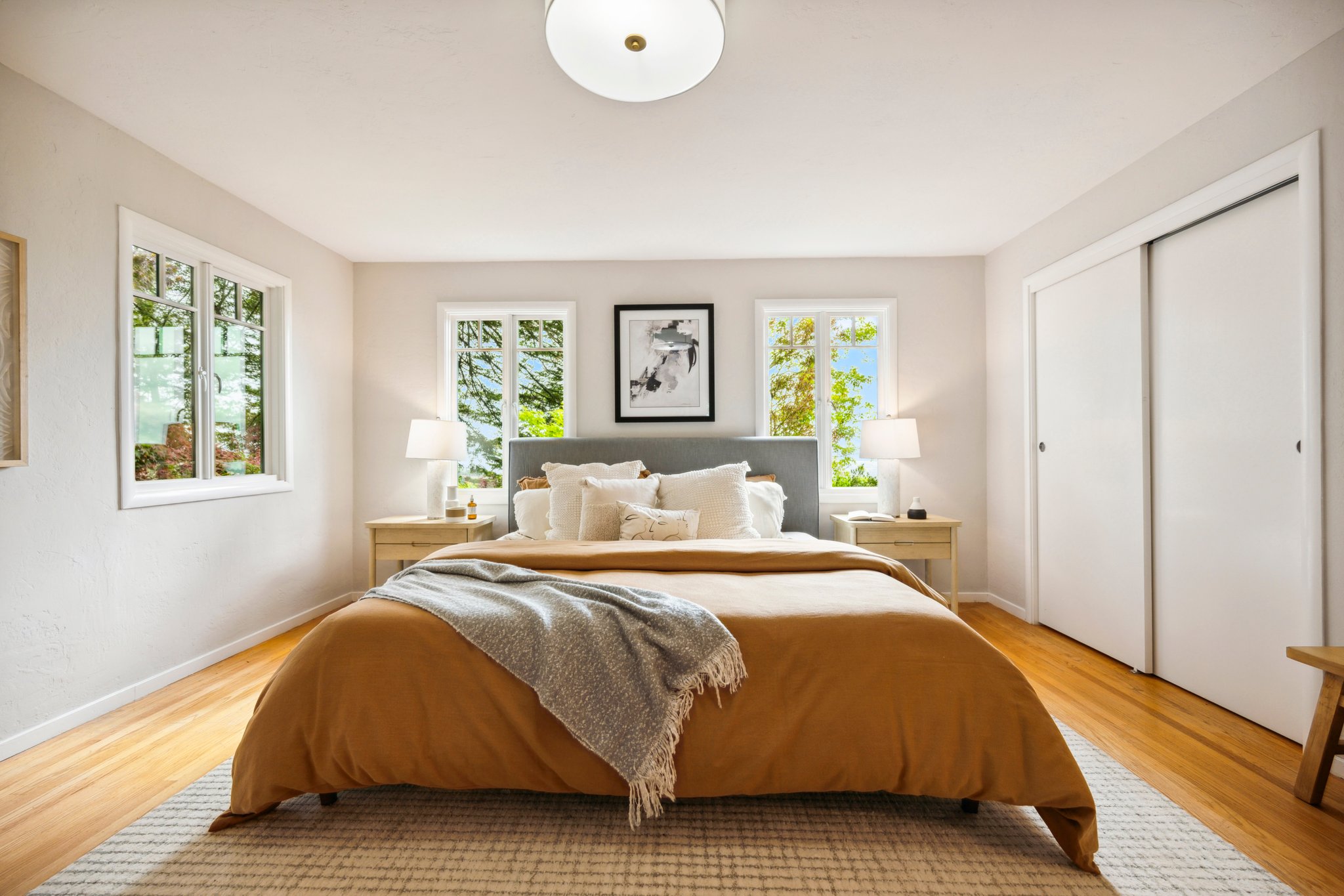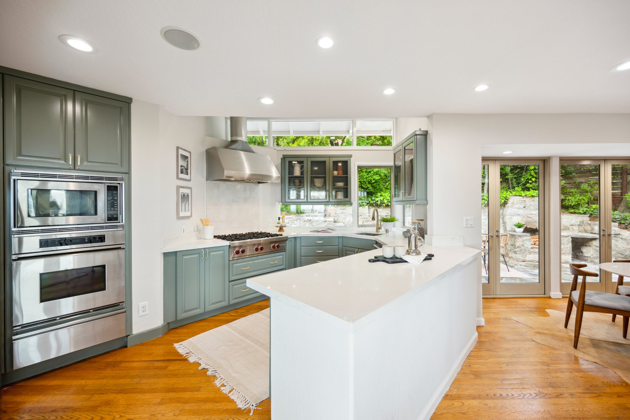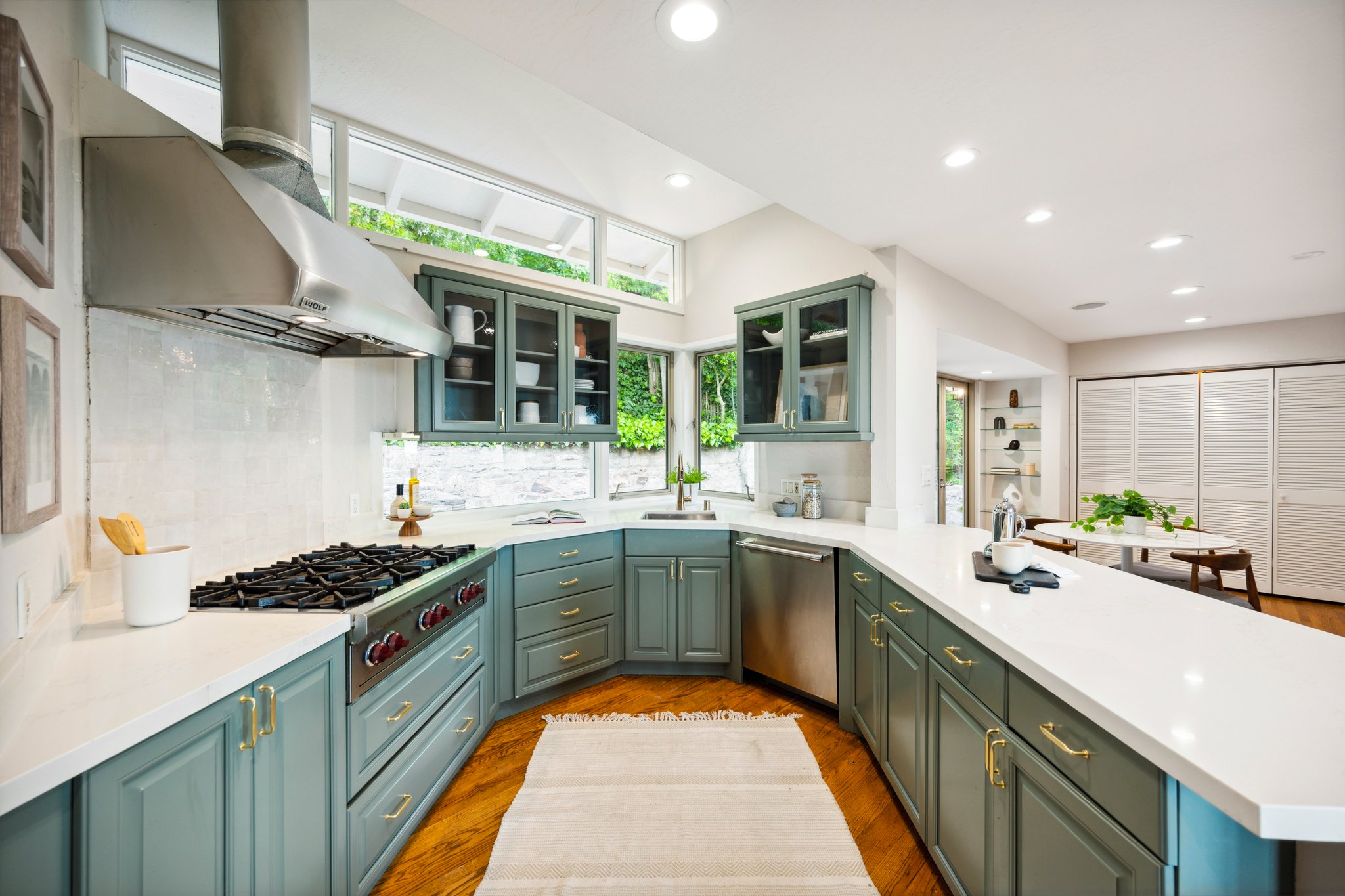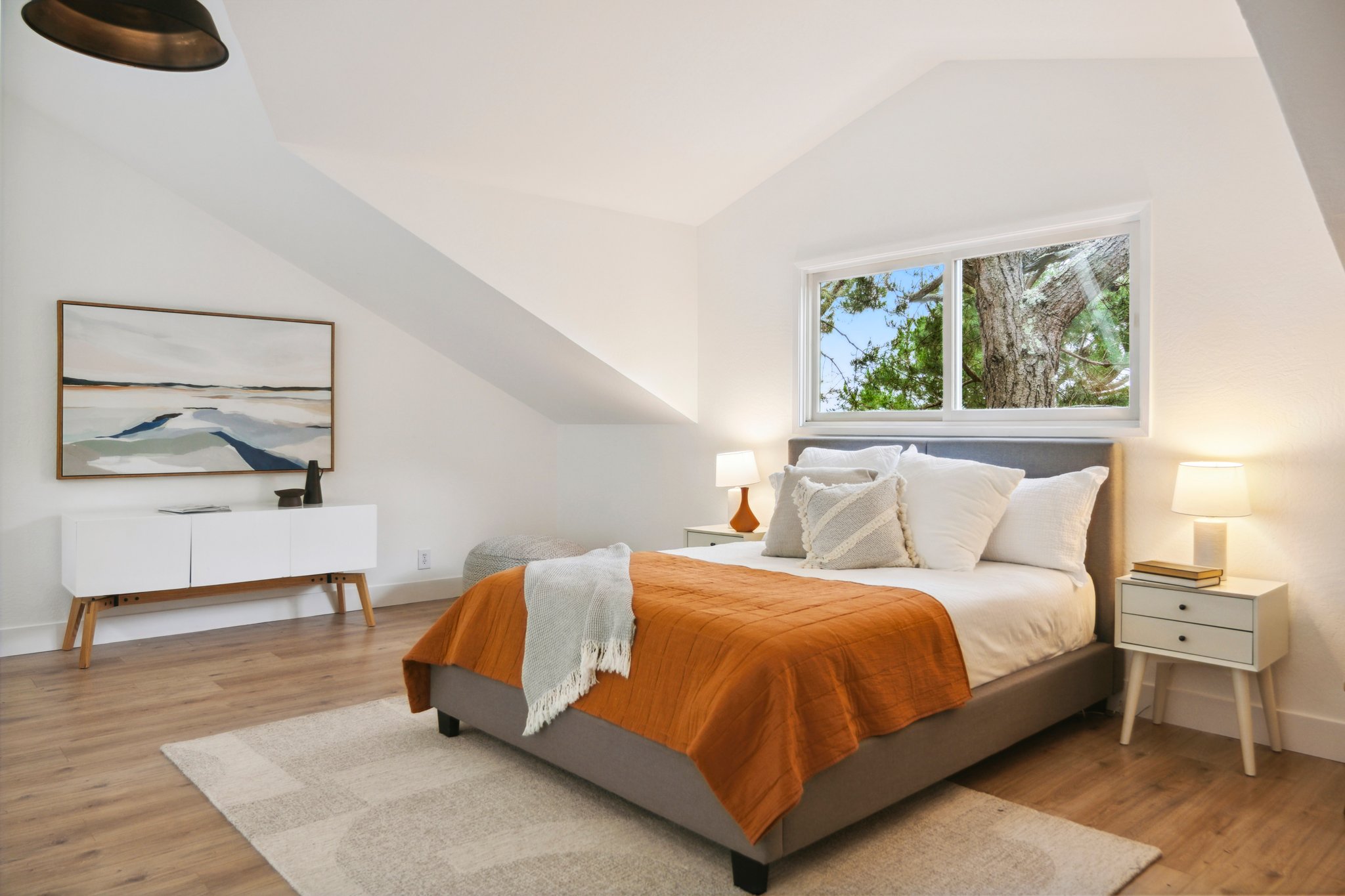 Vintage charm meets modern elegance in this brown shingle cottage offering stunning views of San Francisco and the Bay. One-level living with open floor plan and inviting living room featuring quintessential wood-paneled walls, San Francisco views and cozy fireplace. Renovated chef’s kitchen with quartz counters, designer backsplash and Wolf range that overlooks charming private patios. Adjacent dining room with picture window offers dramatic sunsets over the Bay, promising to inspire evenings of lively conversation.