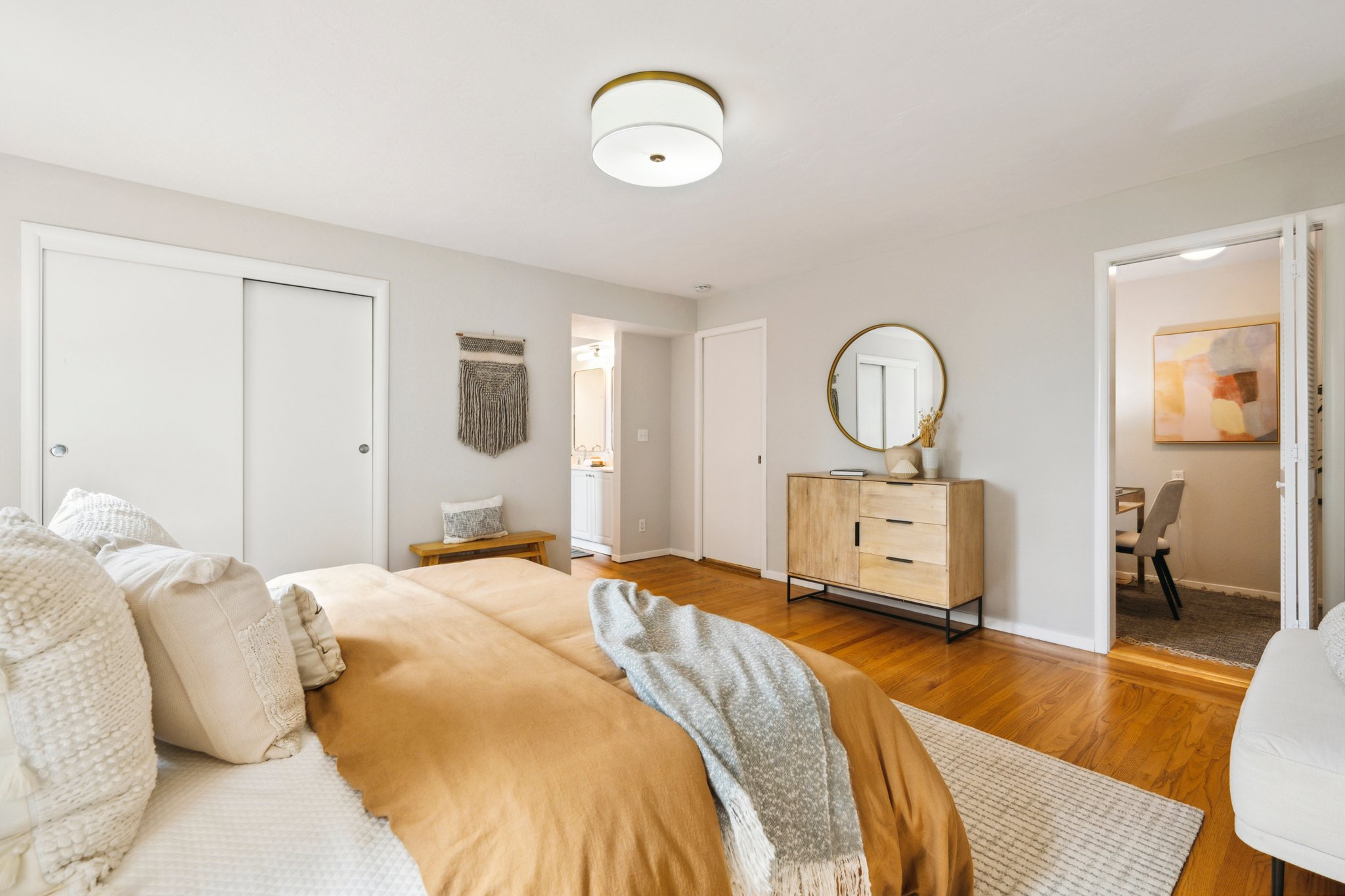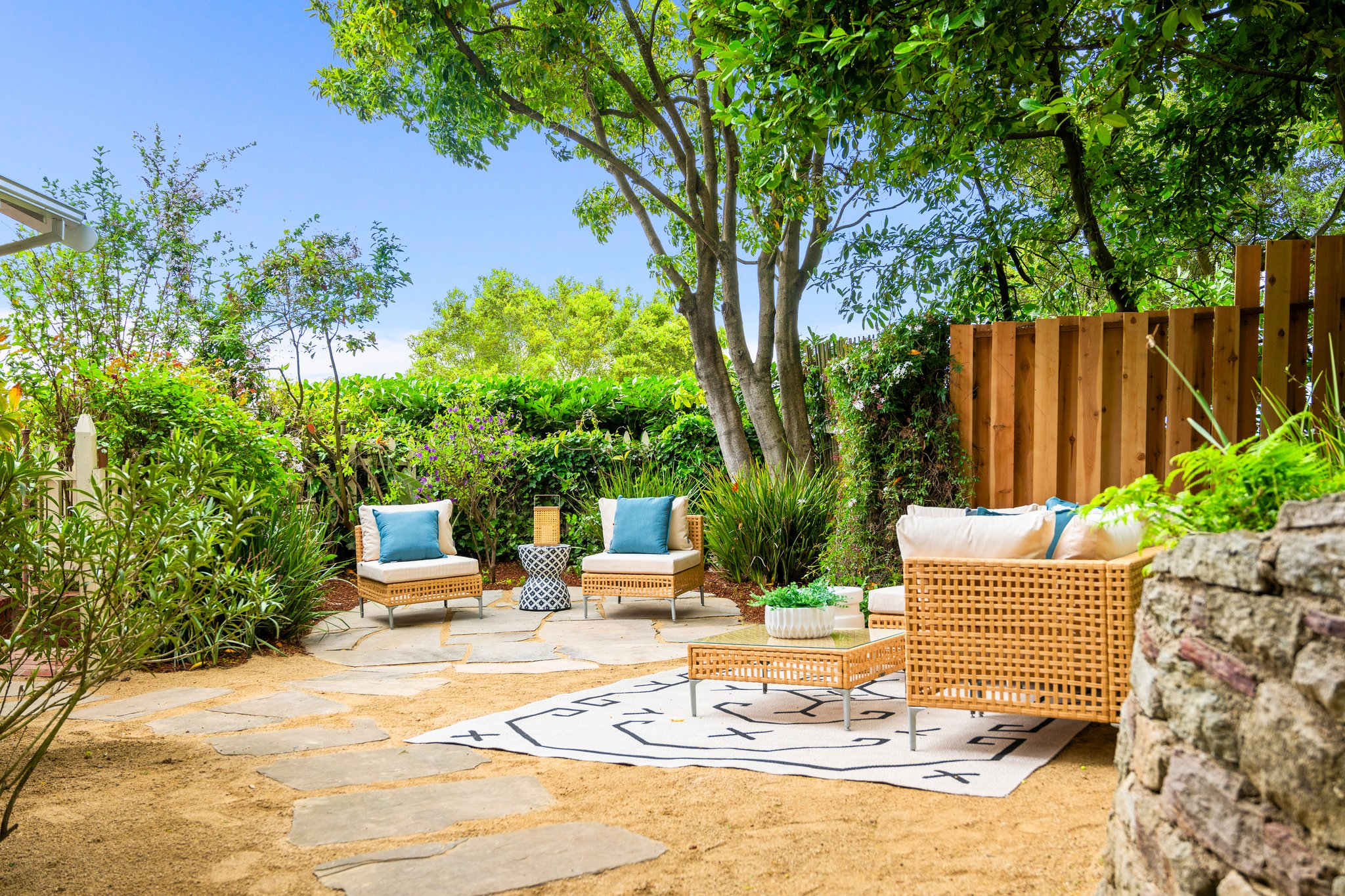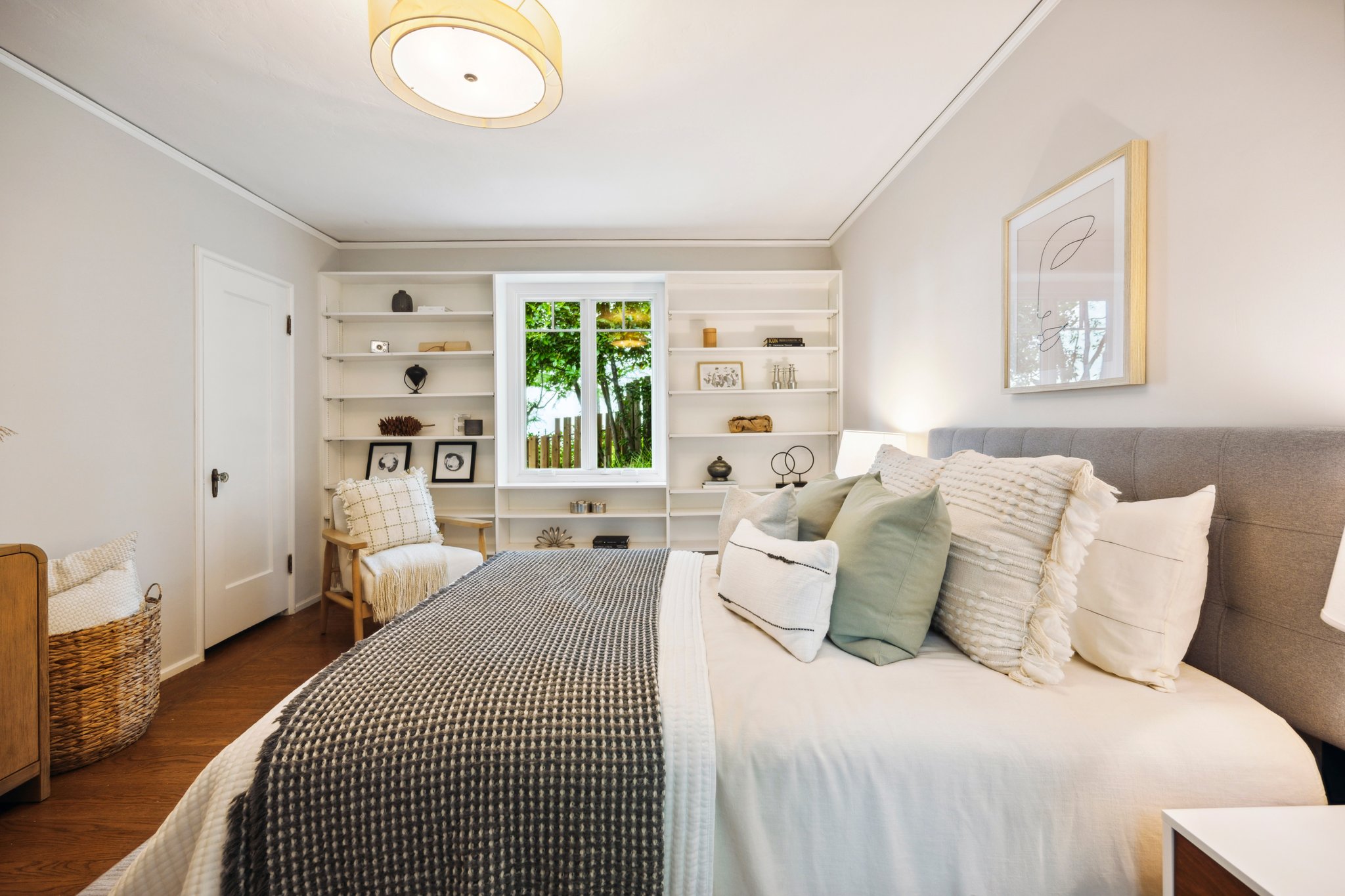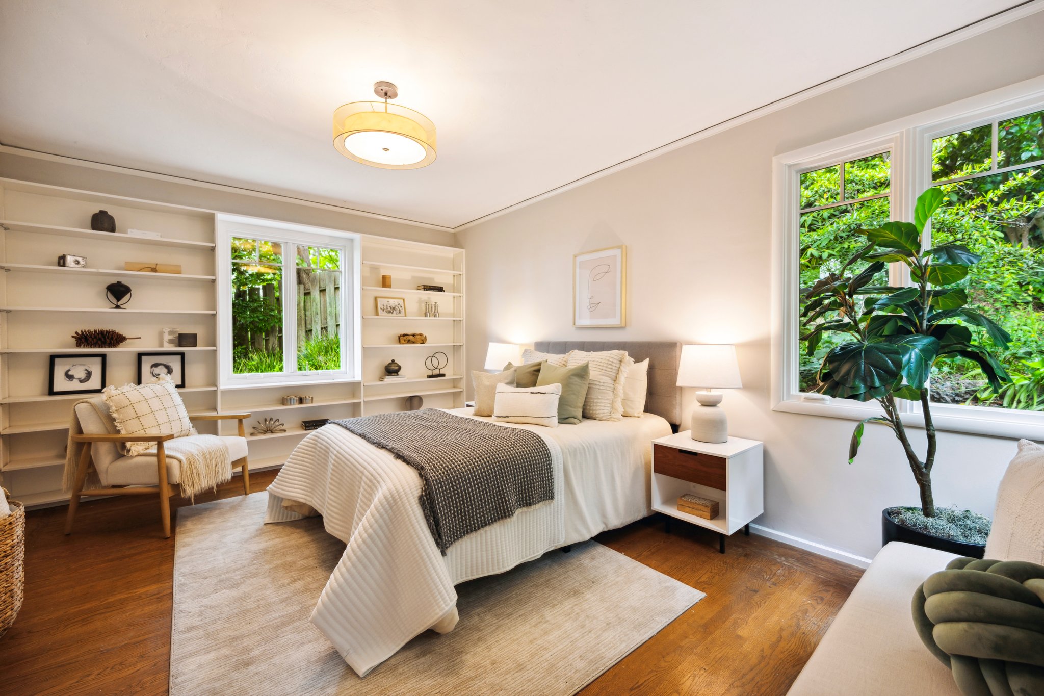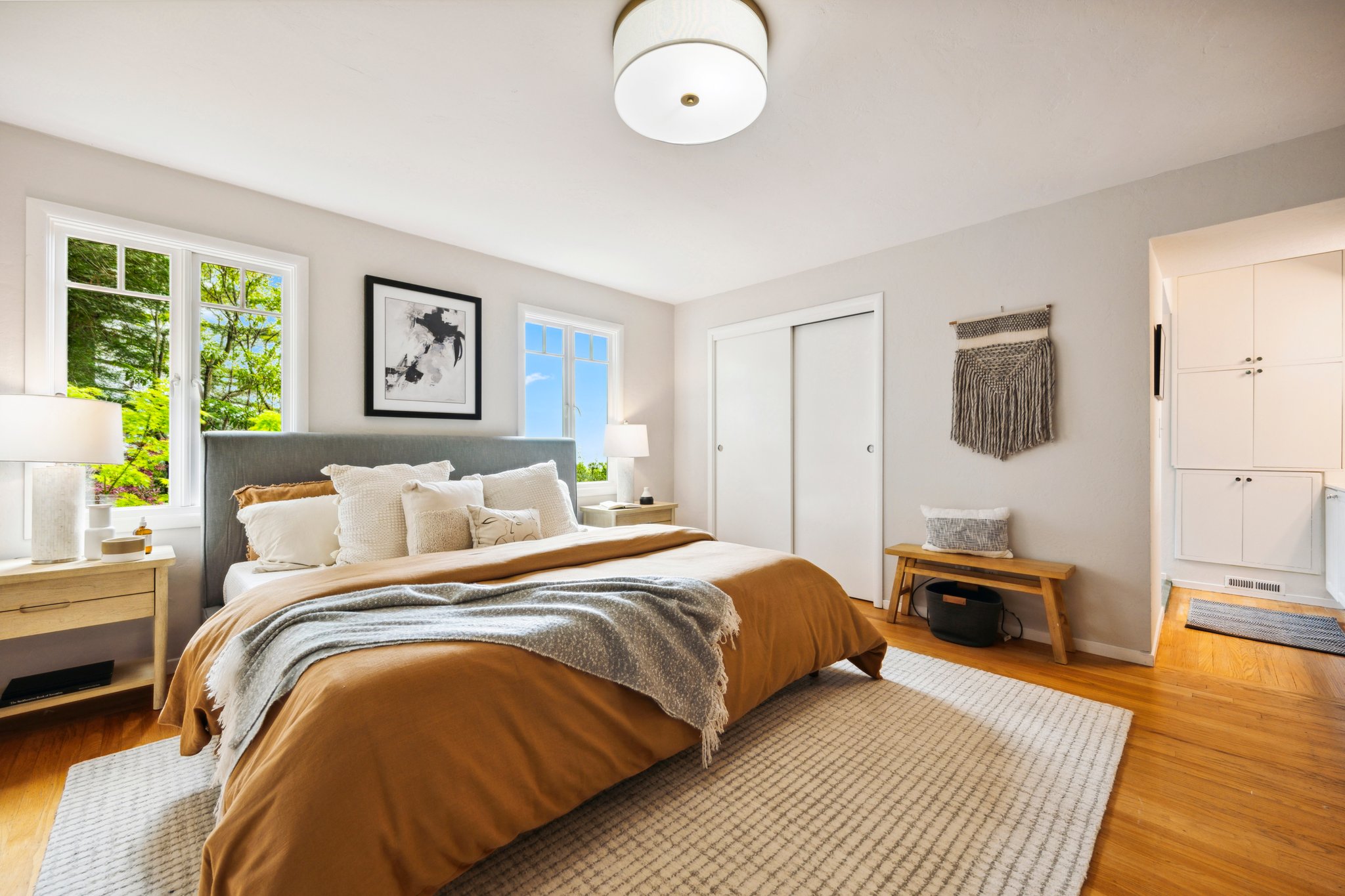 Vintage charm meets modern elegance in this brown shingle cottage offering stunning views of San Francisco and the Bay. One-level living with open floor plan and inviting living room featuring quintessential wood-paneled walls, San Francisco views and cozy fireplace. Renovated chef’s kitchen with quartz counters, designer backsplash and Wolf range that overlooks charming private patios. Adjacent dining room with picture window offers dramatic sunsets over the Bay, promising to inspire evenings of lively conversation.