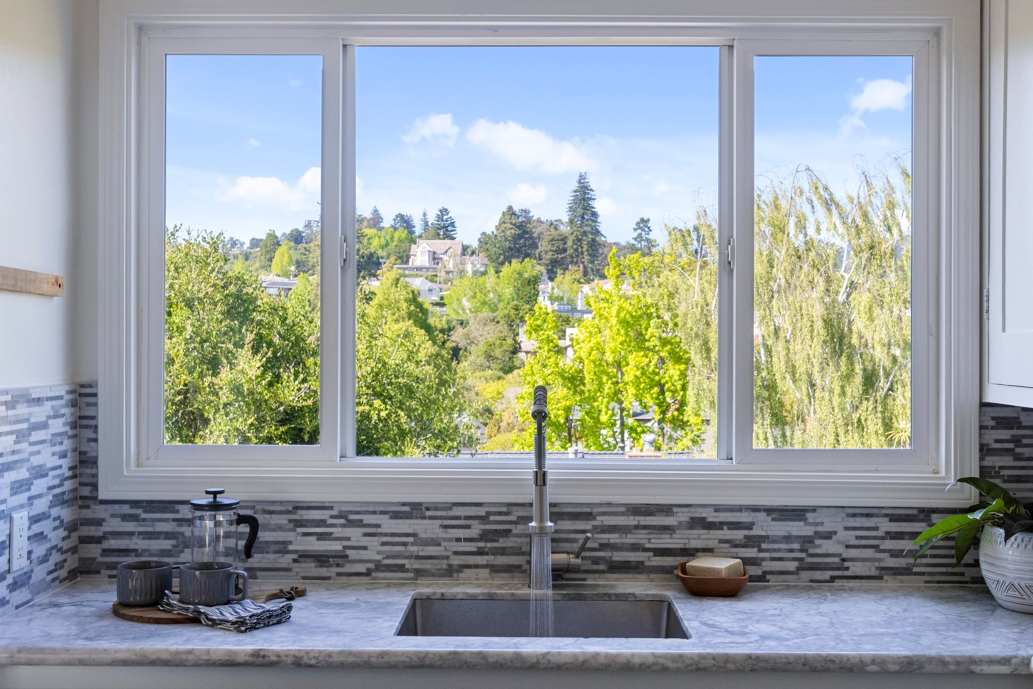 SALE PENDING!! Welcome home to 1220 Hollywood Ave. in Upper Glenview! This chic, spacious one bed, one bath condo is surrounded by beautiful hillside vistas and a view of the bay. One of only three units, this unit has its own private entrance, spacious private garage with washer and dryer, and common storage. The HOA is self managed and has low monthly dues. You’ll feel right at home with its spacious rooms, hardwood floors, and abundant natural light. The kitchen features Carrera Marble countertops, tile backsplash, freshly painted cabinets, stainless steel appliances and new flooring. All of the windows have been updated to dual pane. Garden lovers will be thrilled that they have space to garden in the shared front and backyards! Easy access to casual carpool, the Transbay bus offering a direct line to downtown SF/Salesforce, Highway 13 & the 580. Effortless walk down to Park Blvd for fine dining, coffee, and shopping. Hop over to the Montclair Village or Rocky’s market for food trucks, Art Walks, and more! Near tons of hiking and cycling trails at Sausal Creek. Don’t miss out on this rare condo!