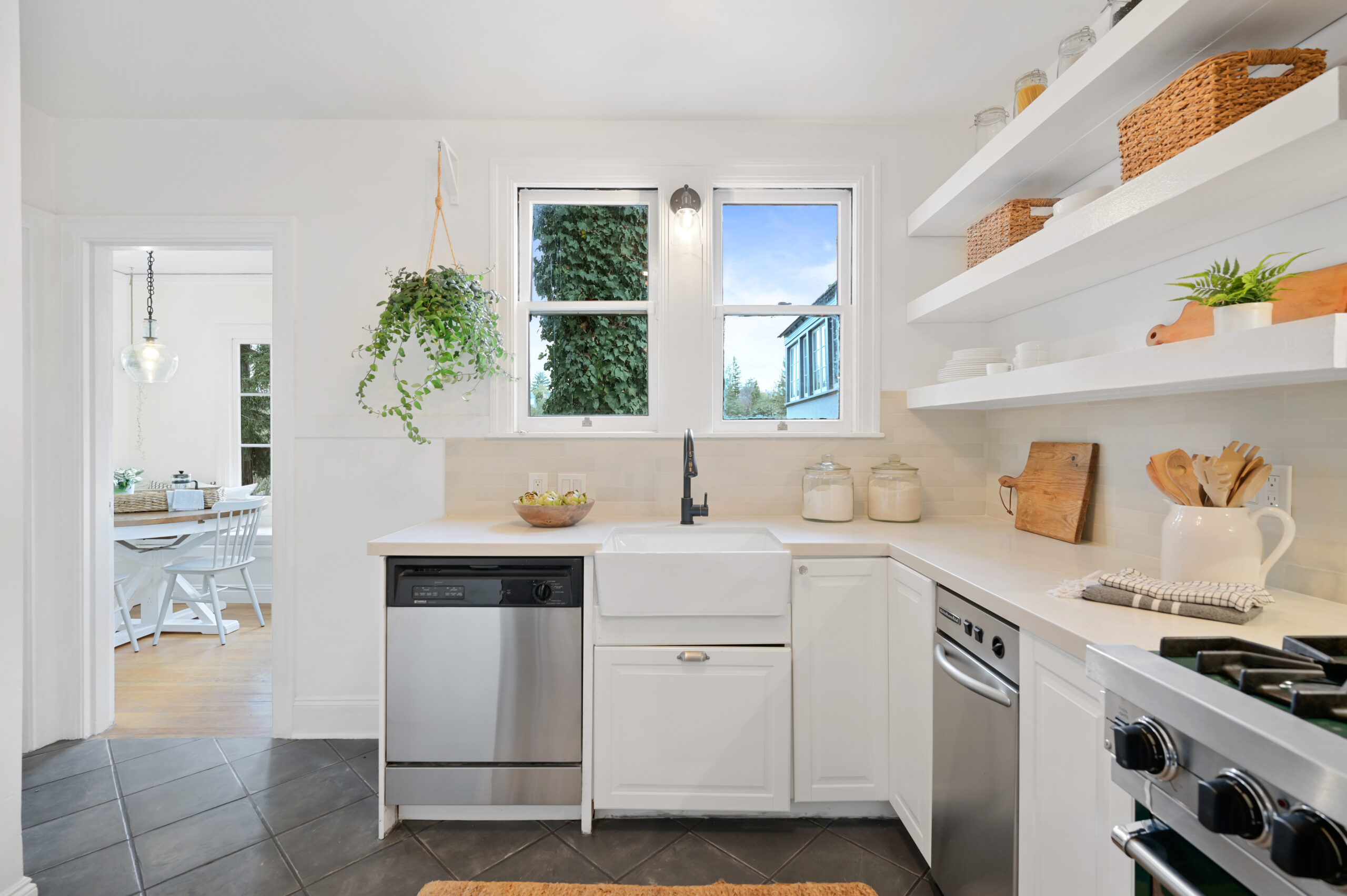 Three spacious bedrooms are located upstairs with a luxurious oversized bathroom. The lower level area lends itself perfectly as a flex space that leads to the rear grounds. Outdoor spaces include a private deck perfect for entertaining and lower-level gardens for play. Spacious, detached garage perfect for storage. Just blocks from the award-winning Crocker Highlands Elementary, Lakeshore Ave, and the shops and restaurants of Park Blvd.