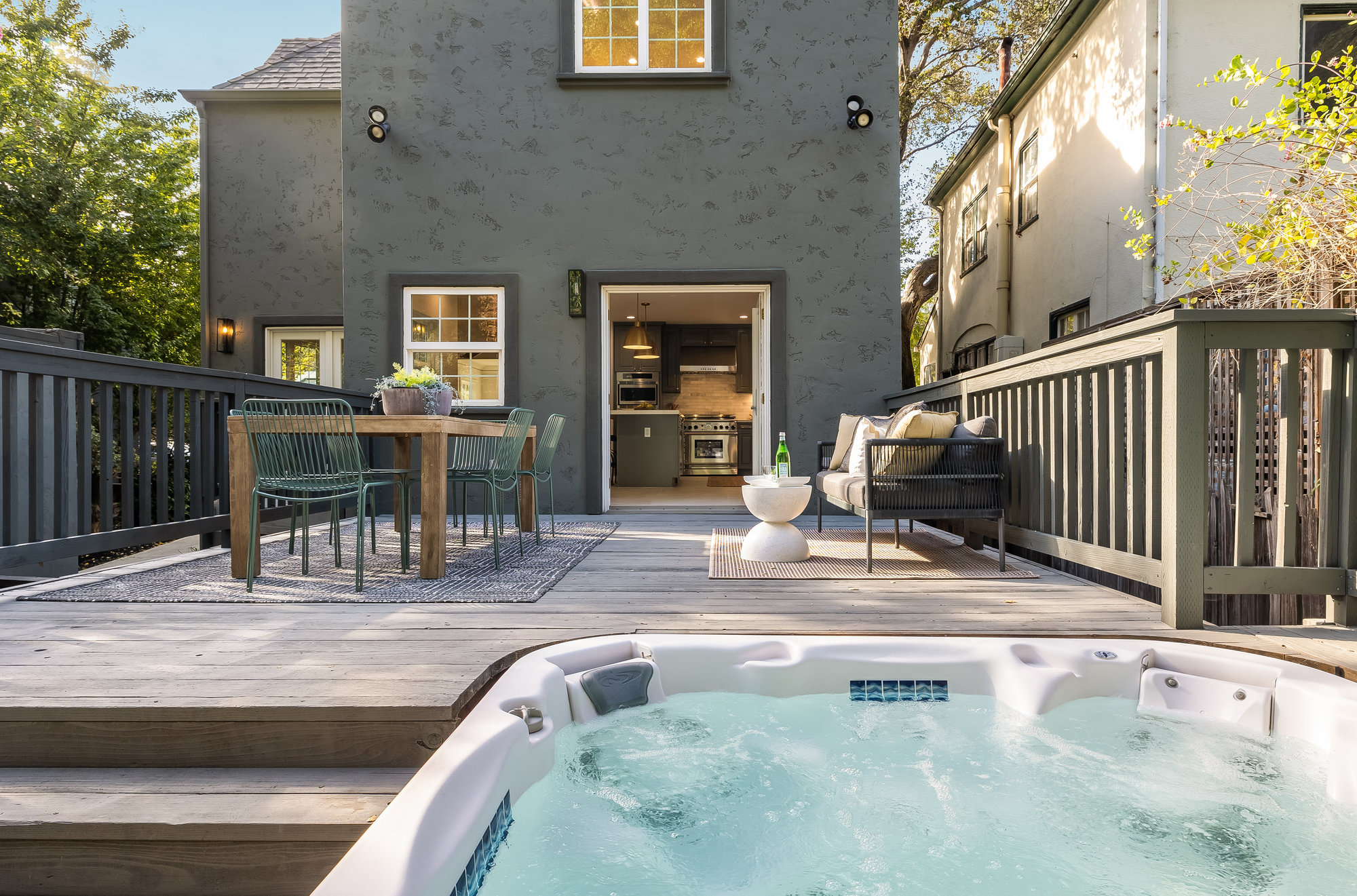 SOLD!!!! Welcome to 1287 Trestle Glen, an elegant Tudor paired with stunning gardens. Features include a spacious floor plan, living room with handsome fireplace, vintage oak hardwoods, and multi-paned windows. Dining-family room opening onto magazine-worthy chef’s eat-in kitchen with large center island, stone counters, stainless Thermador appliances, and double oven. French doors from the kitchen lead to private rear grounds with deck, grassy areas for play, patios for entertaining, hot tub, and an enchanting playhouse. All bedrooms upstairs, including primary suite with walk-in closet and updated bath. Dwell-inspired hall bath with soaking tub, frameless glass shower, floating vanity, and designer tile. Expansive, semi-finished attic space offering great storage plus expansion potential, and an extra-large detached garage ideal for cars, storage, workshop, or more. As a bonus, AC will keep you cool and refreshed on hot summer days. Located blocks from the shops and restaurants of Lakeshore Avenue, and the award-winning Crocker Highlands Elementary School. Just minutes by car to the Bay Bridge and San Francisco.