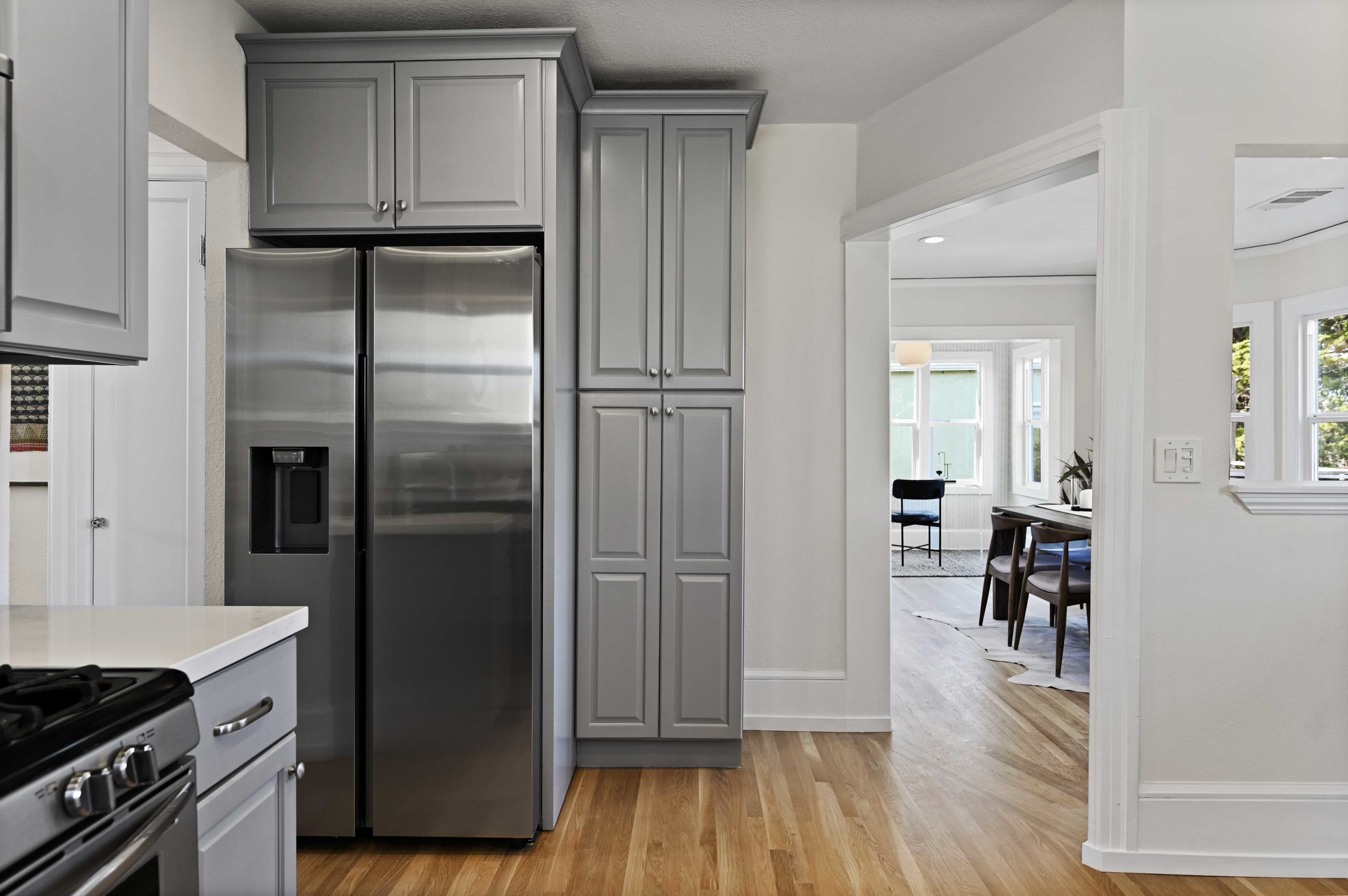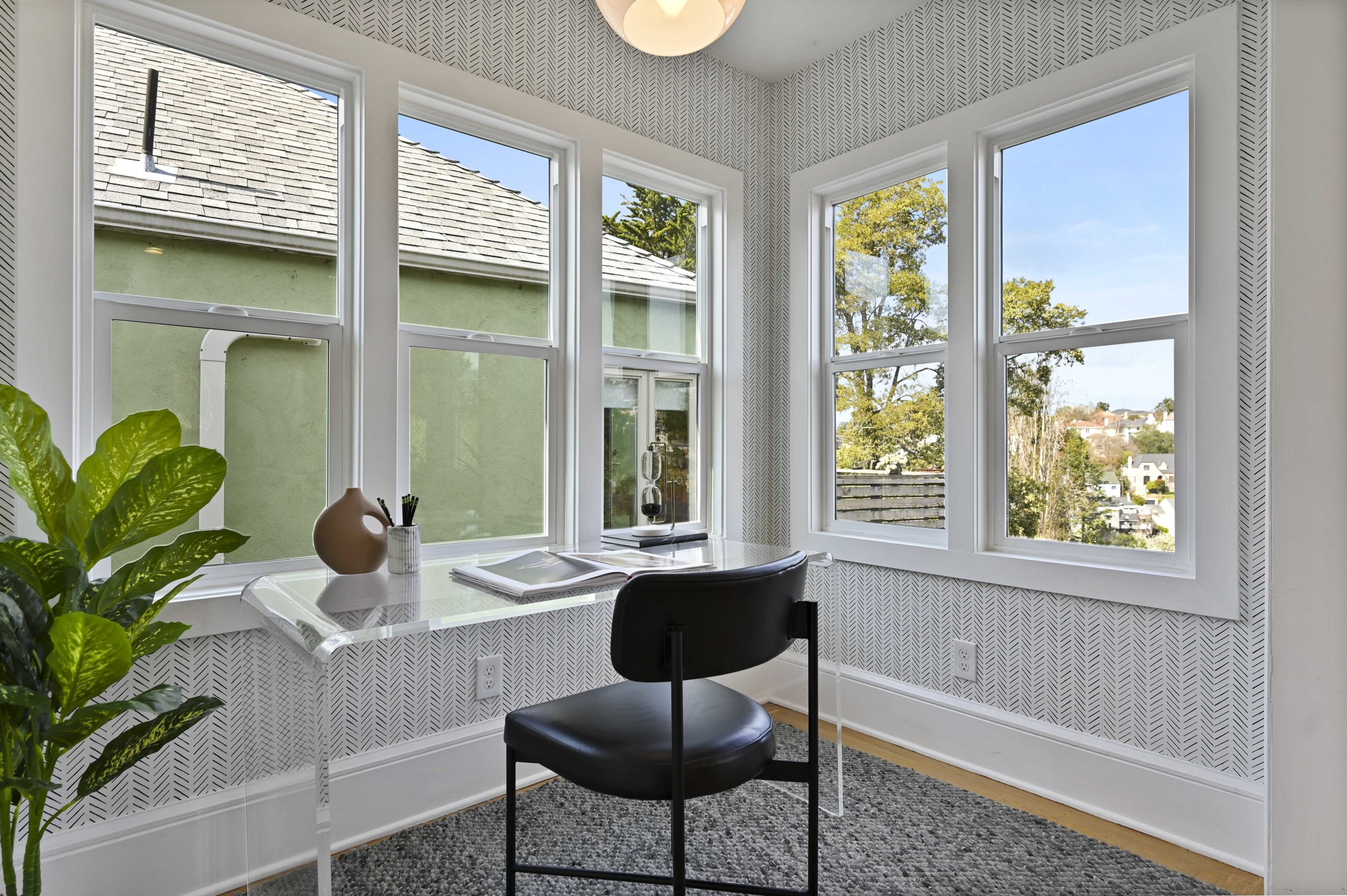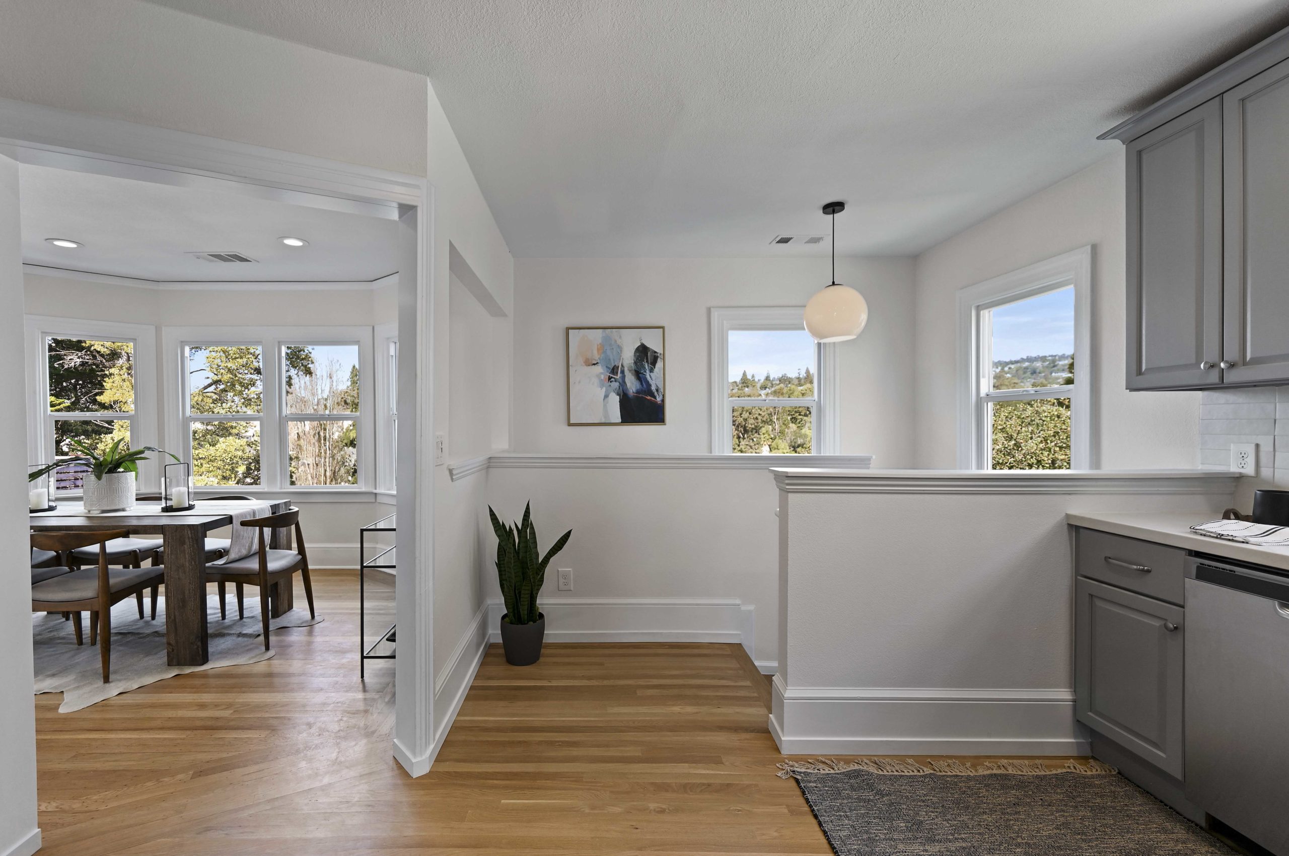 Crocker Highlands jewel with stunning neighborhood views, located just blocks from great coffee, shops and restaurants. Cozy light filled living room with fireplace, dining room with additional view nook perfect as home office. Adjacent updated chefโs kitchen with stone countertops, stainless steel appliances and designer tile backsplash. Three well proportioned bedrooms in total including a primary suite with a double vanity, shower, tub and designer tile. Private rear gardens with fabulous outdoor space, a large deck for entertaining and a bocce ball court. The garage space is perfect for parking or storage. Just minutes from award winning Crocker Highlands Elementary and easy access to Park Blvd and Hwy 580. Close to the shops and restaurants of Glenview, Lakeshore, Lake Merritt and more!