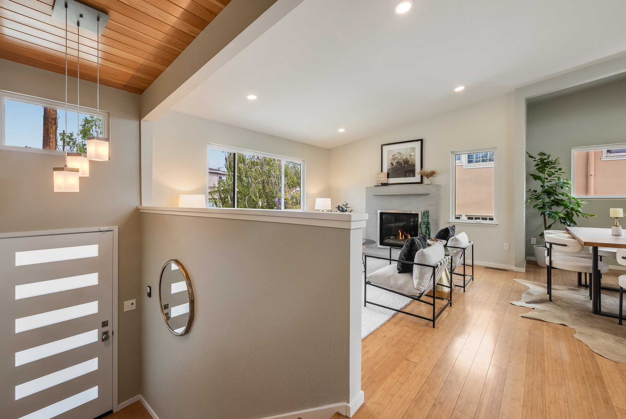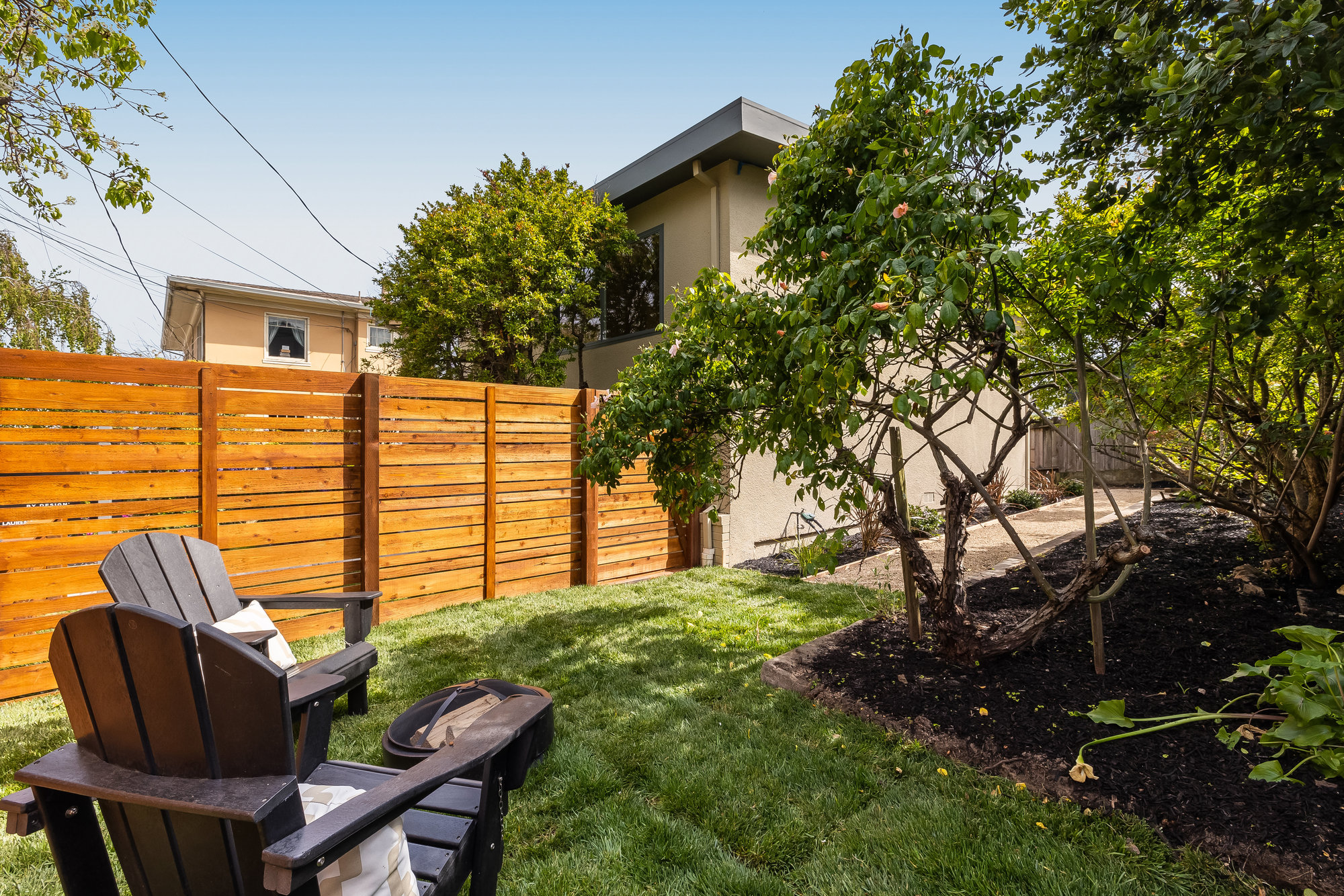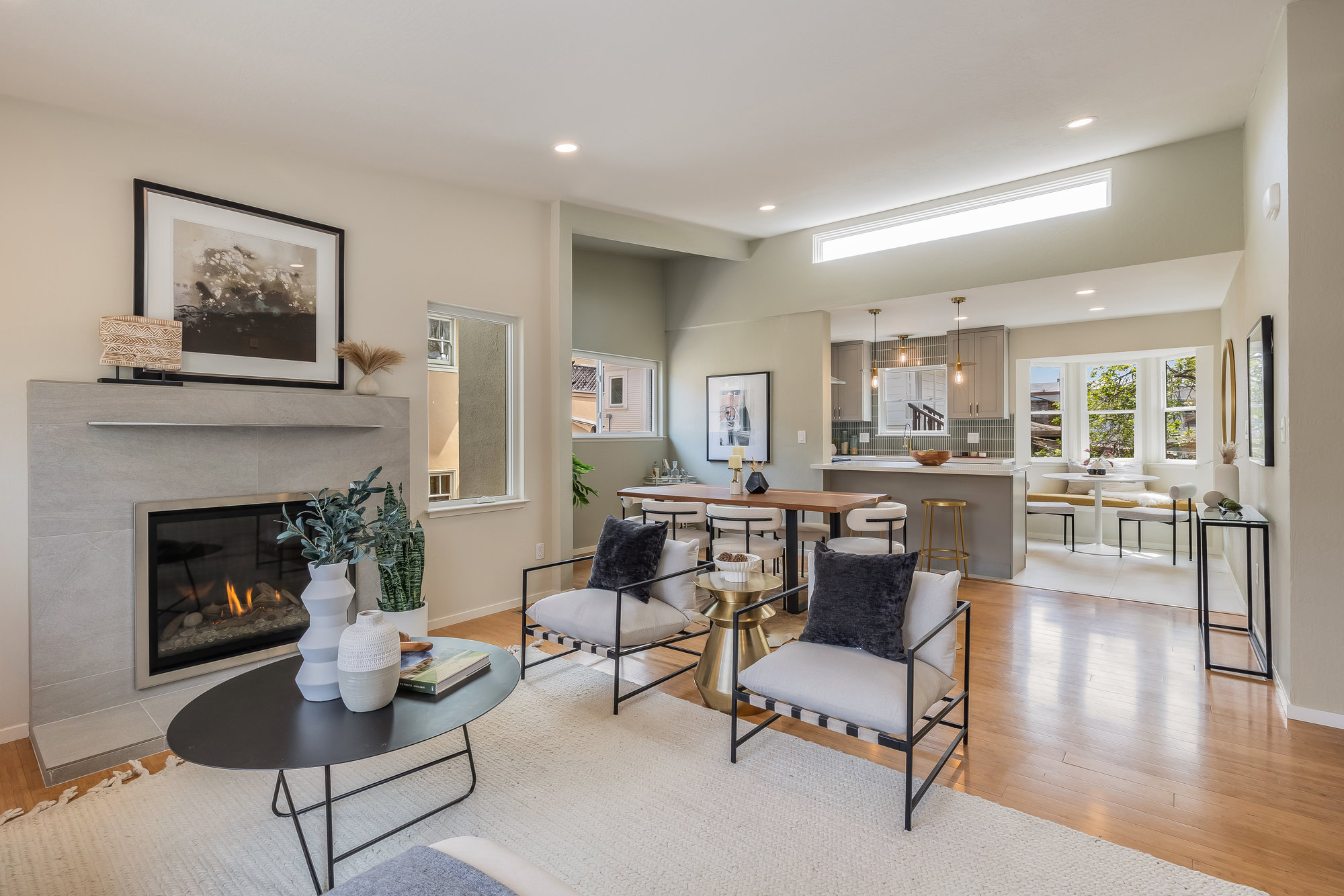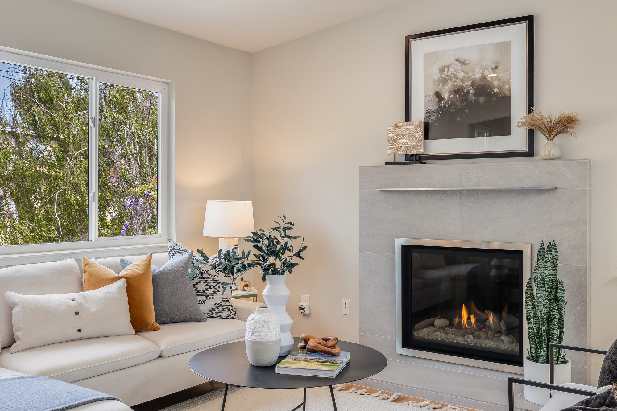 Tucked into the heart of Glenview, just two blocks from neighborhood favorites, this rare contemporary bungalow blends clean architectural lines with midcentury inspiration. Recently renovated with thoughtful detail, the home offers an easy indoor-outdoor lifestyle in one of Oakland’s most beloved neighborhoods. Vaulted ceilings and a gas fireplace anchor the bright, airy living room, which flows into a spacious dining area and a newly updated kitchen. Outfitted with stainless steel appliances, porcelain tile, and sophisticated brass lighting, the kitchen balances style and function for everyday living. Two well-proportioned bedrooms offer generous closets, while both bathrooms feature modern fixtures and designer finishes that align with the home’s overall aesthetic. Out back, a new patio creates the perfect space to gather and grill, framed by mature fruit trees, roses, and a grassy area for play. Located just blocks from Glenview’s top-rated elementary school and moments from local favorites like Marzano, Paulista, Park Burger, and Ultimate Grounds. Stylish, turn-key, and ready to welcome you home.