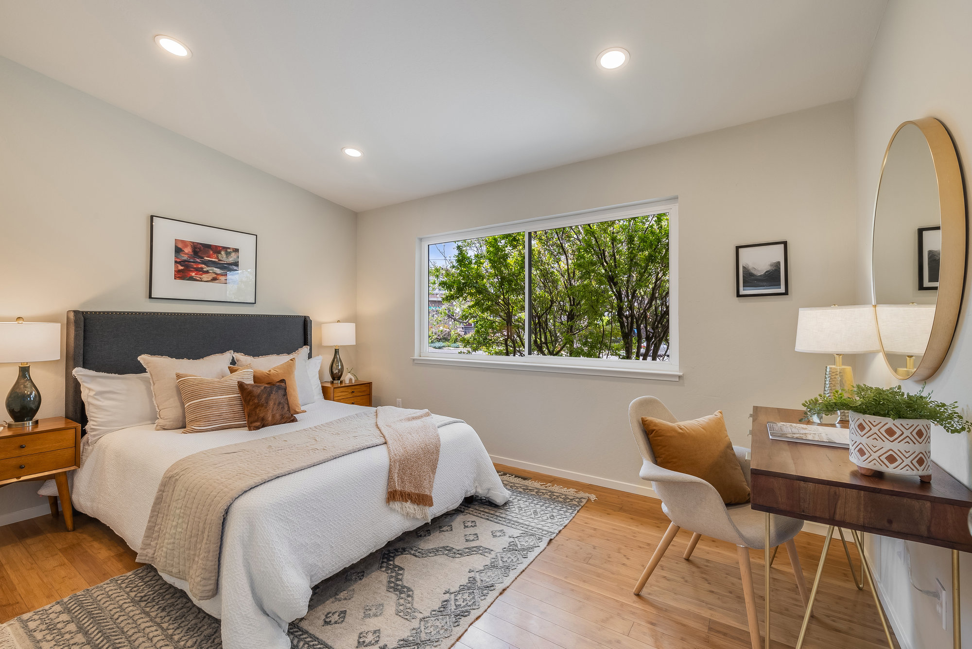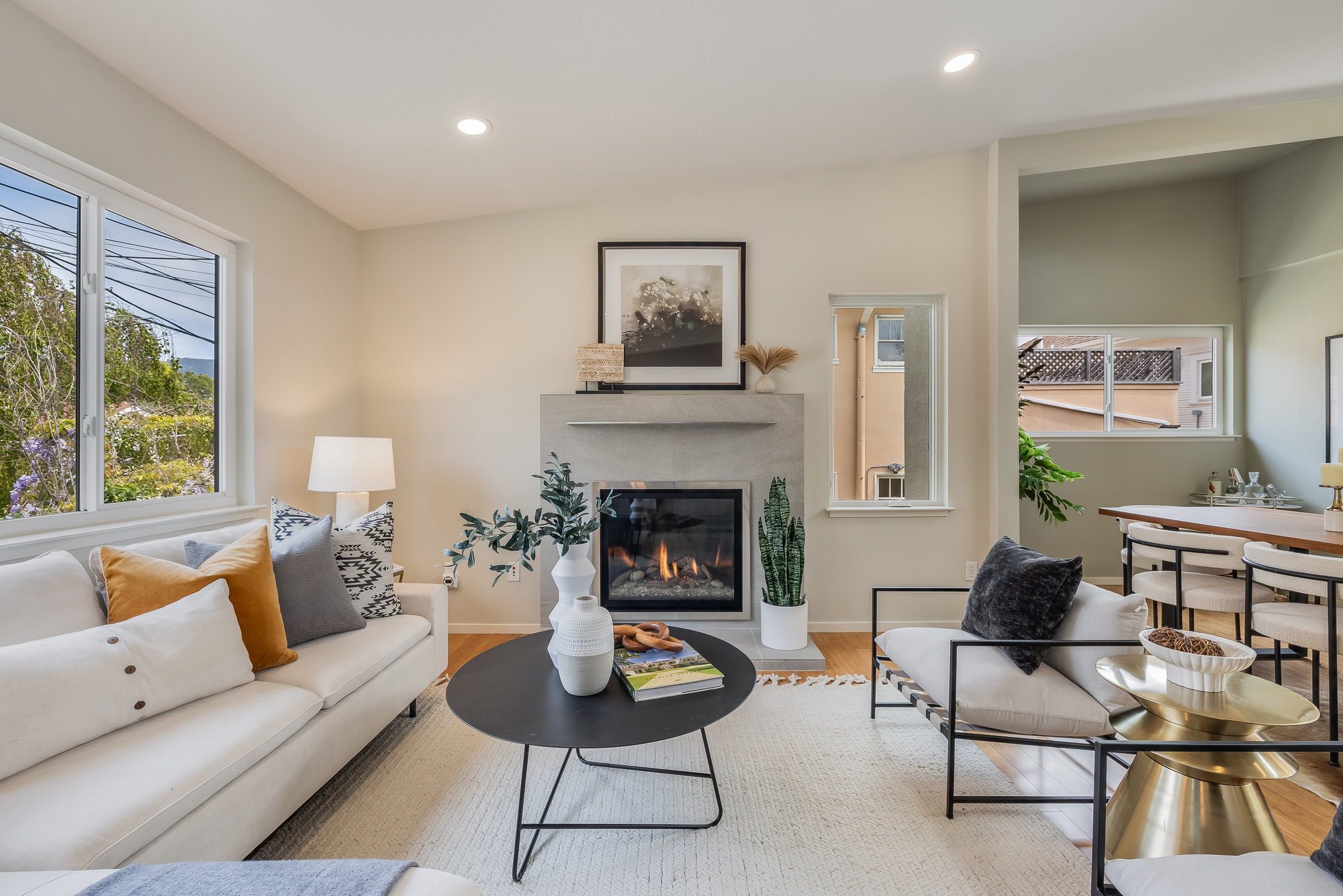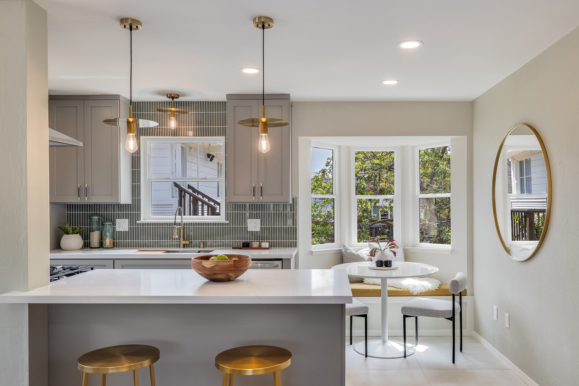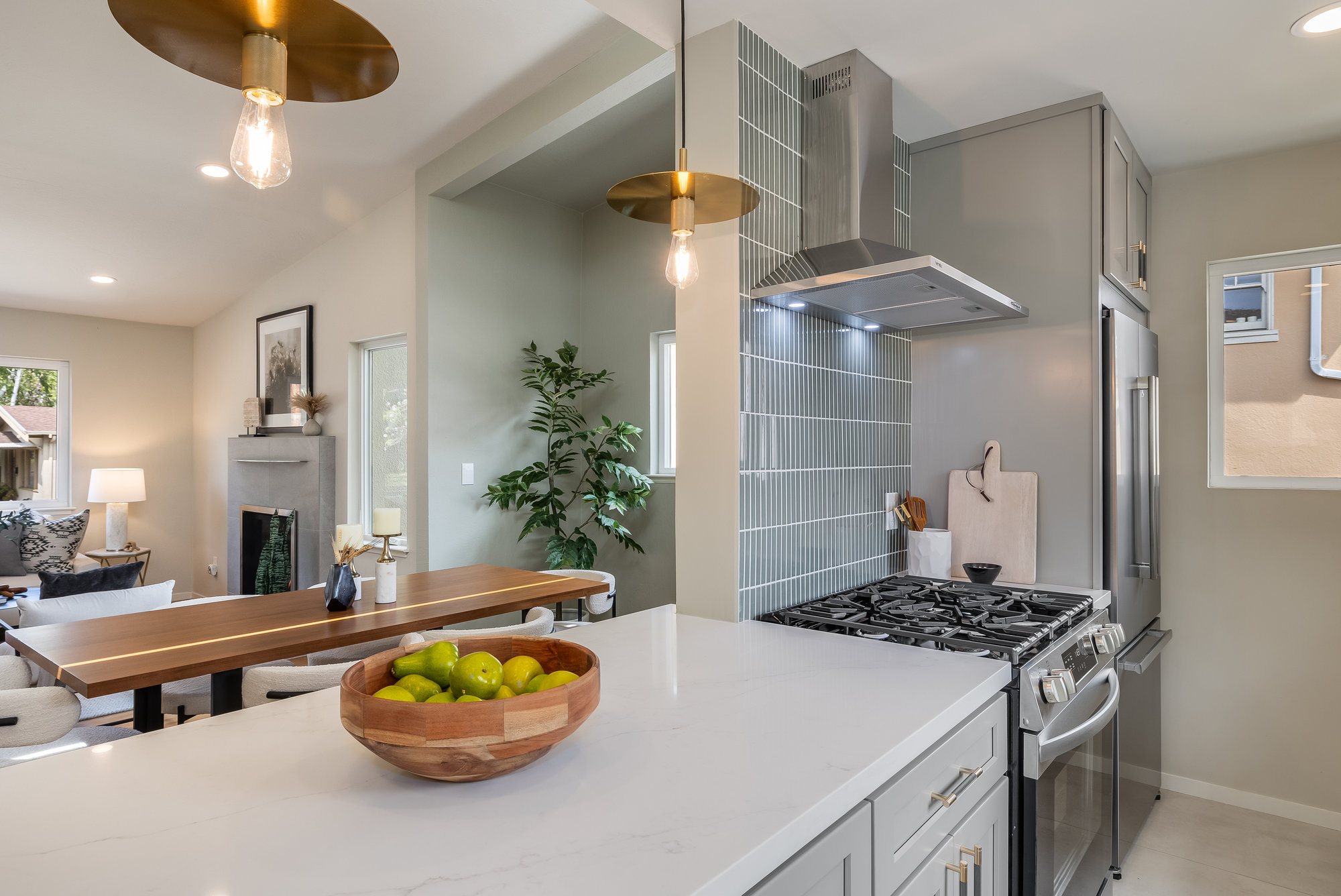Tucked into the heart of Glenview, just two blocks from neighborhood favorites, this rare contemporary bungalow blends clean architectural lines with midcentury inspiration. Recently renovated with thoughtful detail, the home offers an easy indoor-outdoor lifestyle in one of Oakland’s most beloved neighborhoods. Vaulted ceilings and a gas fireplace anchor the bright, airy living room, which flows into a spacious dining area and a newly updated kitchen. Outfitted with stainless steel appliances, porcelain tile, and sophisticated brass lighting, the kitchen balances style and function for everyday living. Two well-proportioned bedrooms offer generous closets, while both bathrooms feature modern fixtures and designer finishes that align with the home’s overall aesthetic. Out back, a new patio creates the perfect space to gather and grill, framed by mature fruit trees, roses, and a grassy area for play. Located just blocks from Glenview’s top-rated elementary school and moments from local favorites like Marzano, Paulista, Park Burger, and Ultimate Grounds. Stylish, turn-key, and ready to welcome you home.