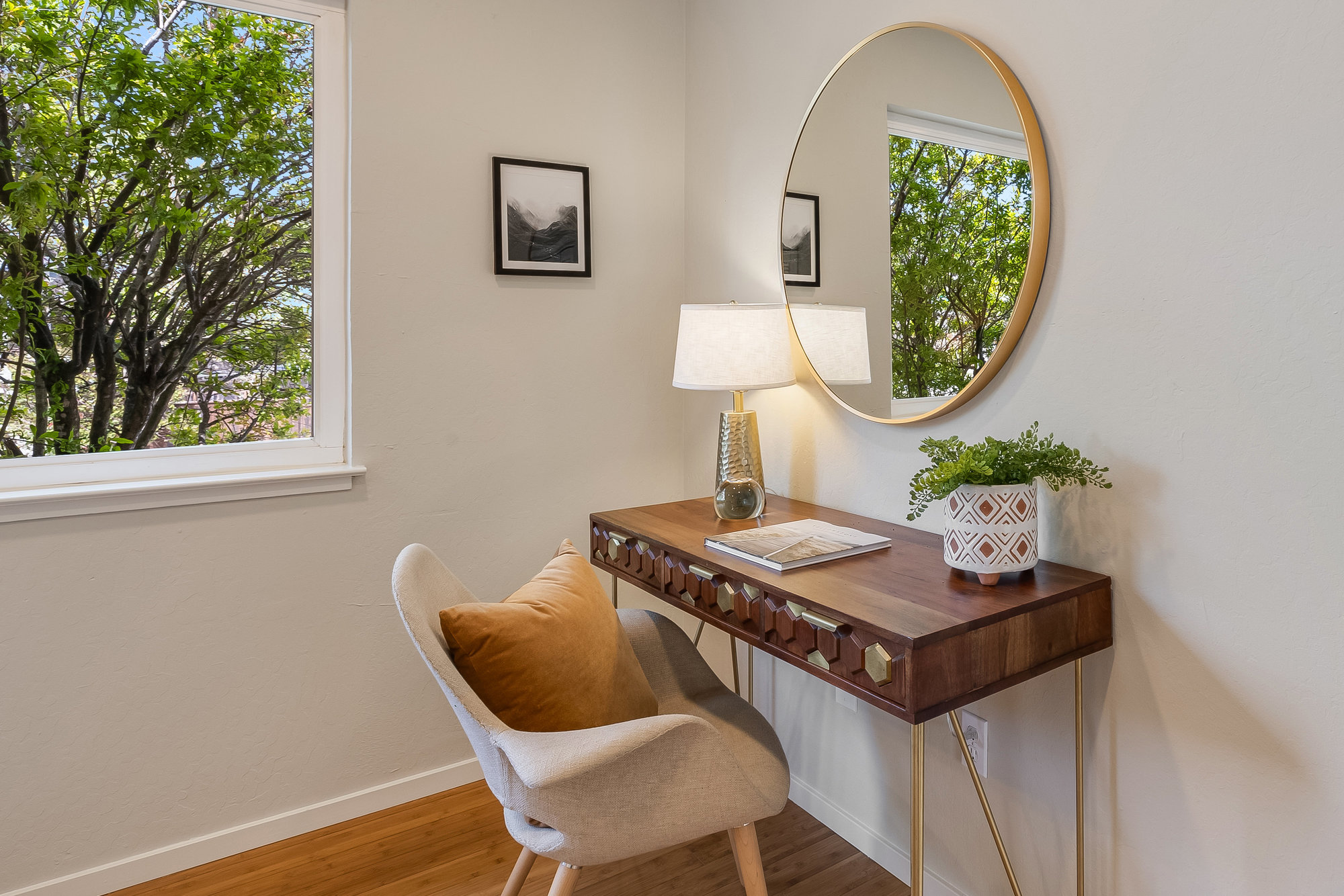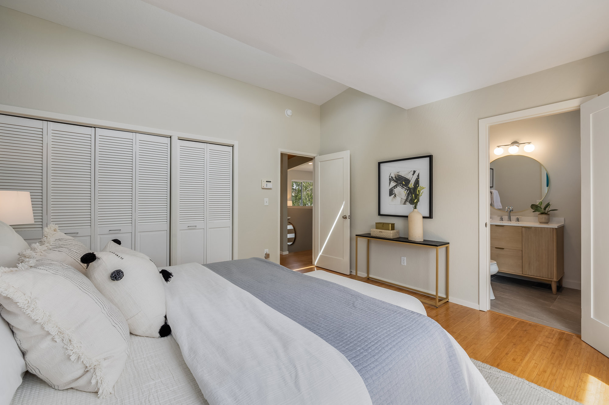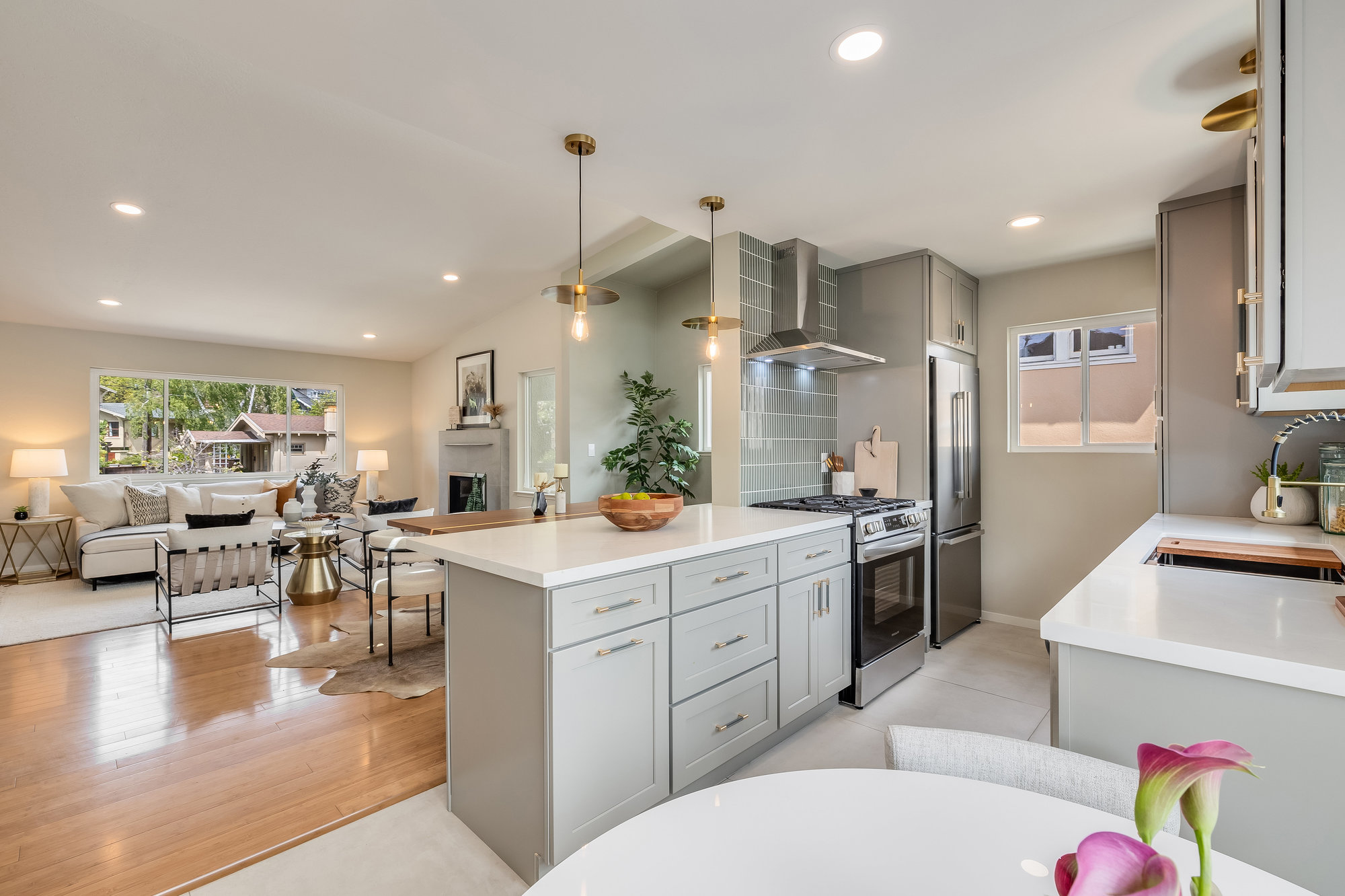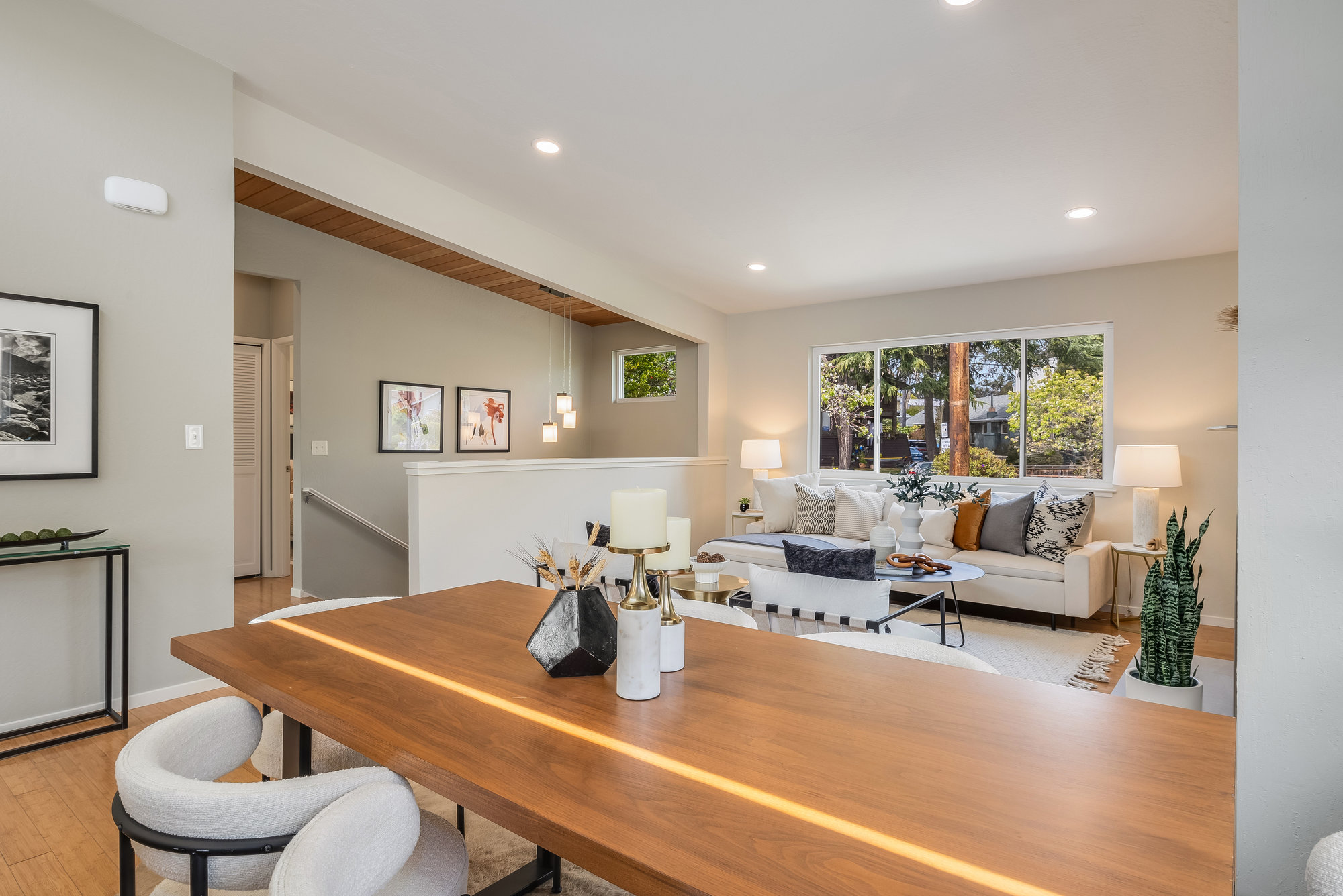 Tucked into the heart of Glenview, just two blocks from neighborhood favorites, this rare contemporary bungalow blends clean architectural lines with midcentury inspiration. Recently renovated with thoughtful detail, the home offers an easy indoor-outdoor lifestyle in one of Oakland’s most beloved neighborhoods. Vaulted ceilings and a gas fireplace anchor the bright, airy living room, which flows into a spacious dining area and a newly updated kitchen. Outfitted with stainless steel appliances, porcelain tile, and sophisticated brass lighting, the kitchen balances style and function for everyday living. Two well-proportioned bedrooms offer generous closets, while both bathrooms feature modern fixtures and designer finishes that align with the home’s overall aesthetic. Out back, a new patio creates the perfect space to gather and grill, framed by mature fruit trees, roses, and a grassy area for play. Located just blocks from Glenview’s top-rated elementary school and moments from local favorites like Marzano, Paulista, Park Burger, and Ultimate Grounds. Stylish, turn-key, and ready to welcome you home.