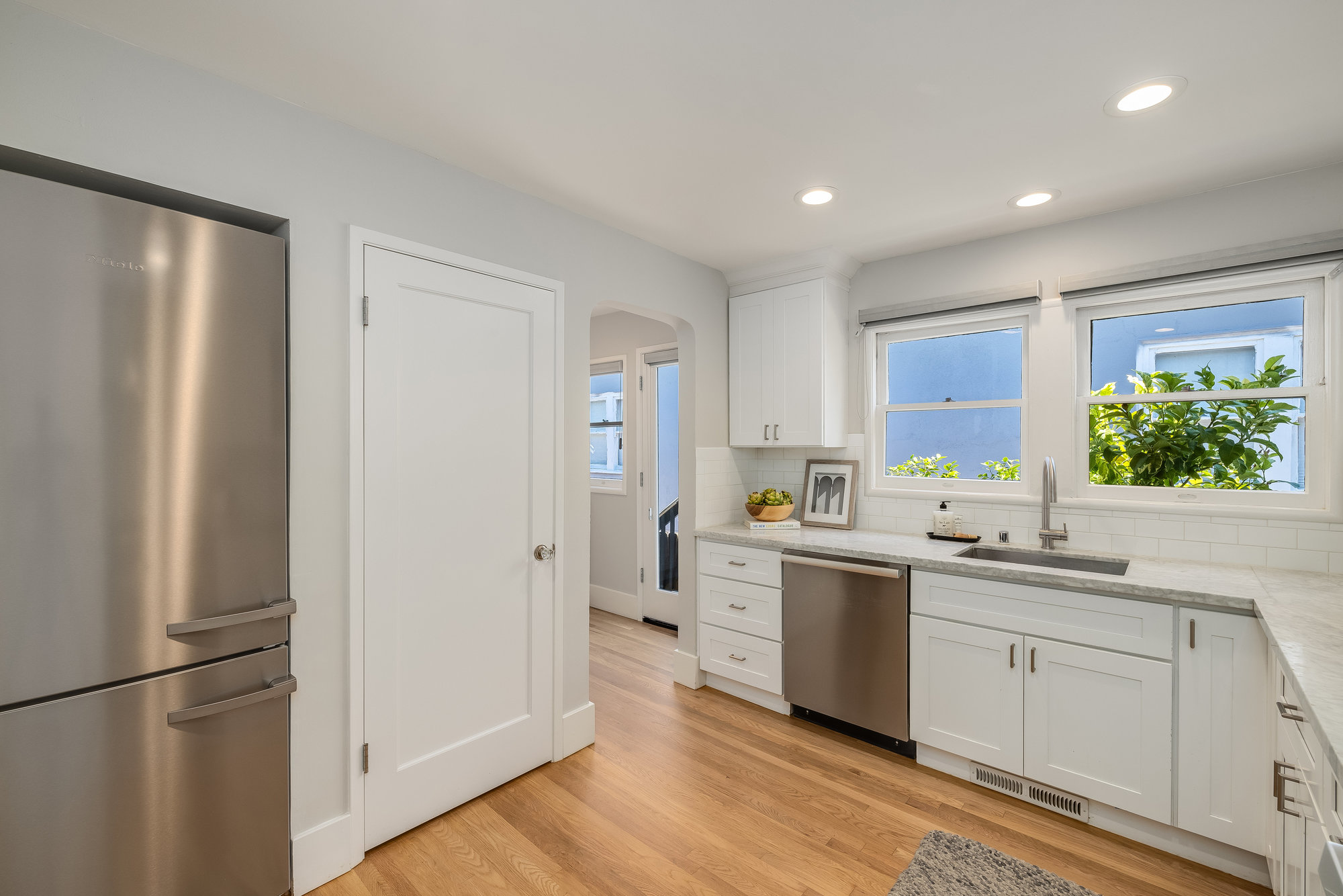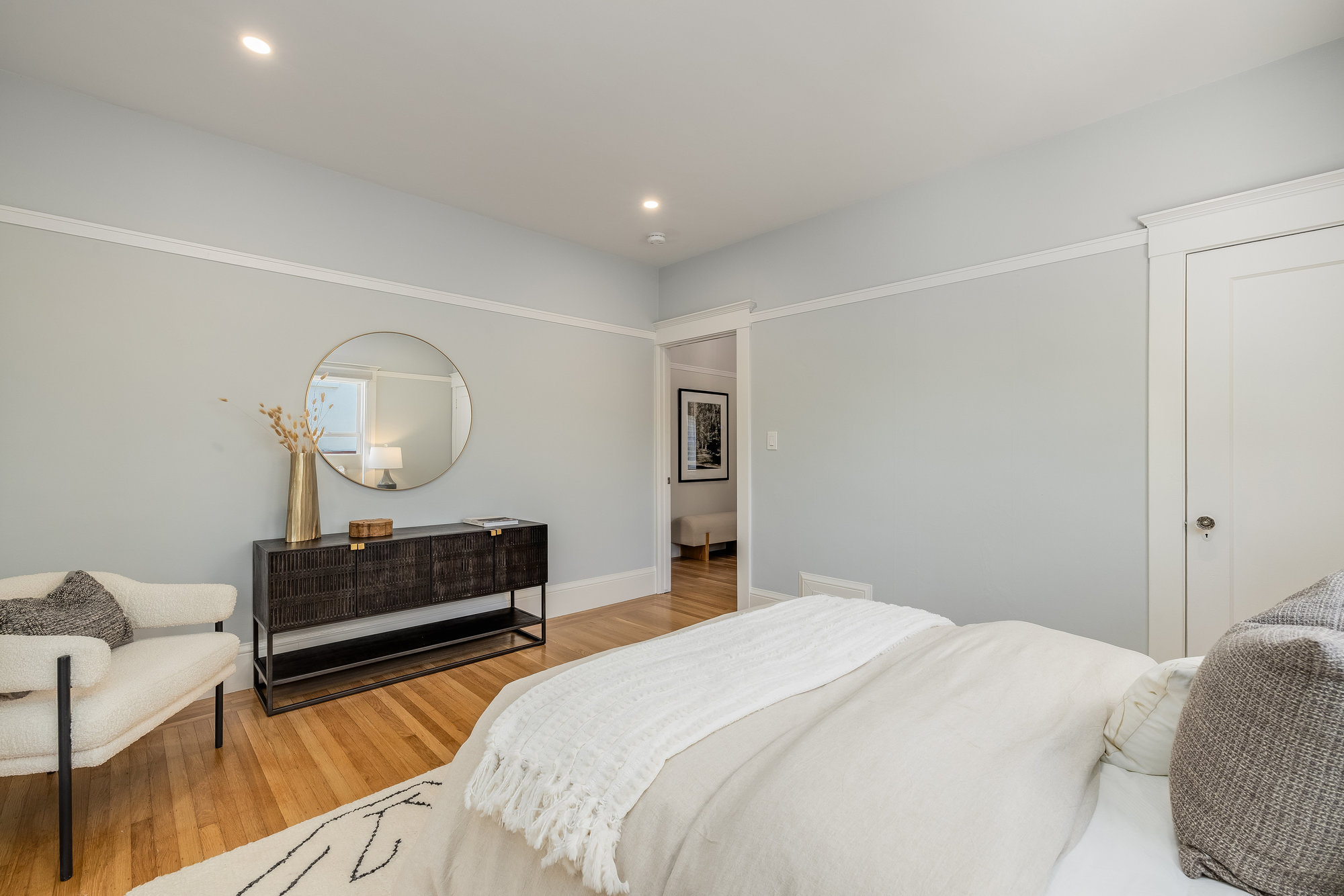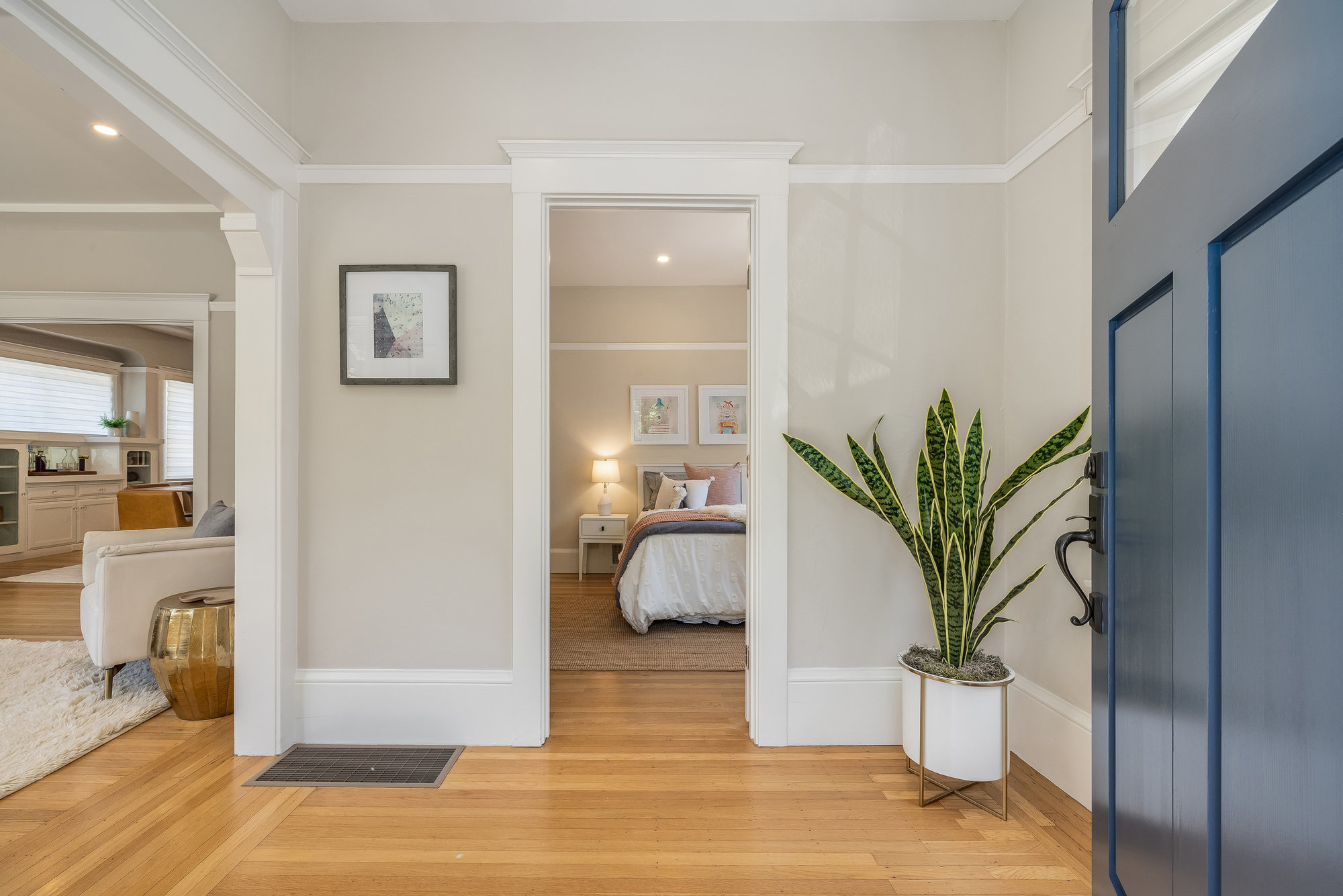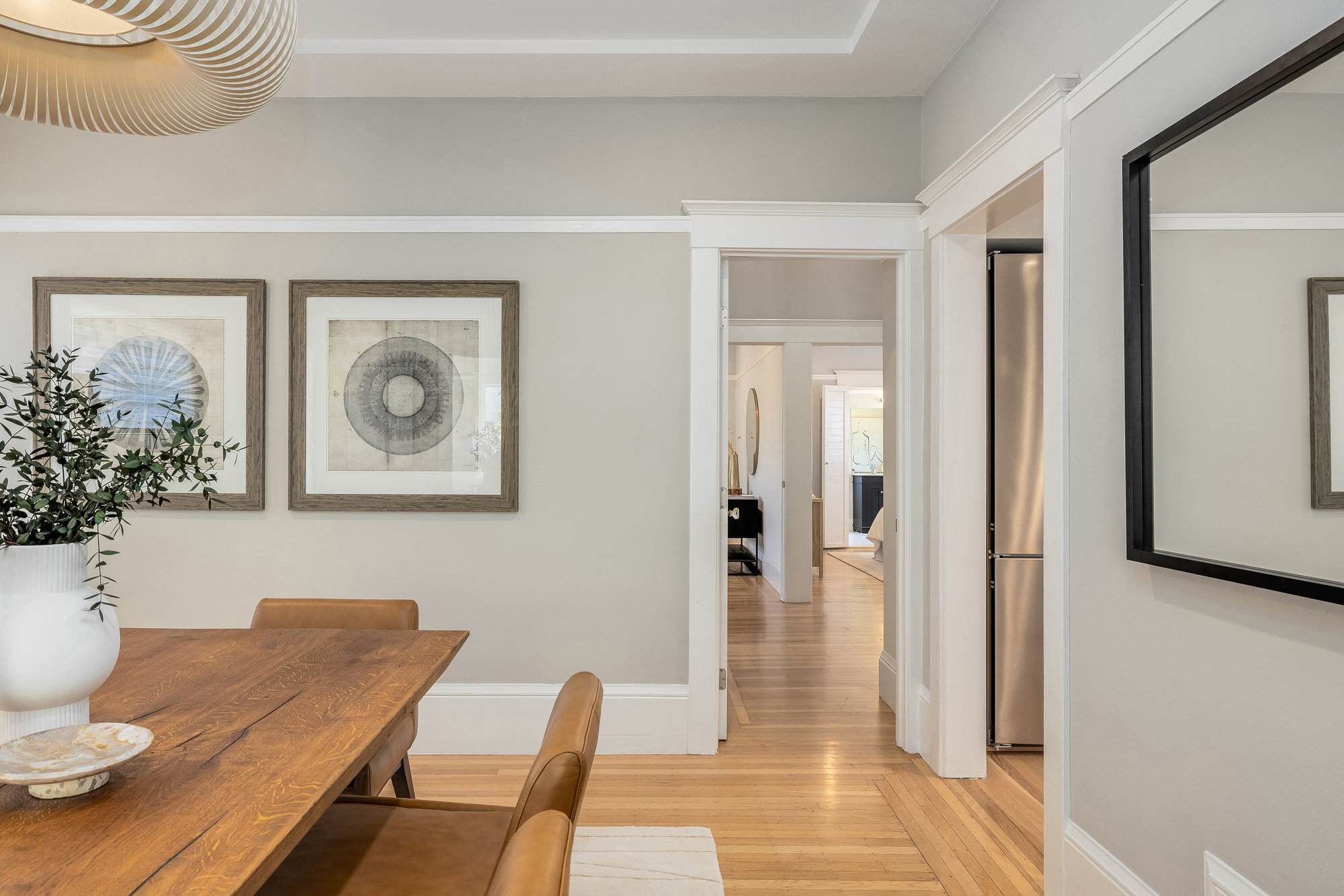 Pristine Crocker Highlands Craftsman featuring elegant private rear gardens with fabulous detached cabana. Spacious formal living room illuminated with natural light, elegant ceiling accents, fireplace and artisan wood moldings. Dining room with stunning Mia Pendant Chandelier and freshly rebuilt built-ins. Custom inset lighting and designer window shades complete both of these spaces. Chef’s kitchen with stainless appliances, Wolf Range, luxe stone counters, artisan tile backsplash surround, abundant cabinetry, hardwood floors and storage areas with dedicated space for home command center. Updated hall bathroom with marble top vanity, shower over tub and subway tile. Primary suite with spacious bath offering frameless glass shower, double sink vanity, private WC, and windows overlooking the gardens. Glorious rear grounds with Luxembourg Garden accents, gas plumbed RH fire pit, and a fabulous cabana with double glass doors, interior wood paneling, and floating fireplace, an ideal flex room for garden soirees, home office, gym, or den. Interior stairs from the kitchen lead down to spacious laundry and storage areas housing the home’s HVAC systems for easy access. Recent updates include an EV charger, new HVAC, drainage, tankless hot water heater, electrical, plumbing, seismic, landscaping, and more. Positioned on a quiet neighborhood street just blocks from fabulous shops and restaurants, the award-winning Crocker Highlands Elementary, plus quick access to the Bay Bridge to SF.