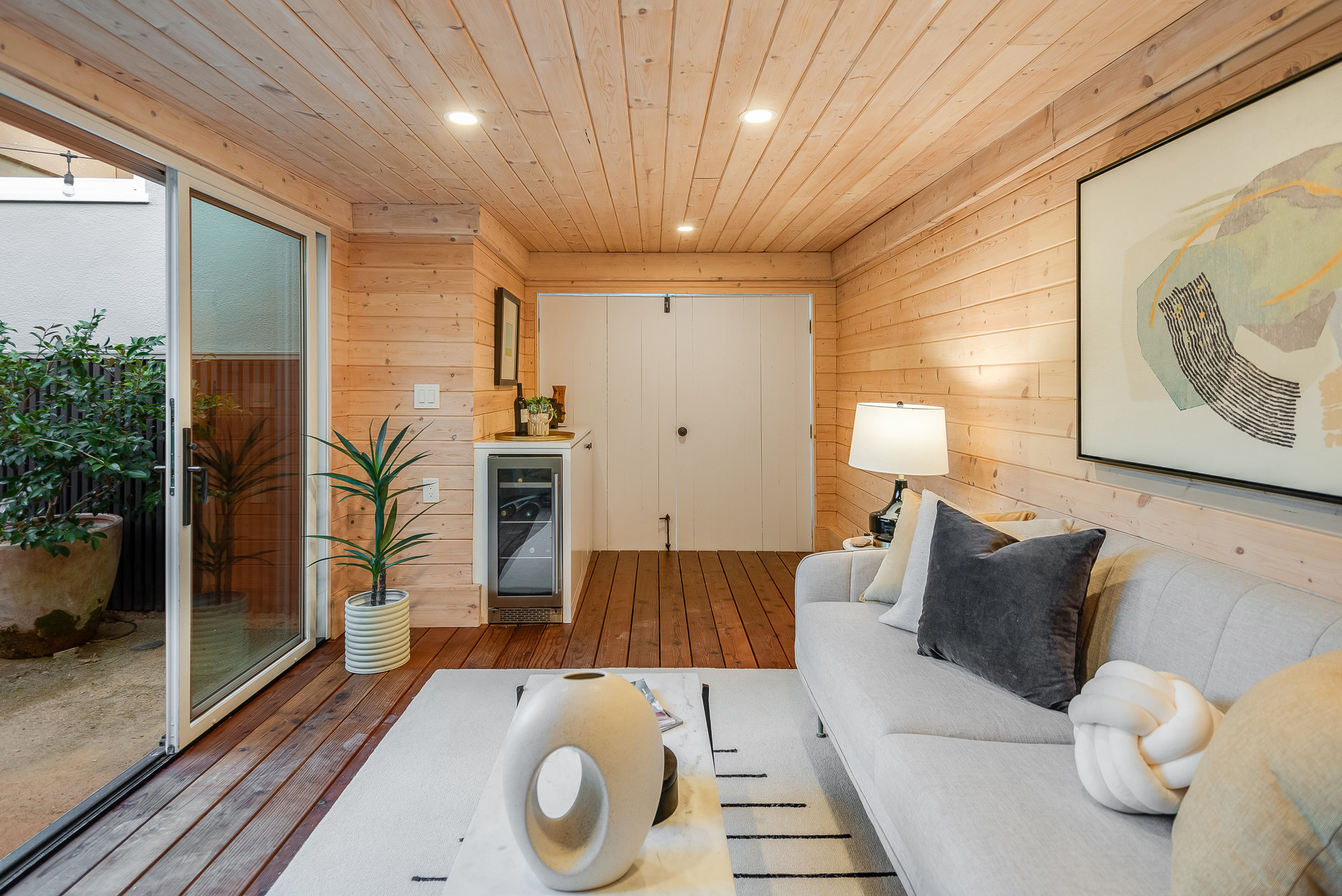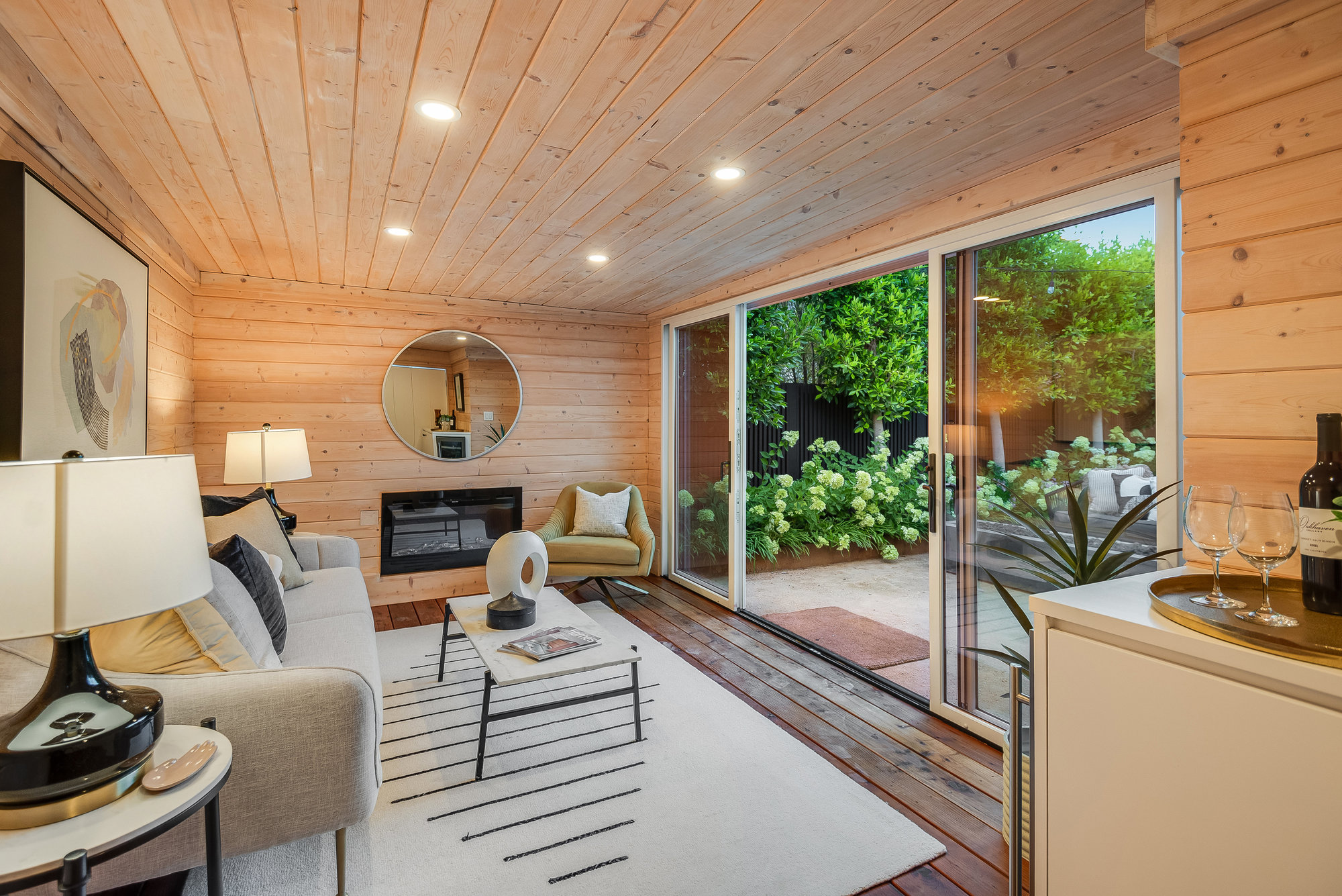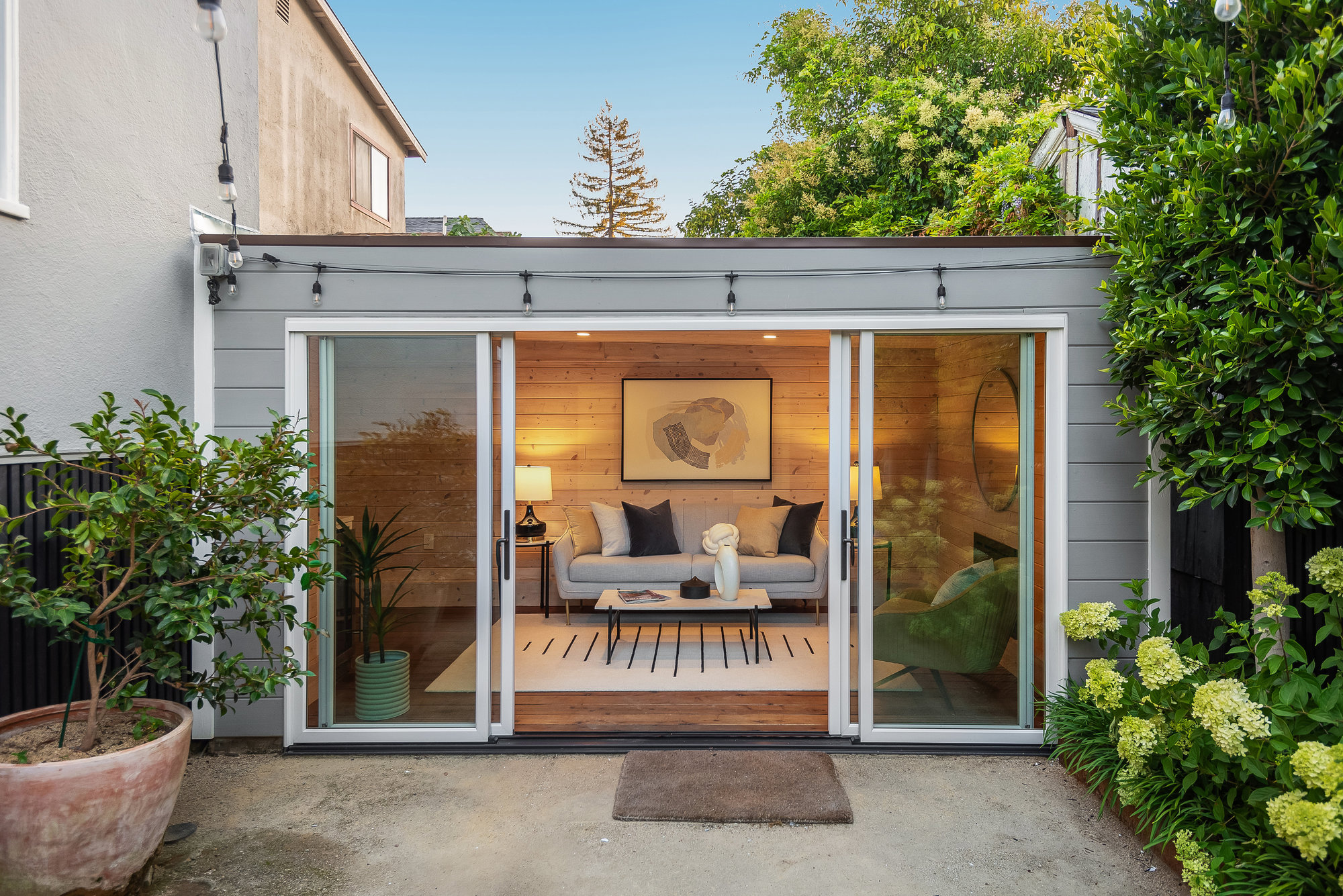 — Detached cabana space framing the gardens