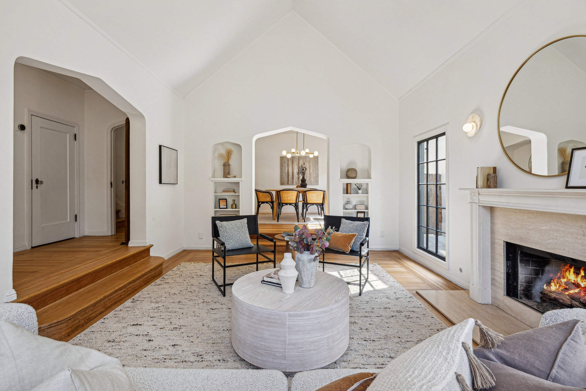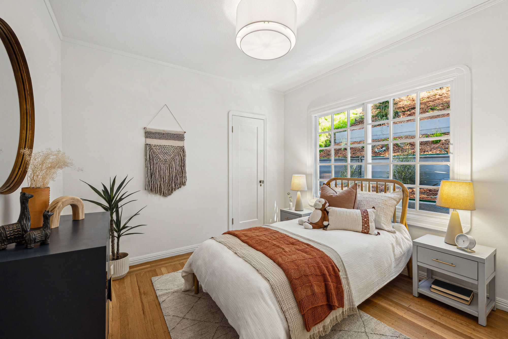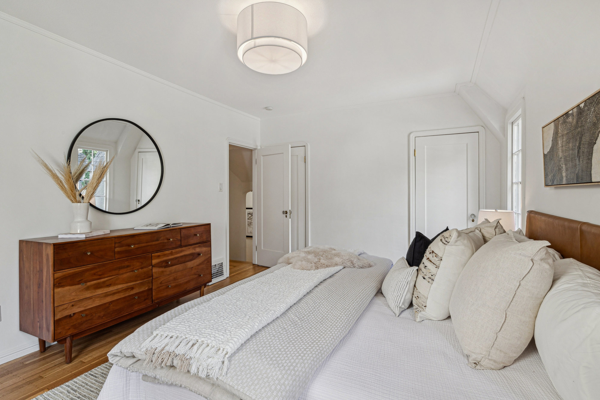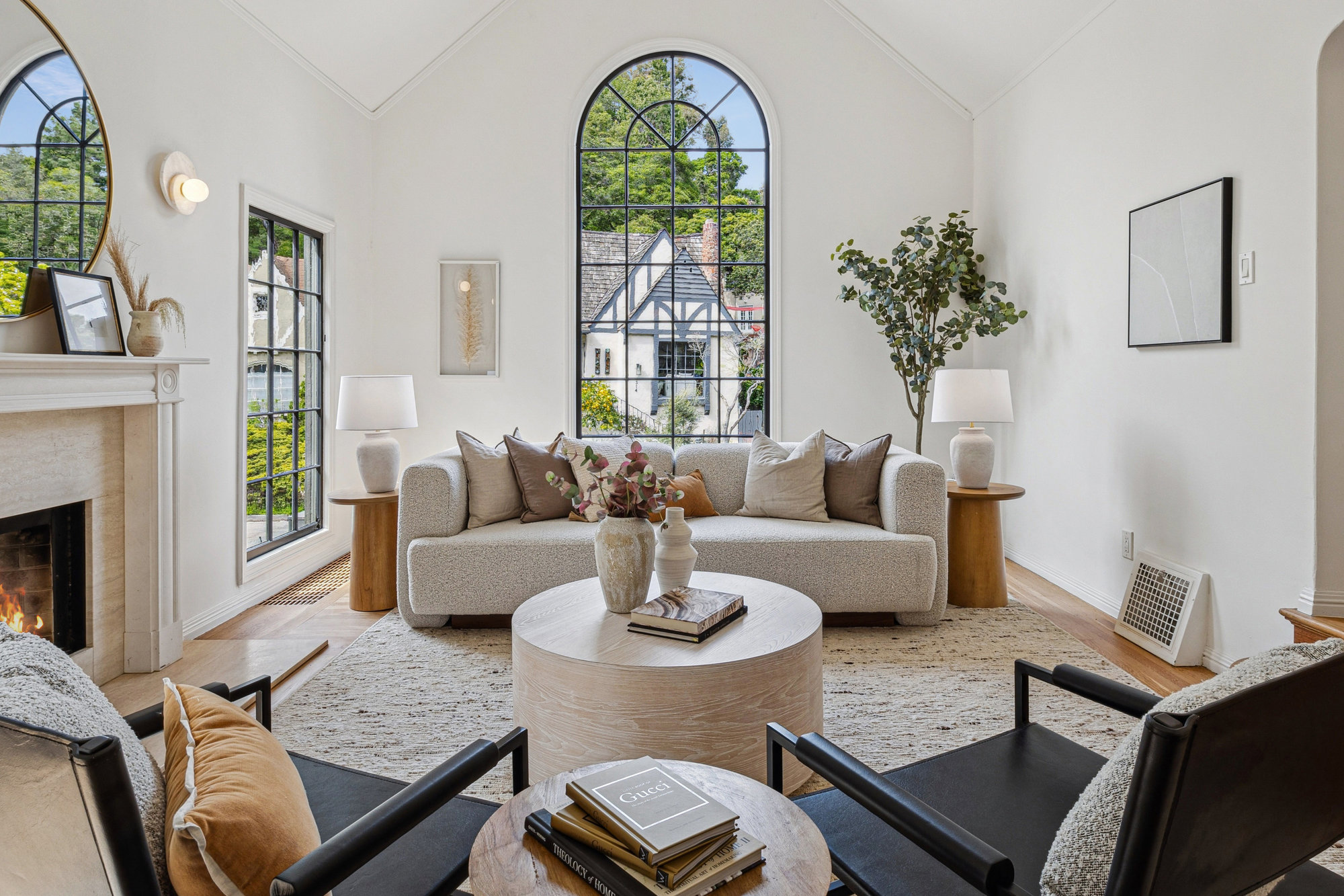 Crocker Highlands Fairy-Tale Tudor ideally exemplifying 1920’s period Storybook Architecture. Captivating features including leaded glass windows, parquet floors and a blend of vintage with modern throughout. Sunken living room with vaulted cathedral ceiling, stunning arched 32 pane window and wood burning fireplace. Cheerful dining room sitting adjacent to an impressive kitchen offering quartz counters, stainless appliances including Viking Range, artisan tile, backsplash, ample cabinetry, matte hardware and windows soothing the space in natural light. Breakfast nook off the kitchen with ladder leading to an alluring loft/flex space and pitched natural wood ceilings serving as elevated den or office. Three bedrooms, two designer baths and a lower level den space ideal for guests allow for easy living. Garage with storage, laundry and direct interior entrance complete this lovely home. Just blocks from the award winning elementary, the fabulous shops and restaurants of Lakeshore Ave and Park Blvd, and minutes from the Bay Bridge to San Francisco.