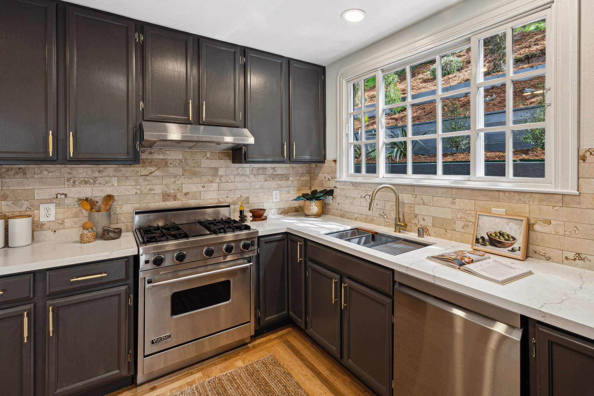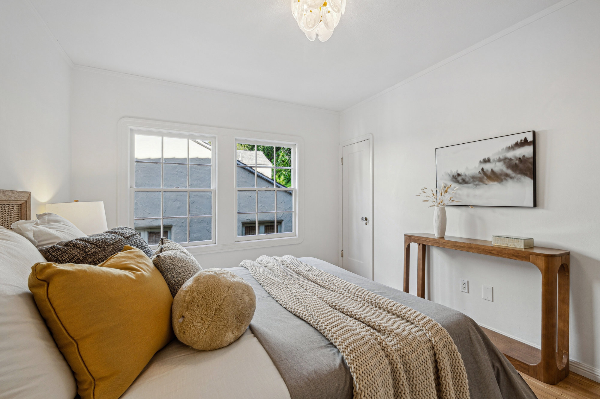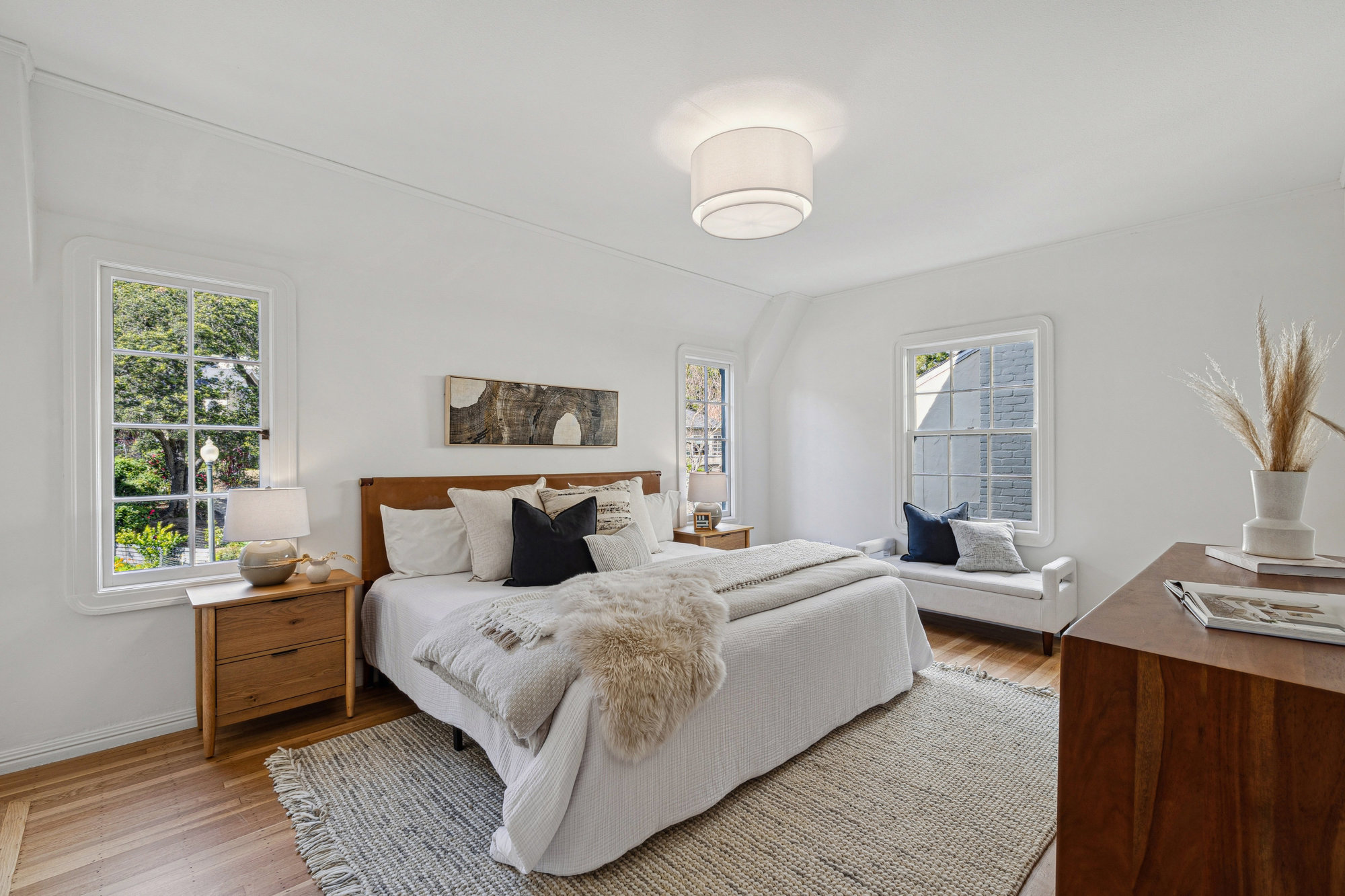 Crocker Highlands Fairy-Tale Tudor ideally exemplifying 1920’s period Storybook Architecture. Captivating features including leaded glass windows, parquet floors and a blend of vintage with modern throughout. Sunken living room with vaulted cathedral ceiling, stunning arched 32 pane window and wood burning fireplace. Cheerful dining room sitting adjacent to an impressive kitchen offering quartz counters, stainless appliances including Viking Range, artisan tile, backsplash, ample cabinetry, matte hardware and windows soothing the space in natural light. Breakfast nook off the kitchen with ladder leading to an alluring loft/flex space and pitched natural wood ceilings serving as elevated den or office. Three bedrooms, two designer baths and a lower level den space ideal for guests allow for easy living. Garage with storage, laundry and direct interior entrance complete this lovely home. Just blocks from the award winning elementary, the fabulous shops and restaurants of Lakeshore Ave and Park Blvd, and minutes from the Bay Bridge to San Francisco.