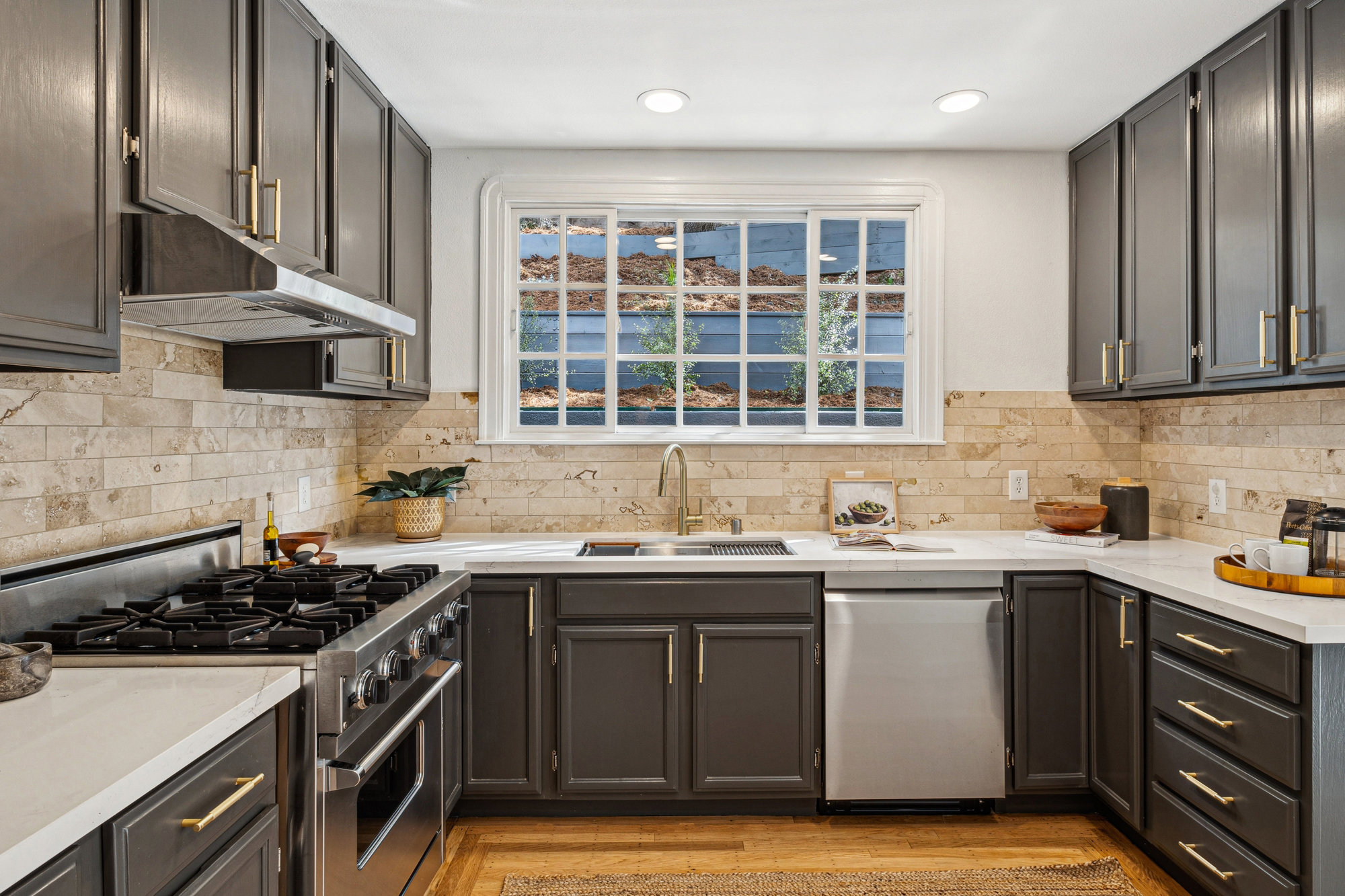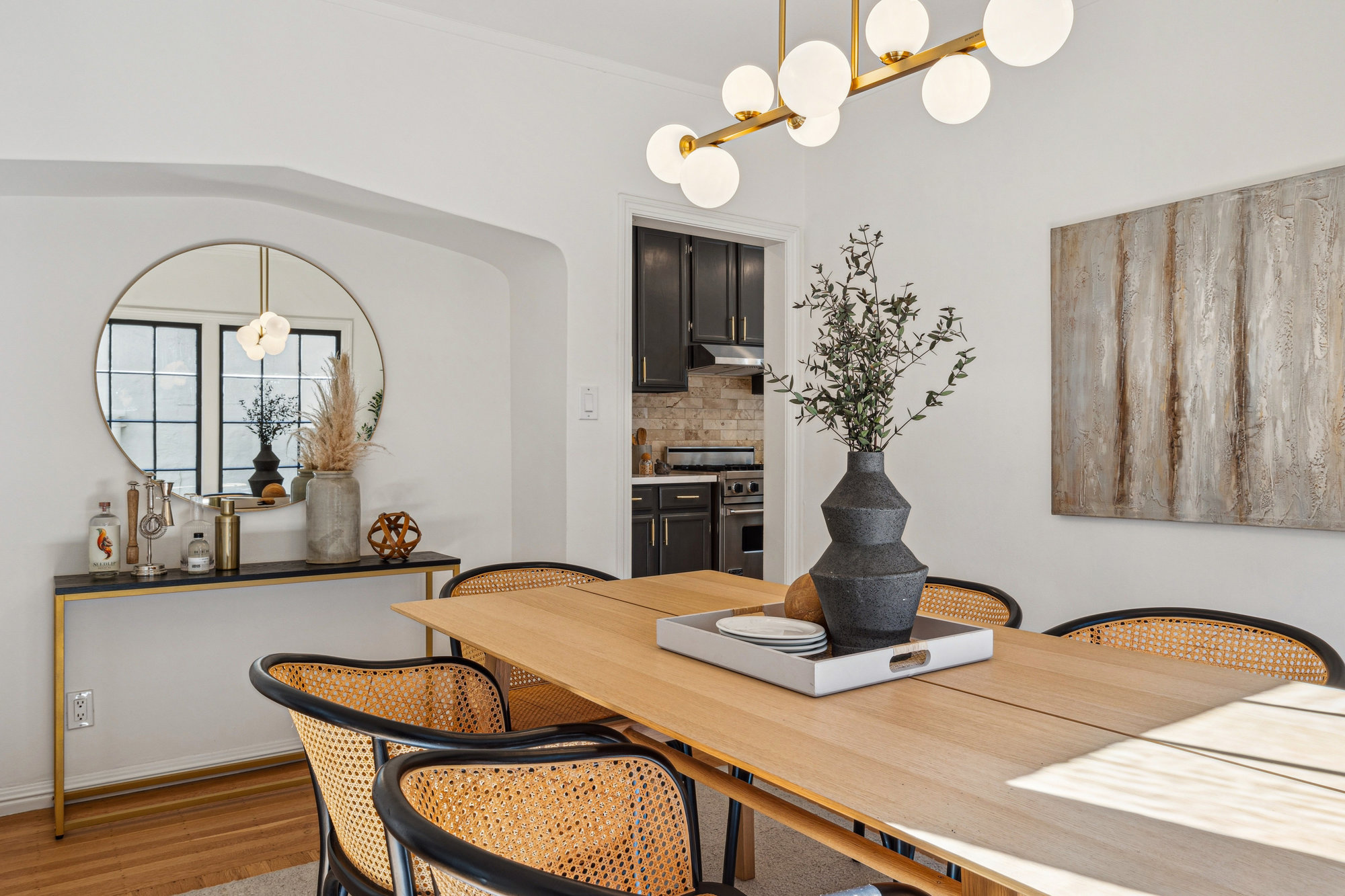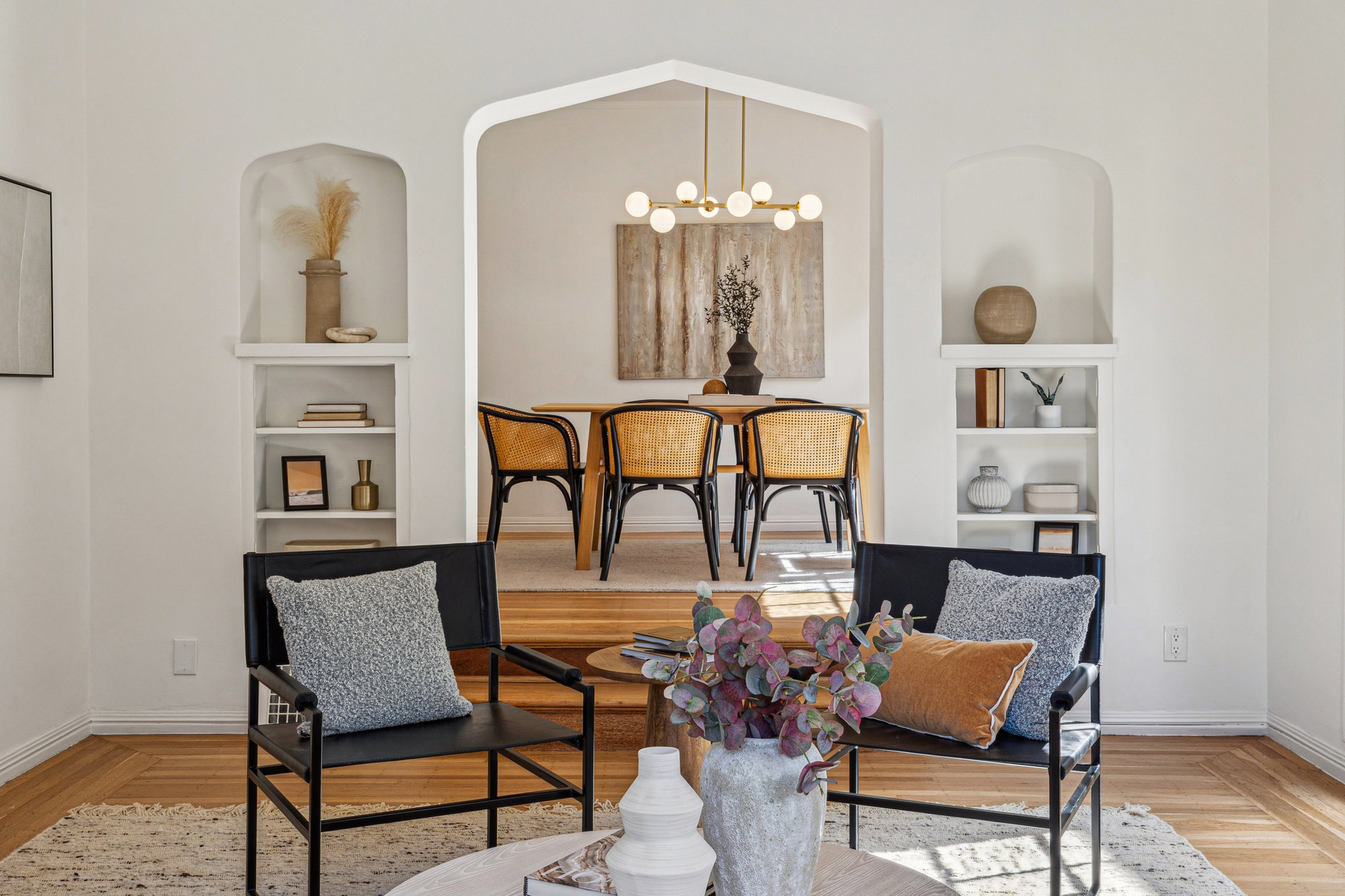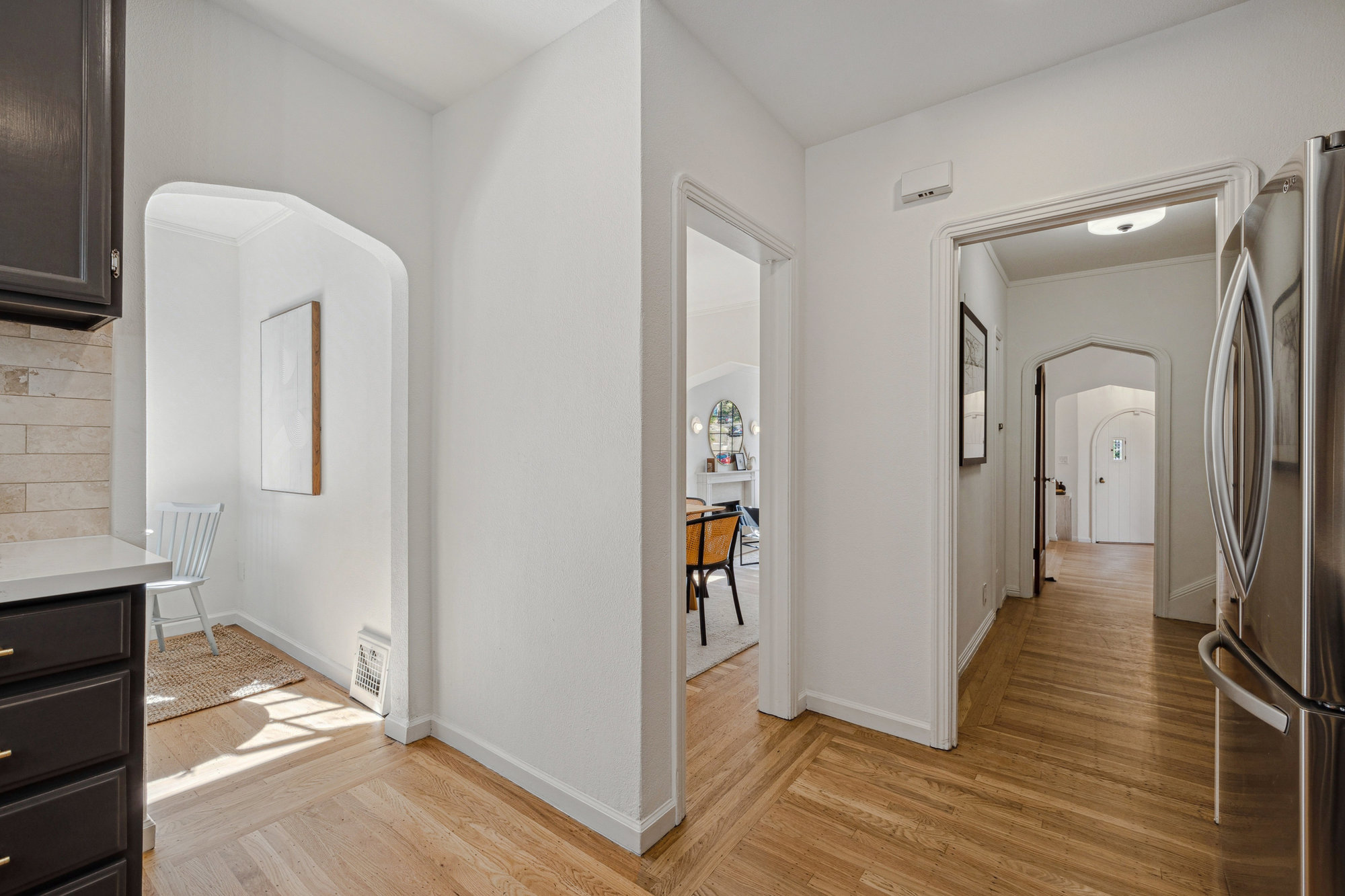 Crocker Highlands Fairy-Tale Tudor ideally exemplifying 1920’s period Storybook Architecture. Captivating features including leaded glass windows, parquet floors and a blend of vintage with modern throughout. Sunken living room with vaulted cathedral ceiling, stunning arched 32 pane window and wood burning fireplace. Cheerful dining room sitting adjacent to an impressive kitchen offering quartz counters, stainless appliances including Viking Range, artisan tile, backsplash, ample cabinetry, matte hardware and windows soothing the space in natural light. Breakfast nook off the kitchen with ladder leading to an alluring loft/flex space and pitched natural wood ceilings serving as elevated den or office. Three bedrooms, two designer baths and a lower level den space ideal for guests allow for easy living. Garage with storage, laundry and direct interior entrance complete this lovely home. Just blocks from the award winning elementary, the fabulous shops and restaurants of Lakeshore Ave and Park Blvd, and minutes from the Bay Bridge to San Francisco.