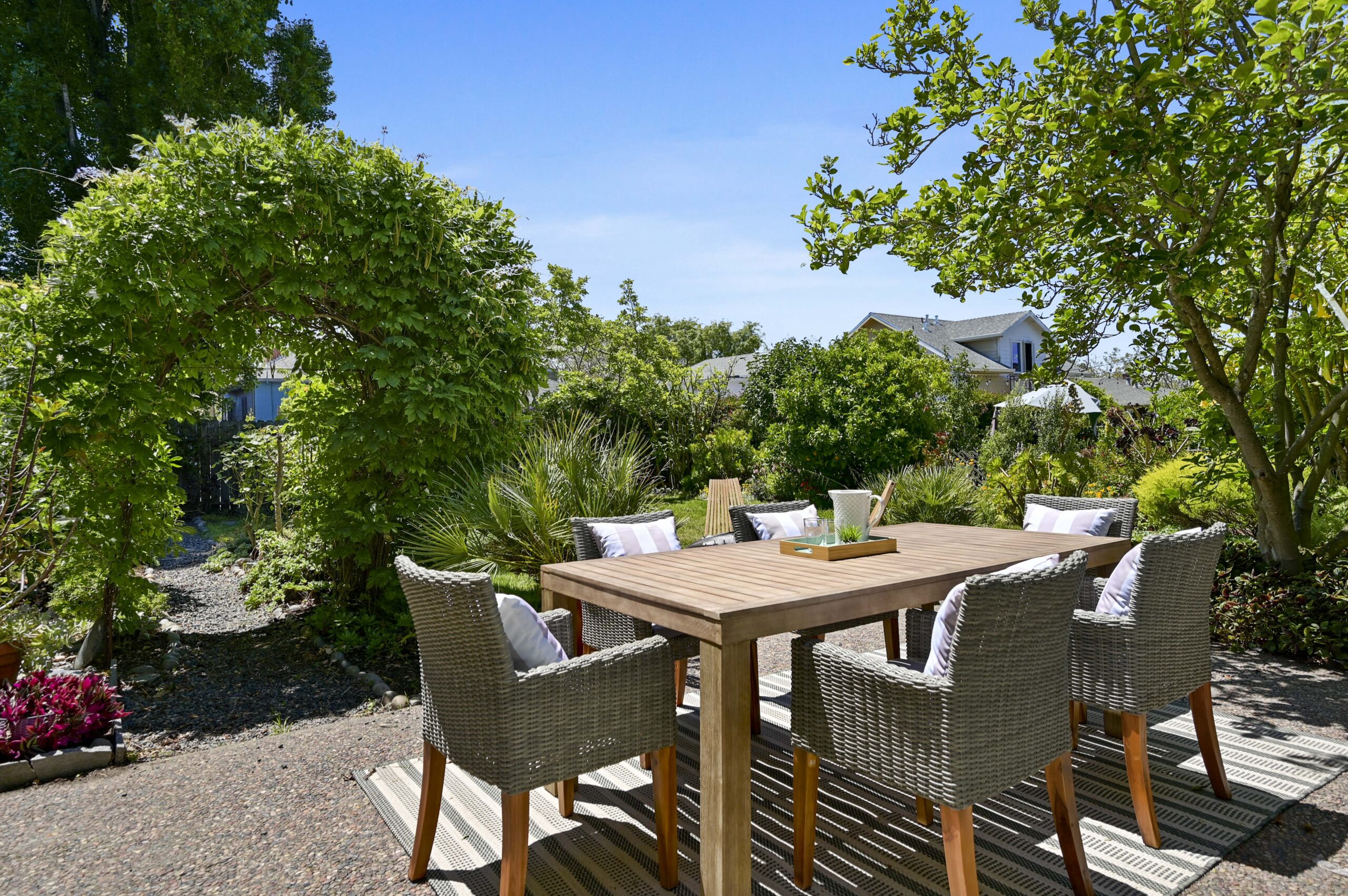Additional lower level bonus area with doors to the rear gardens and immense attic space allowing for potential expansion. Situated on an oversized level lot with mature gardens, paths, grassy areas for play, and decks, it’s ideal for garden parties, entertaining, and relaxation. Various updates include soundproofing, 3/4 foundation replacement, and seismic retrofitting. With a WalkScore.com rating of 92 (Walkers Paradise) and Bike Score of 99 (Bikers Paradise) it’s just minutes from Ashby BART, F Bus line direct to UC Berkeley and SF. Berkeley Bowl and blocks from Dover Park, the Tuesday Farmers Markets, 4th Street Retail area, and fabulous local shops, and restaurants.