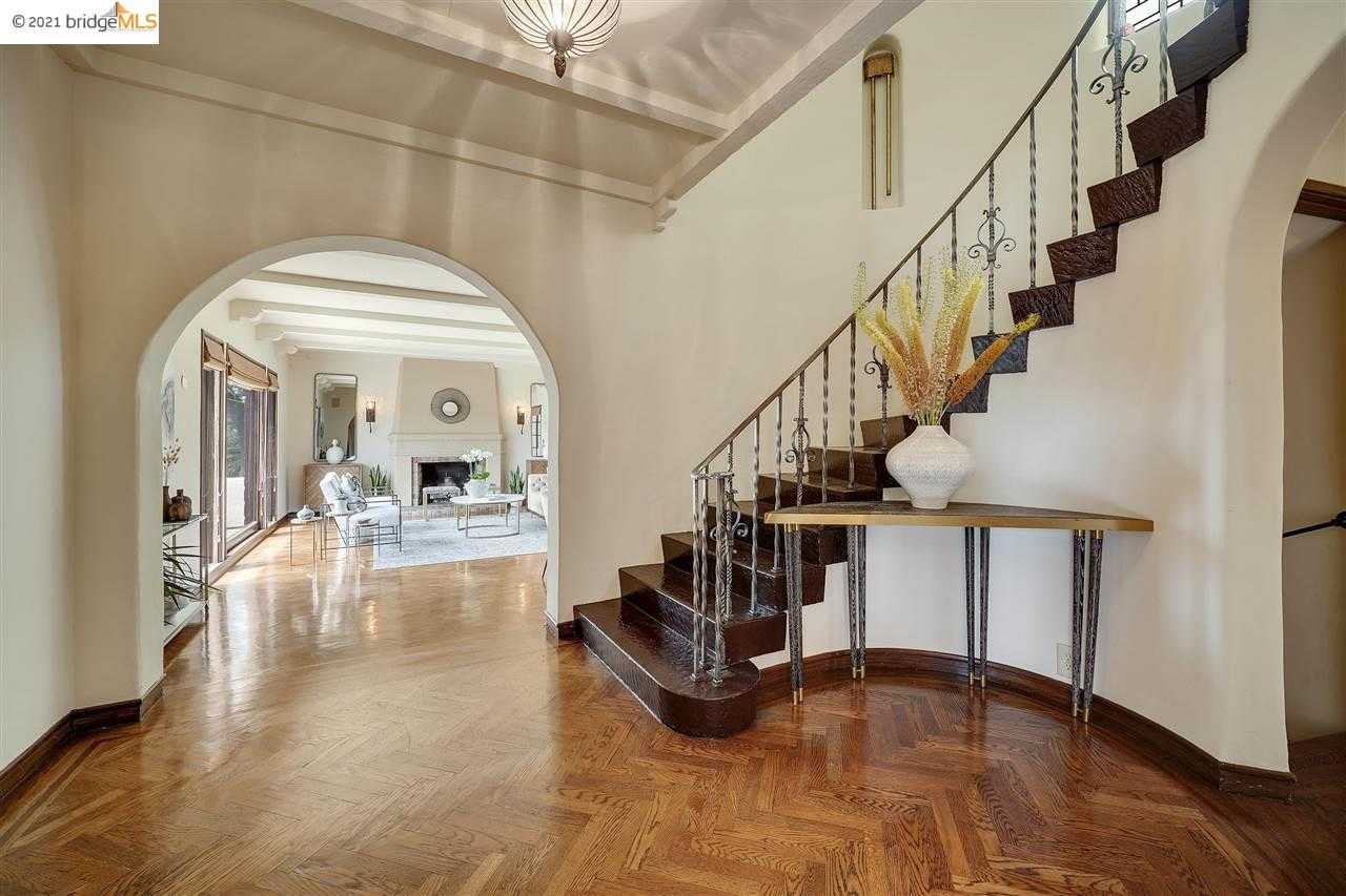 This stately Spanish Mediterranean home has only had 3 owners in its history. It was built in an era when home was meant to be a sanctuary, a retreat. That feeling of sanctuary is pervasive throughout the spacious rooms the moment you step through the impressive front door and look up at the curved stairwell. Each room is like a work of art. Notice the patterned hardwood floors, the warm & inviting fireplaces and the large windows. You’ll love the wrought iron railings and breezy balconies & views. Entertain effortlessly in the gracious living and dining rooms or take the party down to the large family room which opens to the rear patio and gardens through French doors. Upstairs there are three light filled bedrooms that open to balconies overlooking the hills and two baths. On the main floor there is an additional bedroom and bath. Prepare your favorite meals in the kitchen which is adjacent to a cozy breakfast room or grill on the deck. And a two-car garage makes parking easy!