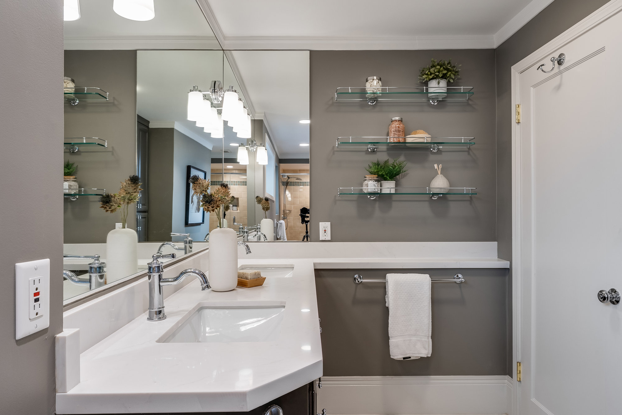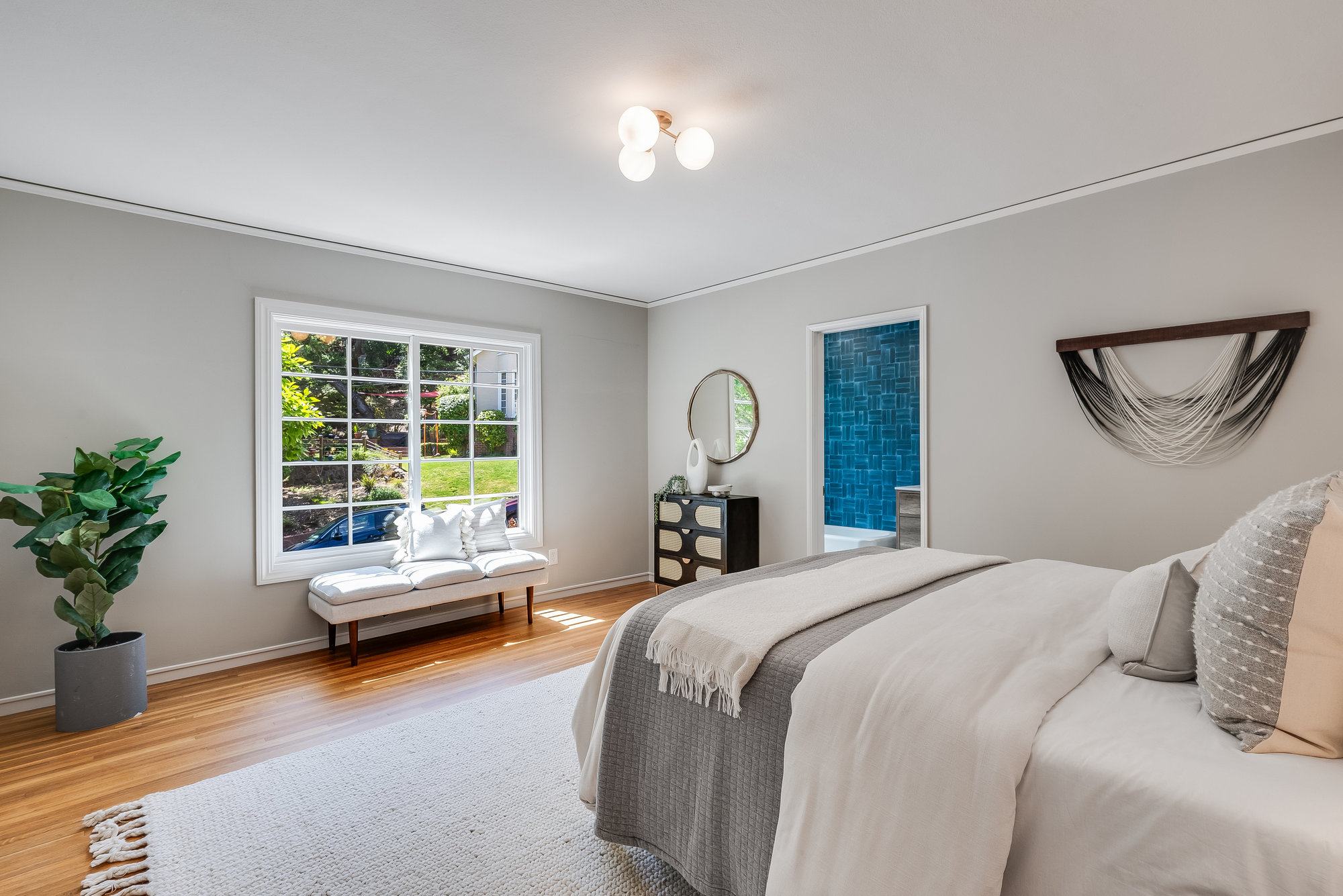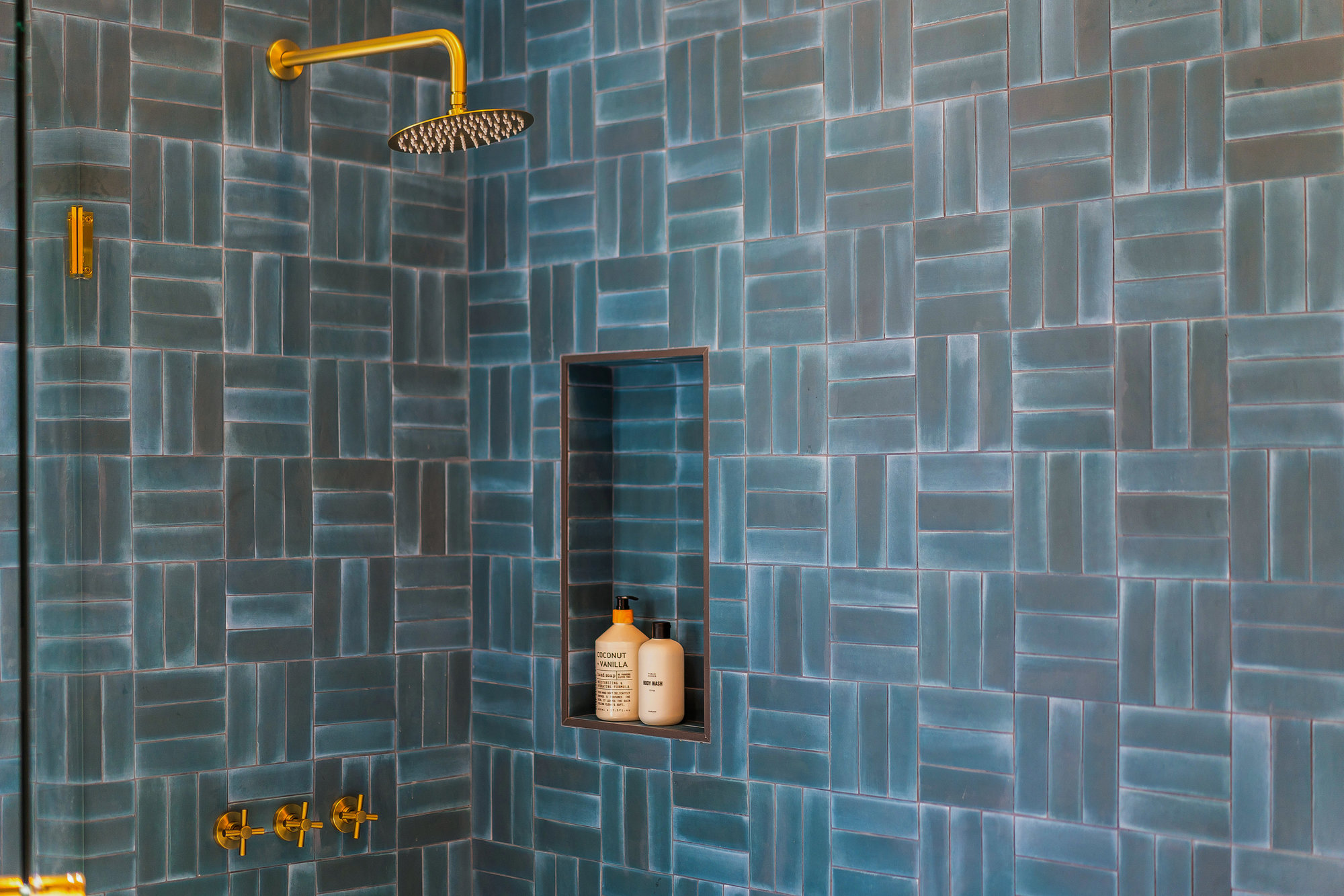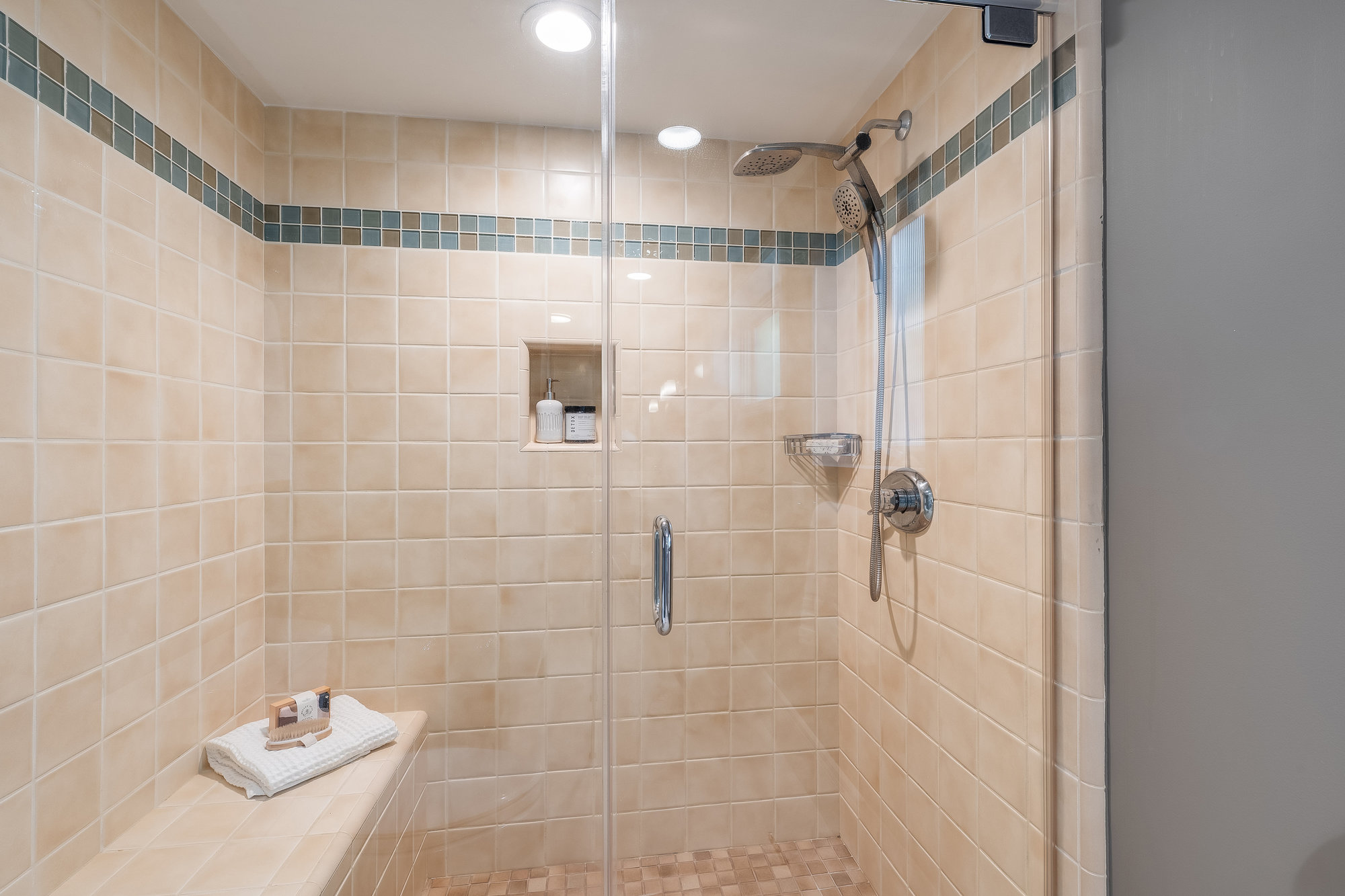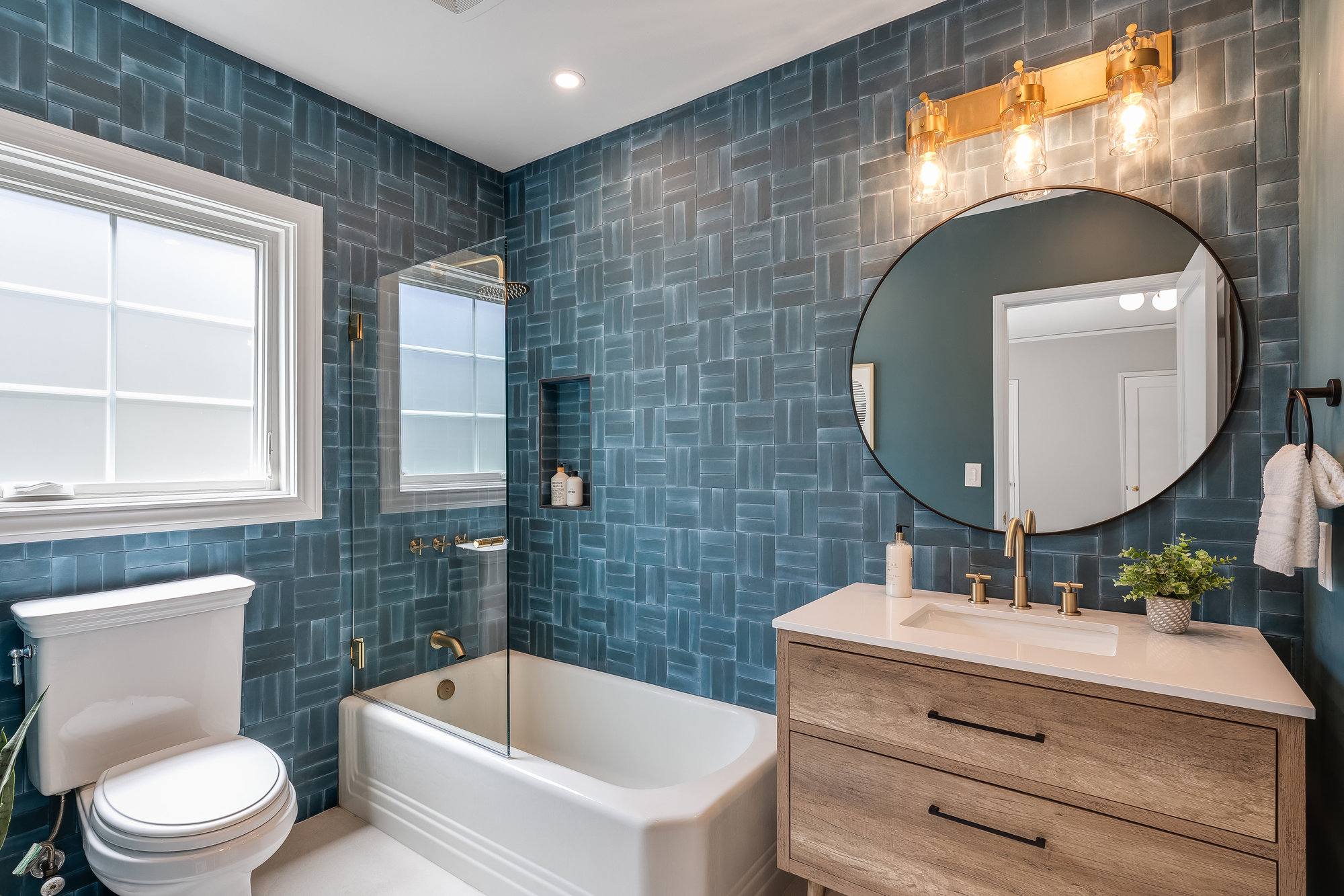 — Main-level ensuite w/ designer tile & matte gold fixtures