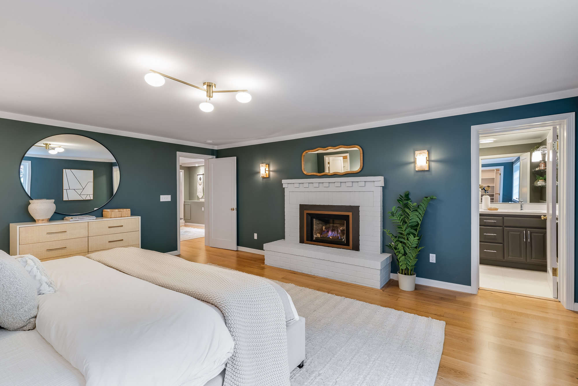 — Spacious primary suite w/ fireplace, 2 walk-in closets & full bath