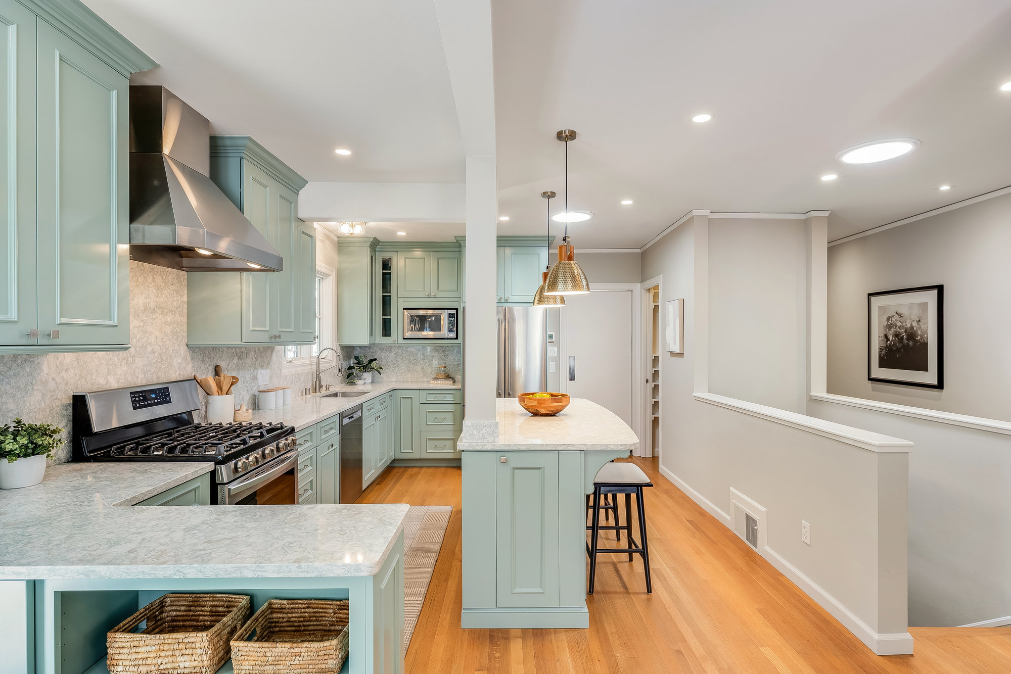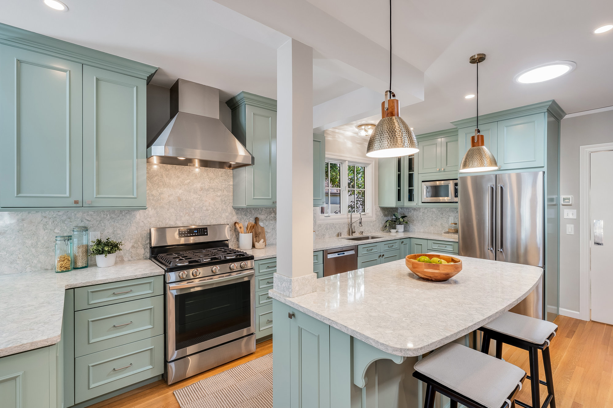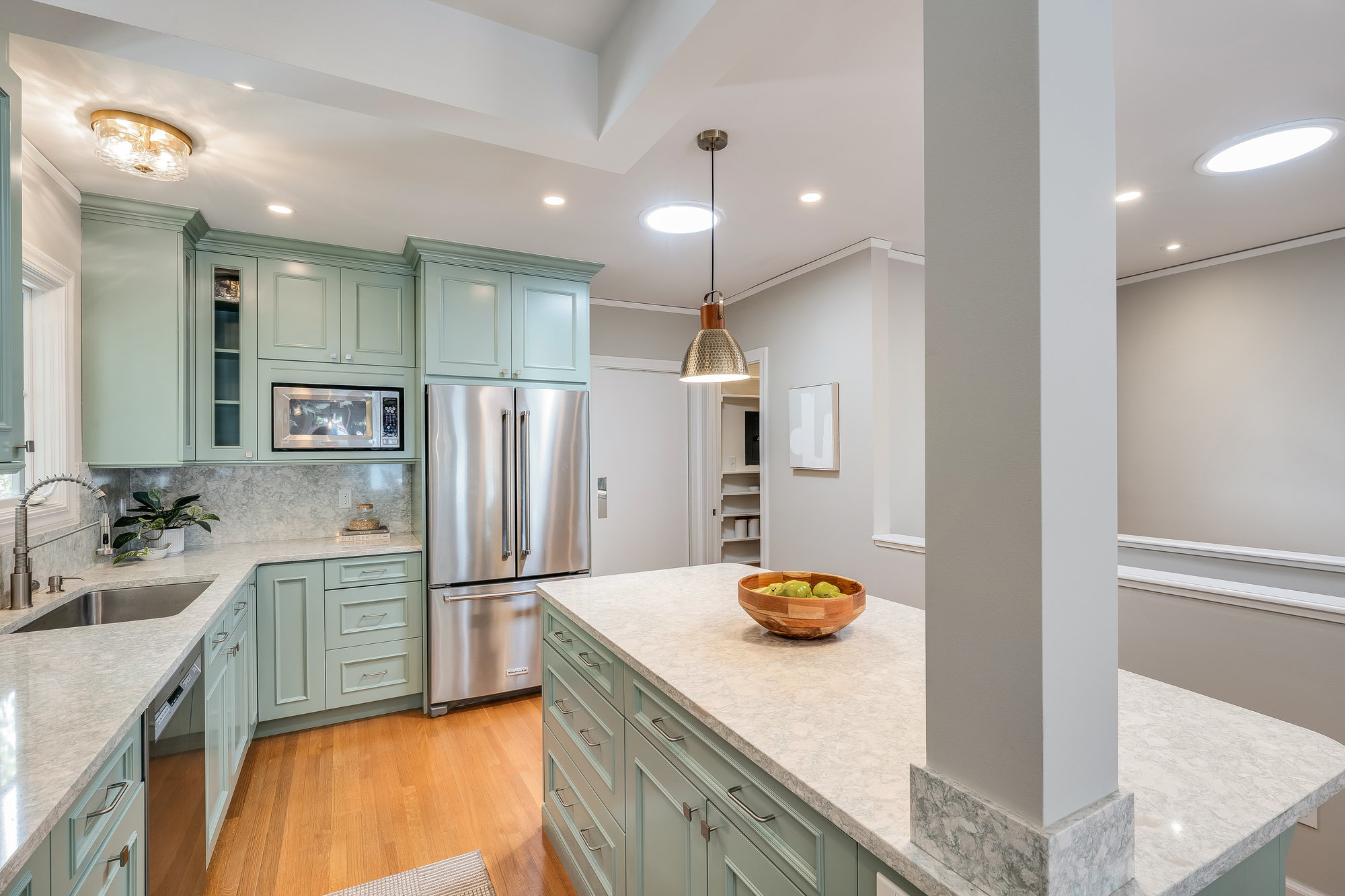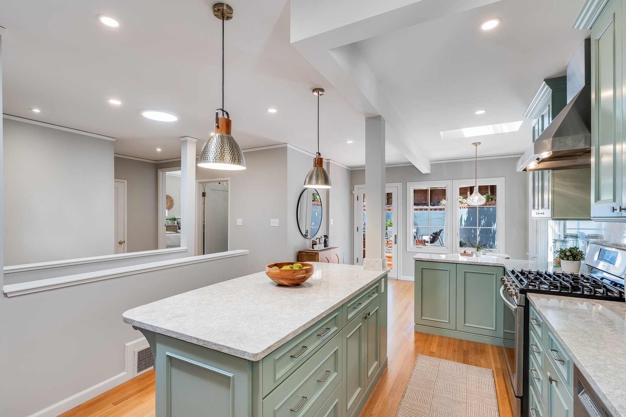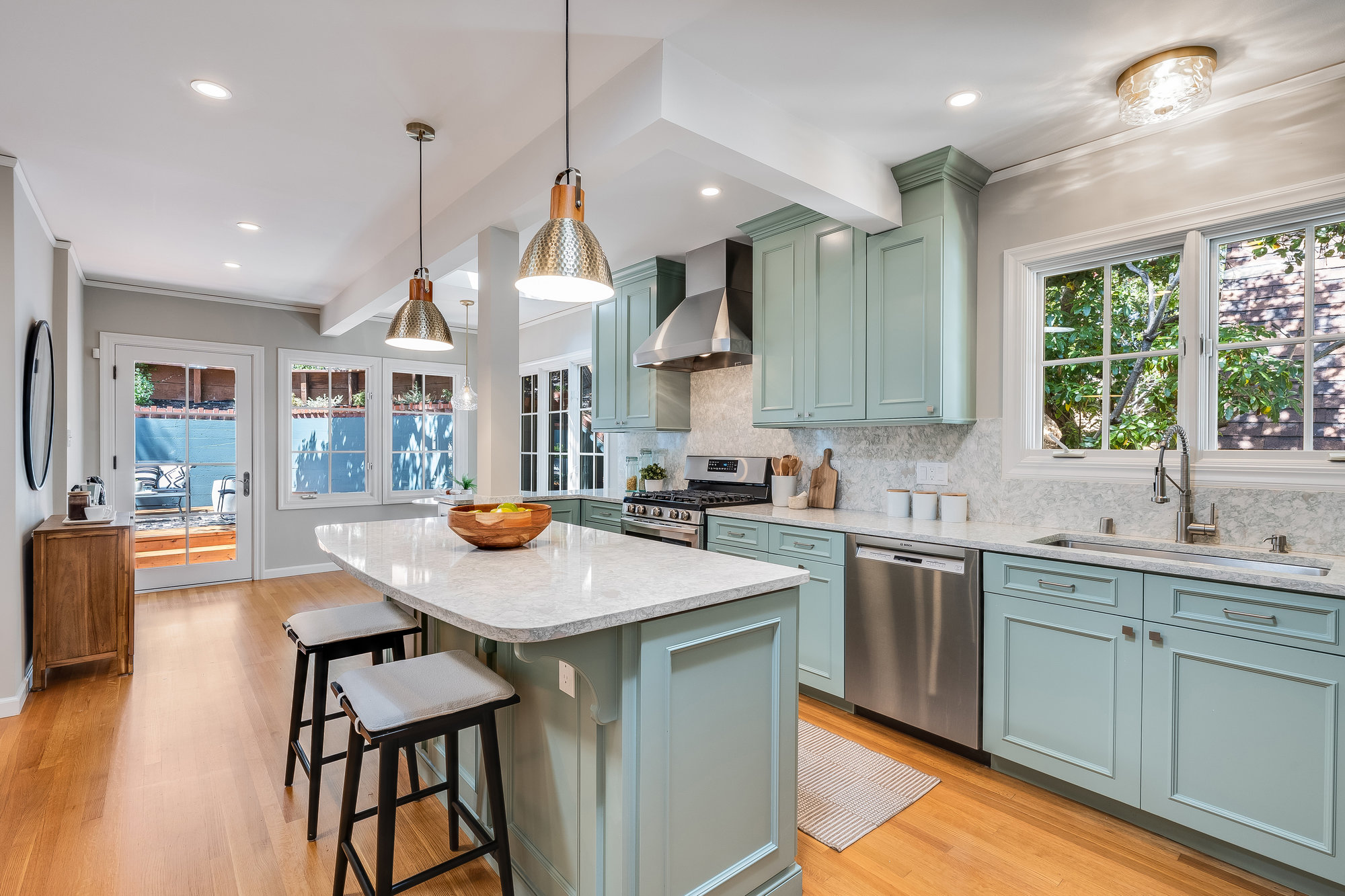 — Updated eat-in kitchen w/ designer accents & doors to patio
