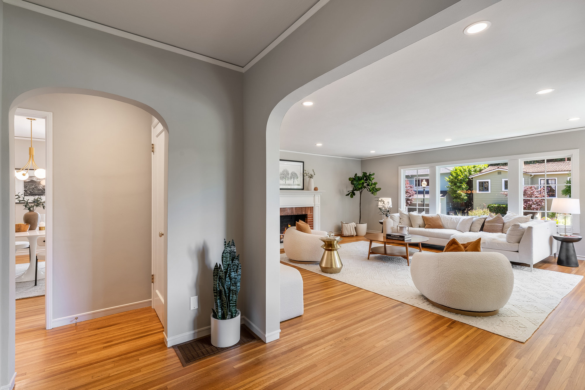 Downstairs, the spacious primary suite includes a gas burning fireplace, two walk-in closets, full bathroom, and tranquil garden views. A flexible den/media space and dedicated laundry room complete the layout. Additional amenities include an attached two-car garage, extra storage, and a separate workshop. As an added bonus, the home has 11 closets for ample storage. Just minutes from Crocker Highlands Elementary (via nearby neighborhood stairs), this location offers quick access to Lakeshore Avenue shops and dining, Glenview’s retail village, Lake Merritt, and the Saturday Farmers Market. Convenient for commuters, with easy connections to Hwy 580, Hwy 13, and the Bay Bridge. Classic character meets modern ease—designed for comfort, connection, and the rhythm of daily life.