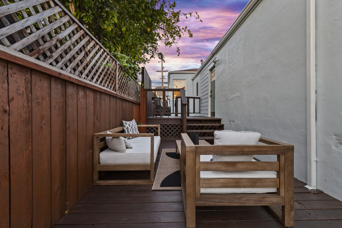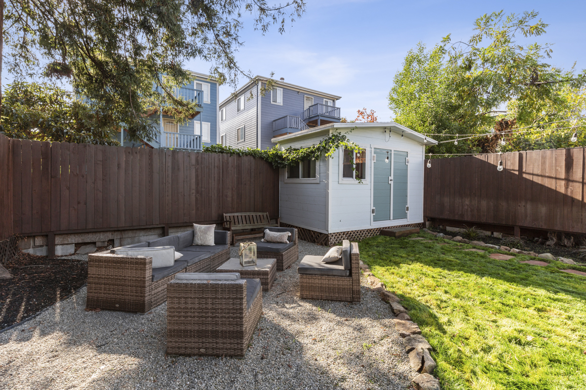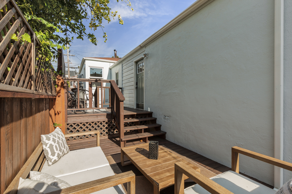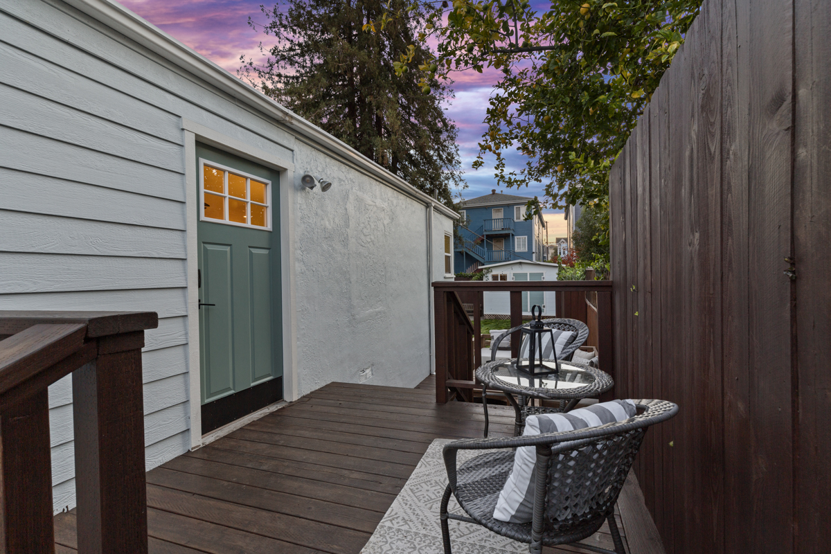 The back unit is a 468 square foot one bedroom, one bathroom unit with laminate flooring, refreshed kitchen with stainless steel appliances, updated bathroom, and updated lighting throughout! Both units have private patio spaces with spacious brand new wood decking. The backyard is large and level with plenty of room to play and garden! One car off-street parking for each unit. The backyard has a finished shed that could work perfectly as a home office or additional storage! The property was used successfully as a furnished rental by the current owner.