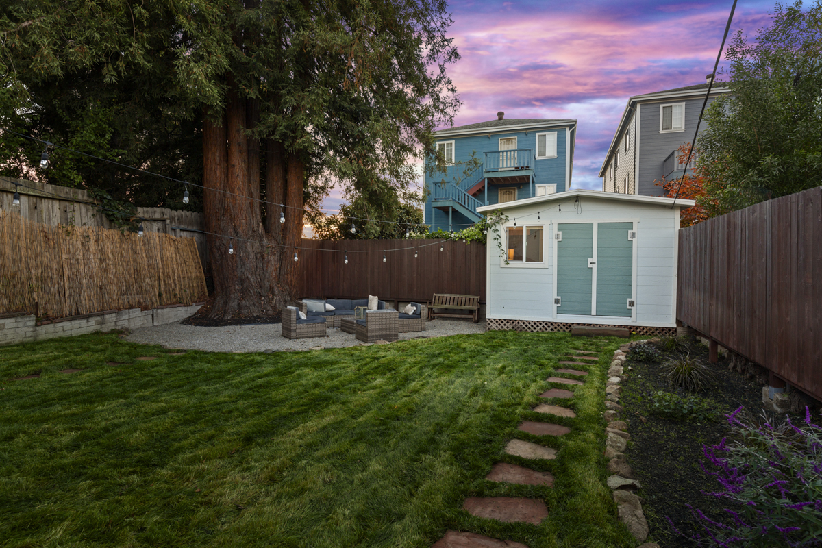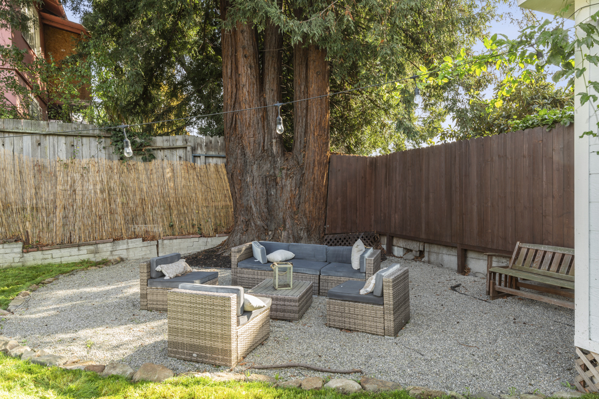 *Large shared backyard with a huge lawn, garden, and big Redwood tree!