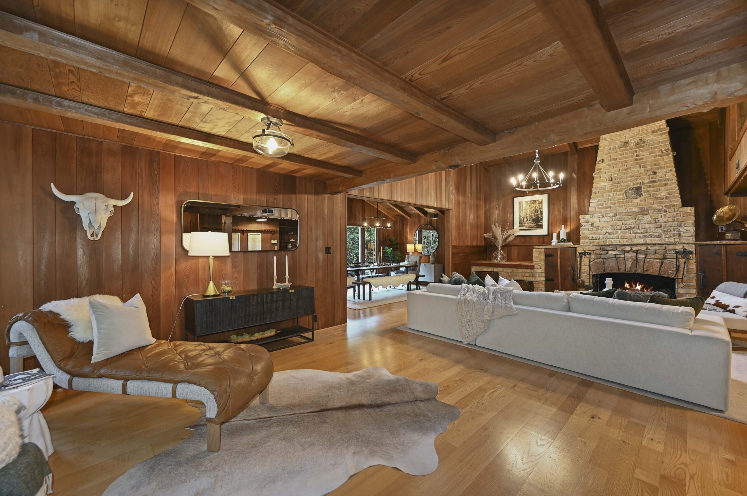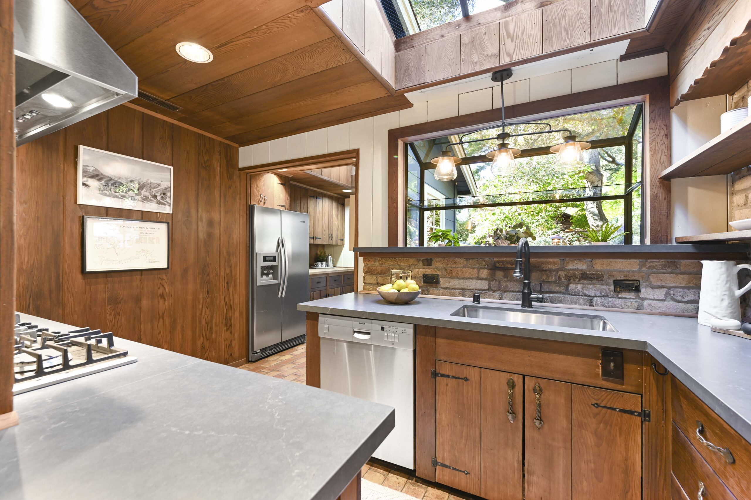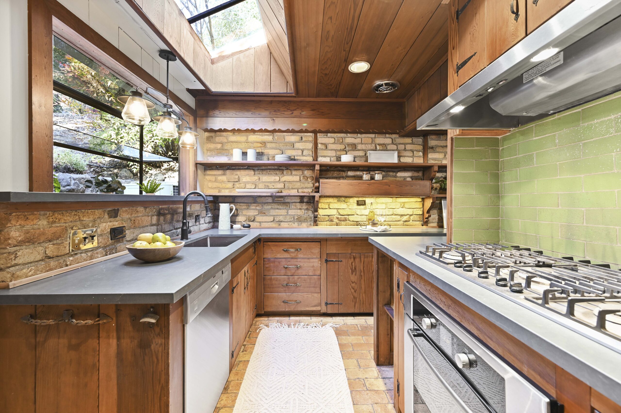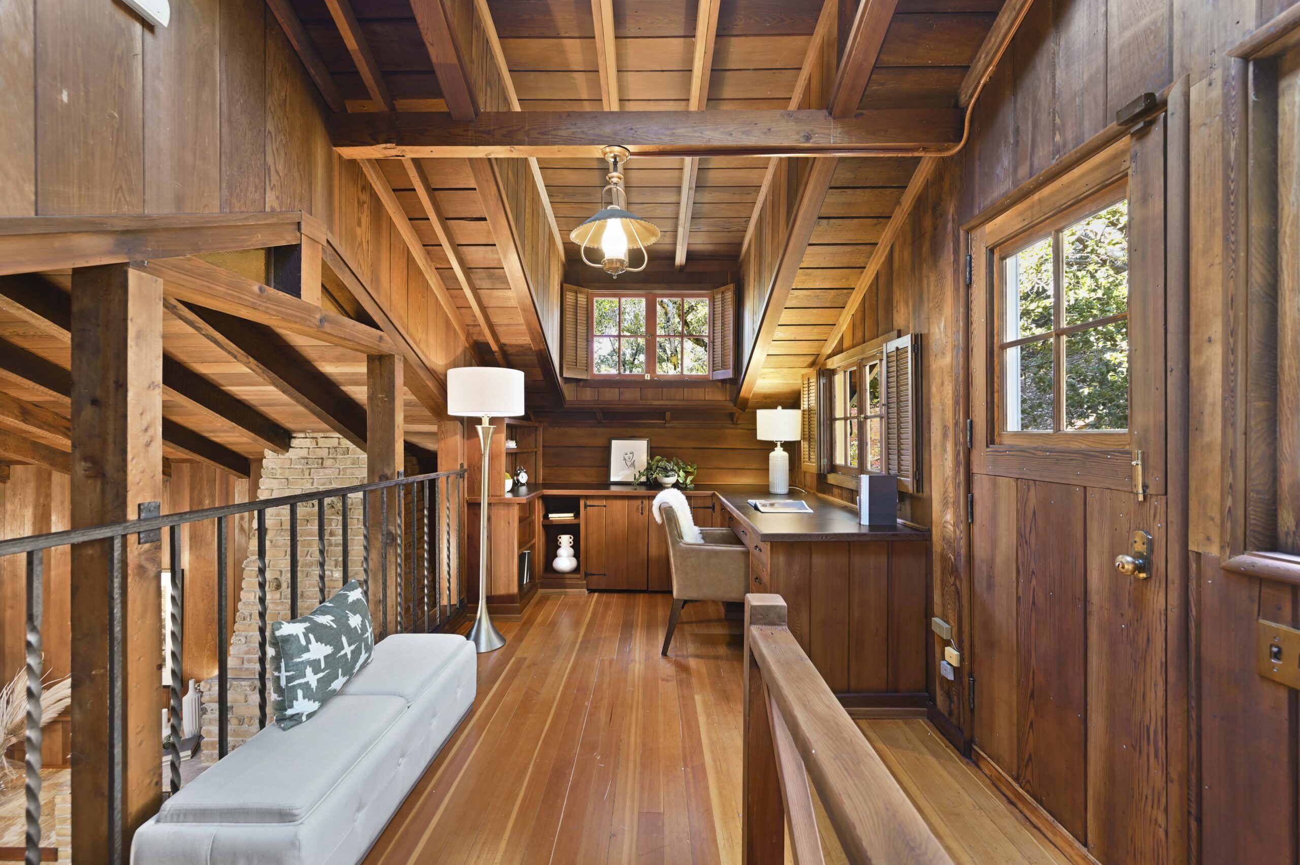 SOLD: Incredible lodge-like abode on a rare 1.2-acre wooded oasis located just under a mile from Montclair Village. Meandering paths, a year-round stream winding through redwoods and Japanese maples, fruit and ornamental trees as well as a multitude of diverse flora and fauna promise to offer daily delights within this setting of peaceful seclusion and exceptional privacy. Upon entering the home one is captivated by the rustic stone and brick fireplace of truly epic proportions anchoring the home’s great room, dining area, and study. Framed by vaulted raw wood ceilings and hand-hewn posts and beams, this bespoke home guarantees to invoke the finest of emotions, memories, and inspiration.
