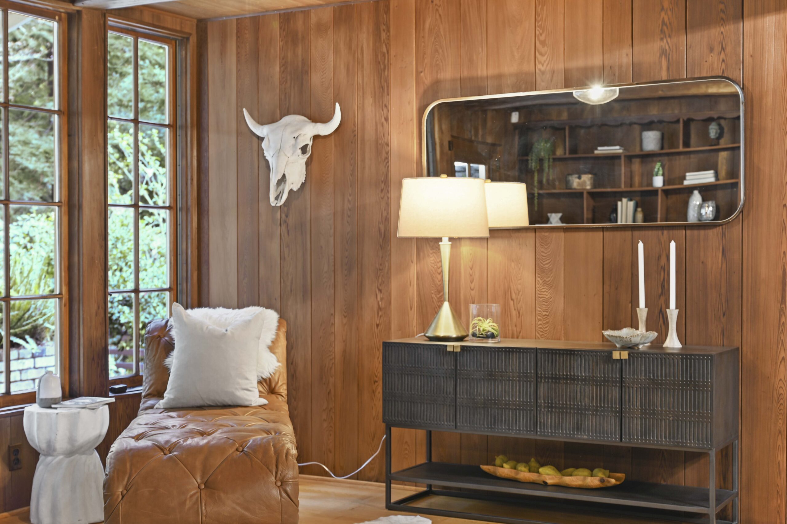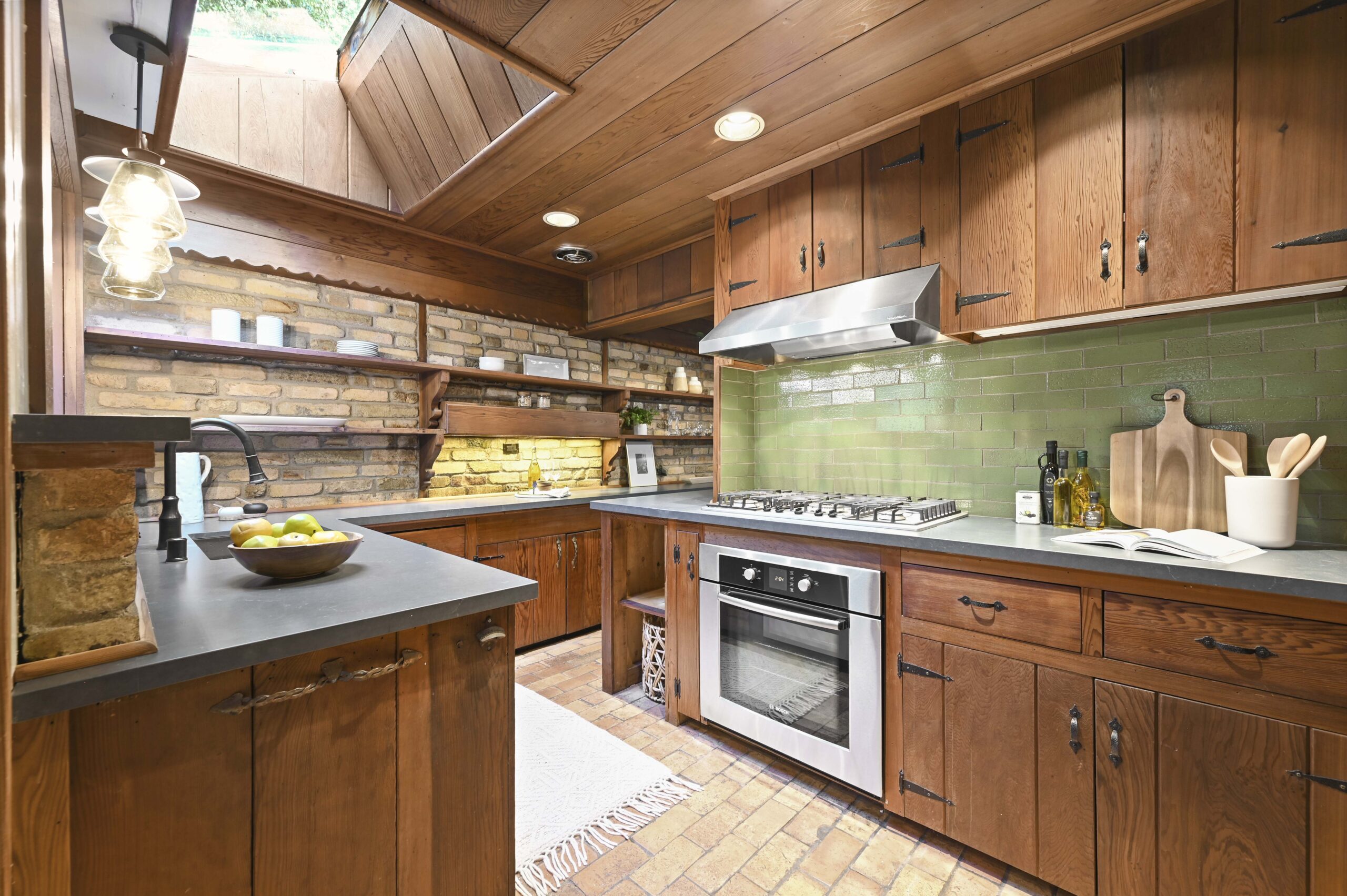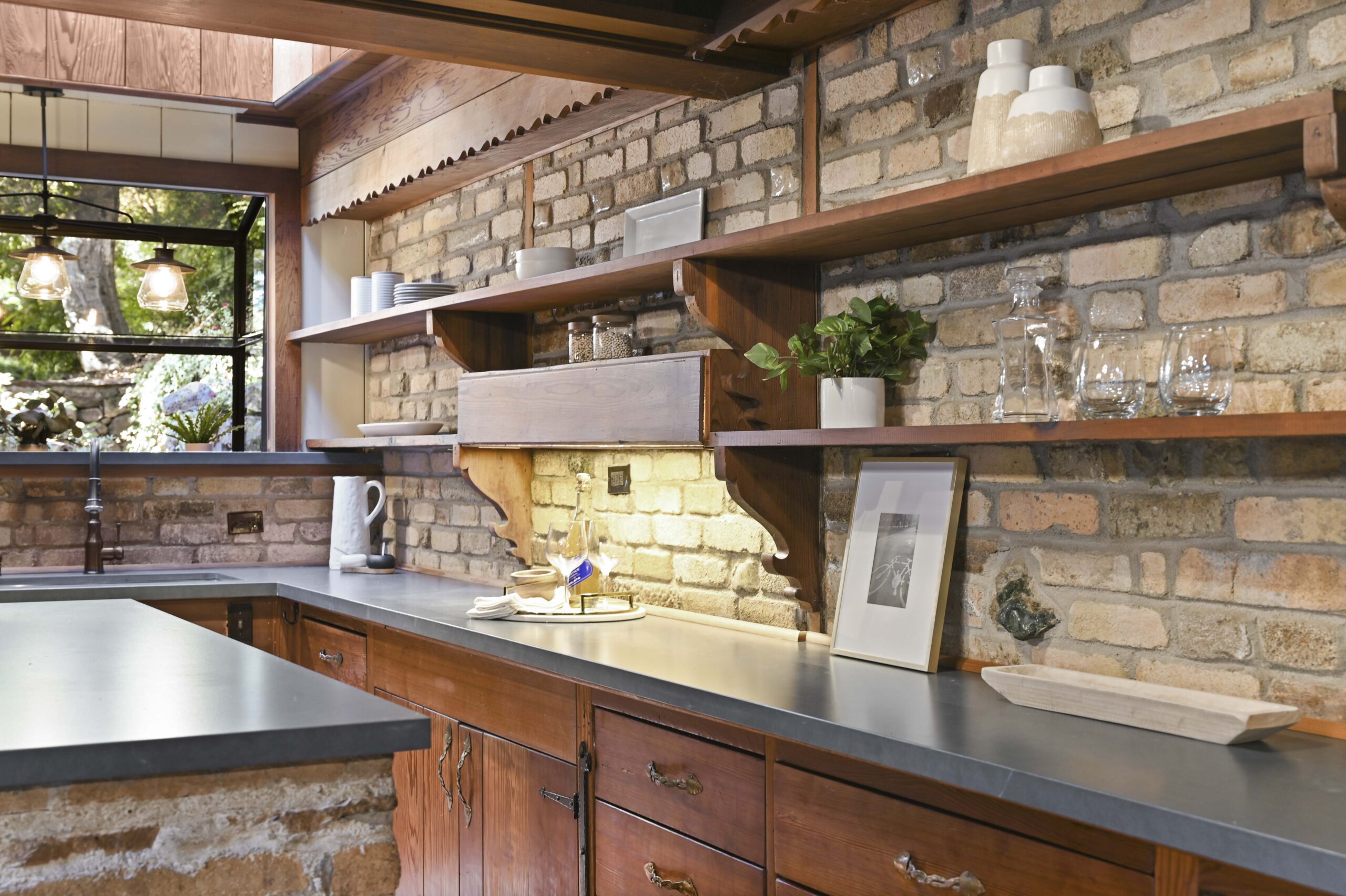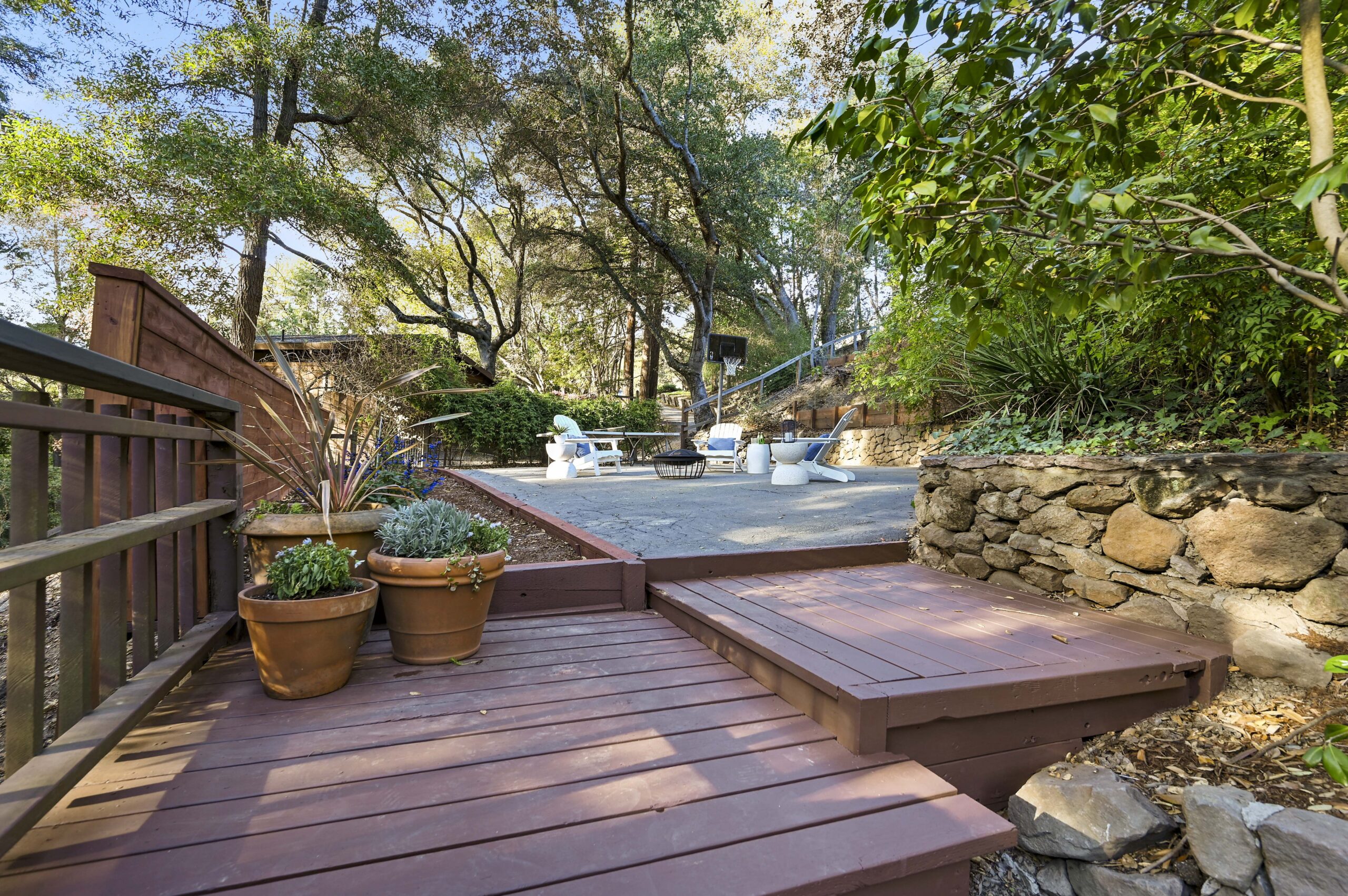 SOLD: Incredible lodge-like abode on a rare 1.2-acre wooded oasis located just under a mile from Montclair Village. Meandering paths, a year-round stream winding through redwoods and Japanese maples, fruit and ornamental trees as well as a multitude of diverse flora and fauna promise to offer daily delights within this setting of peaceful seclusion and exceptional privacy. Upon entering the home one is captivated by the rustic stone and brick fireplace of truly epic proportions anchoring the home’s great room, dining area, and study. Framed by vaulted raw wood ceilings and hand-hewn posts and beams, this bespoke home guarantees to invoke the finest of emotions, memories, and inspiration.