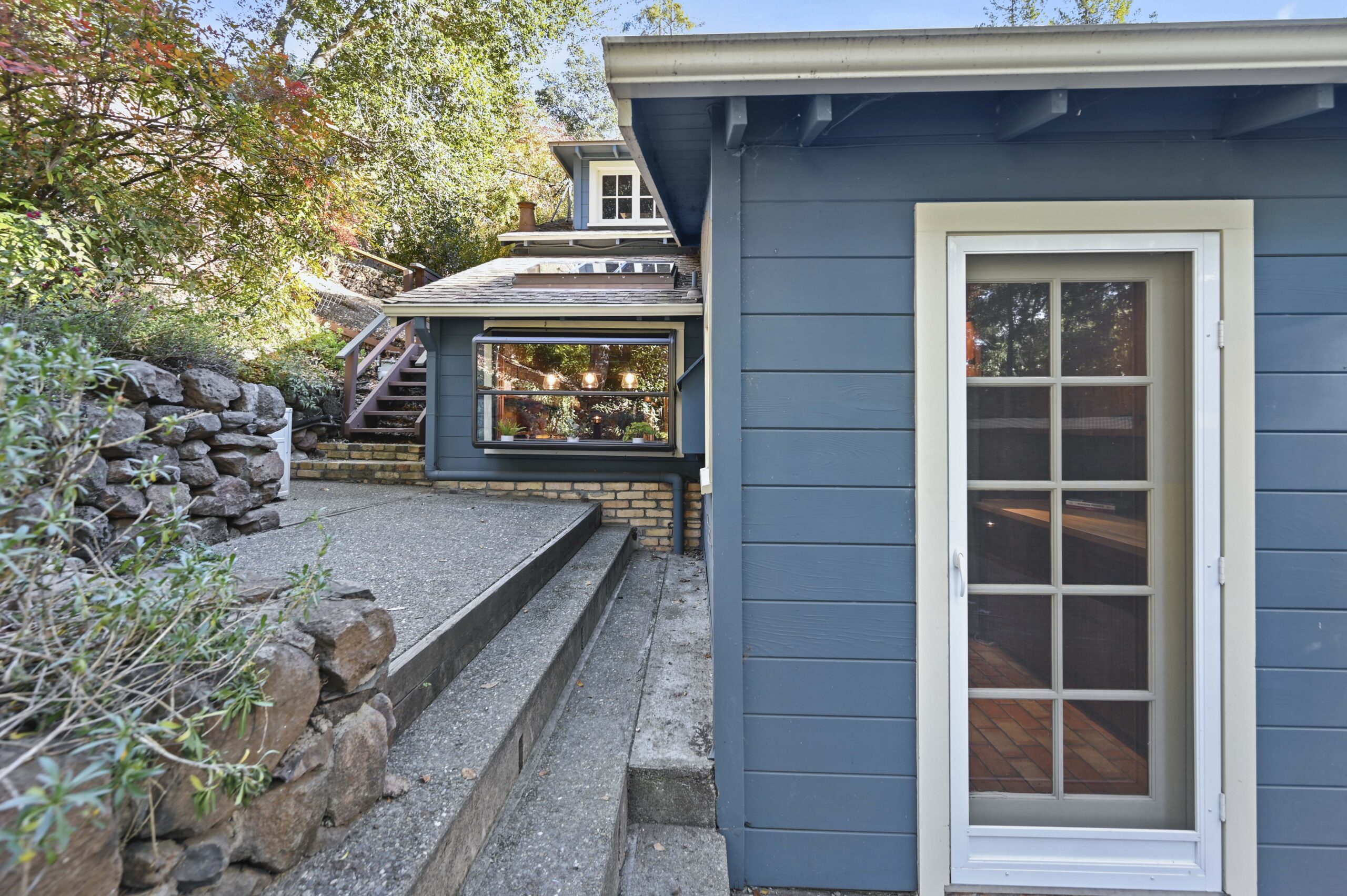 Surrounded by patios, decks, and gardens, the home also offers a relaxing, secluded hot tub tucked under a glorious Japanese maple as well as a sports court with a basketball hoop for play. The two-car garage has been outfitted with updated electrical perfect for a shop and just steps away is an additional hidden spacious storage shed that could almost serve as an artist’s retreat. A few of the upgrades made to the home include a new water heater, UV disinfectant added to the furnace, wired ethernet with high-speed fiber optic cable, insulated attic and crawl space, newer roof, extensive irrigation system, terraced stone walls, french drain along a portion of the house, and central AC to keep the home cool on hot summer days.