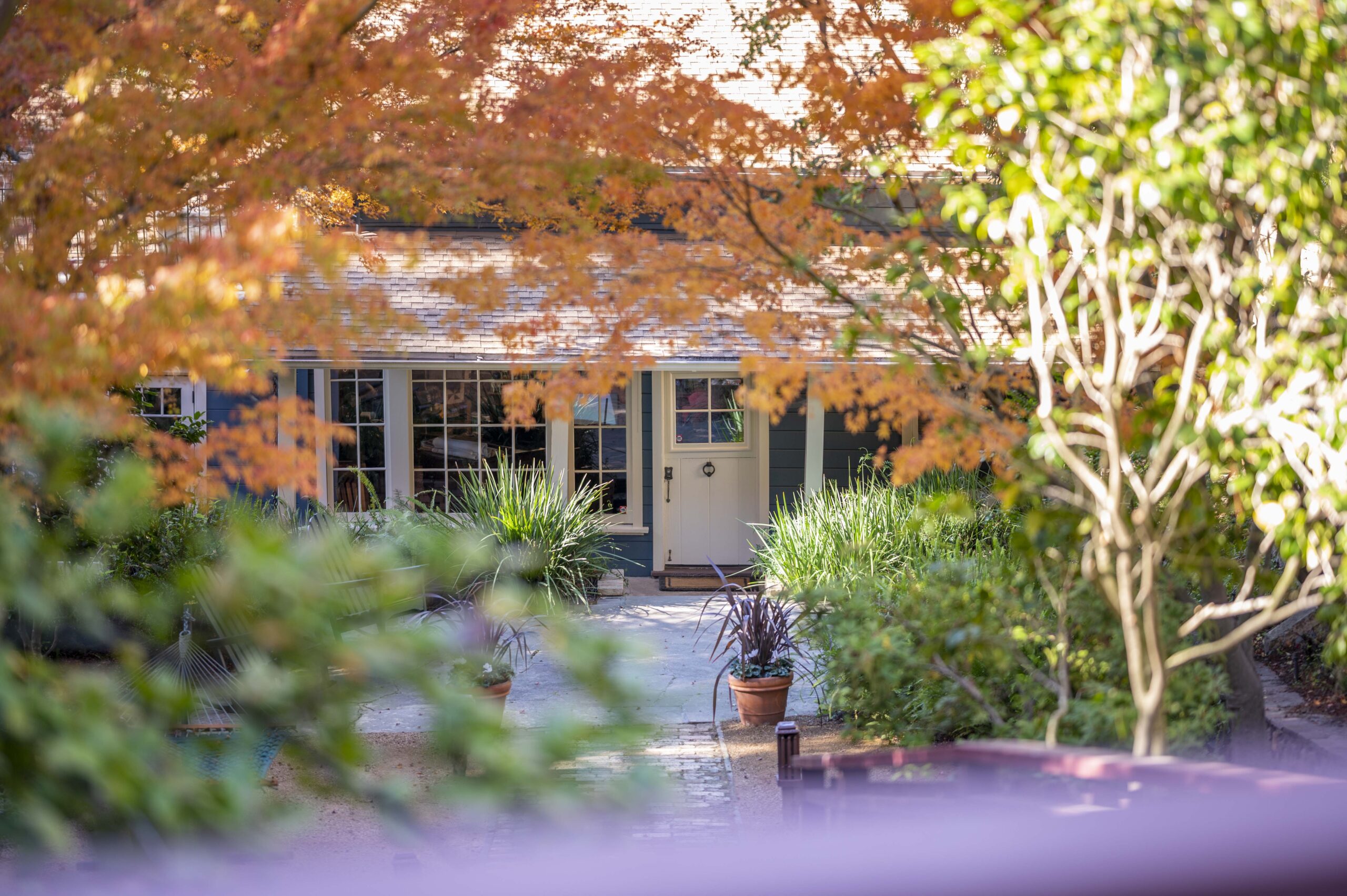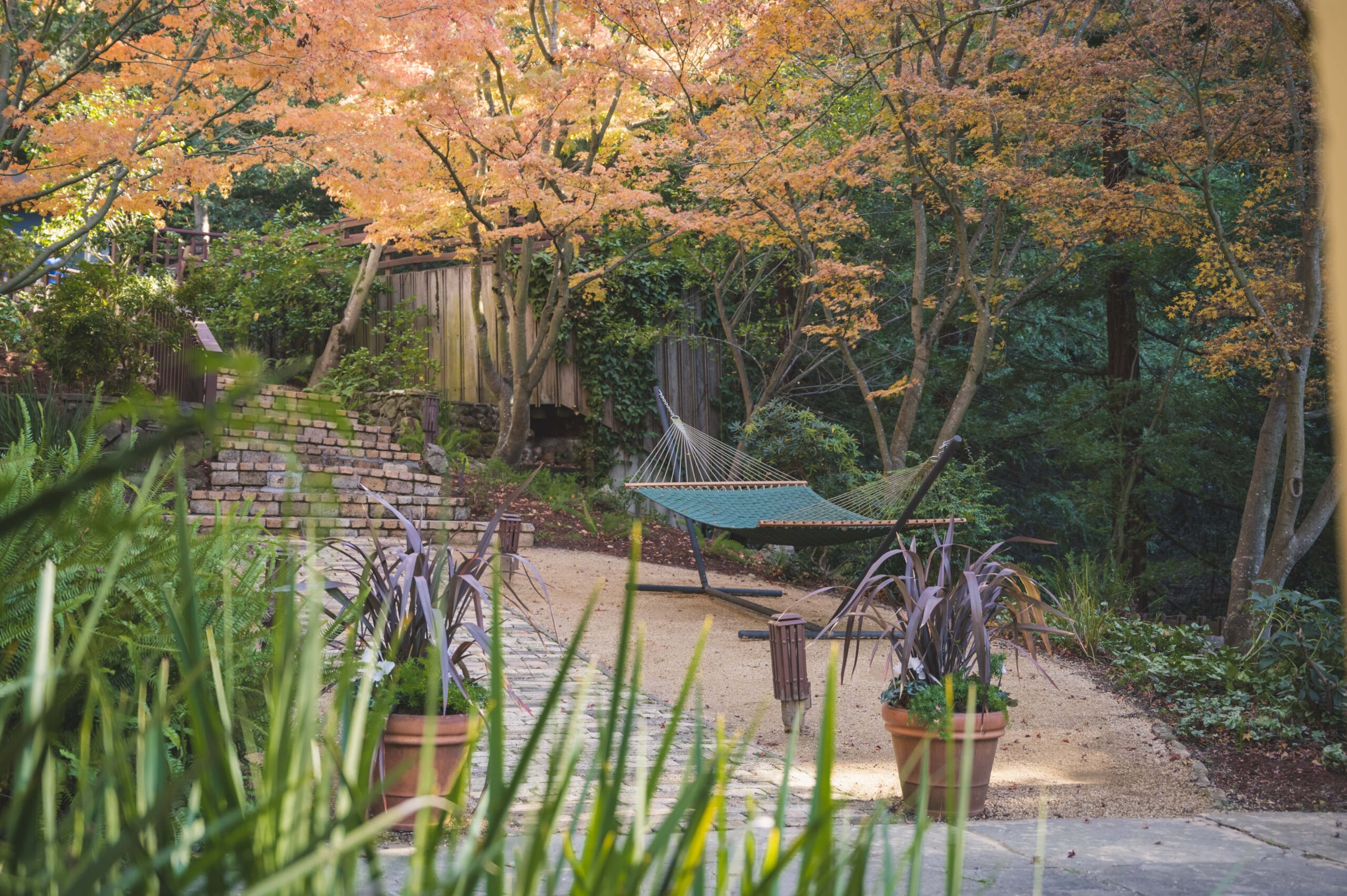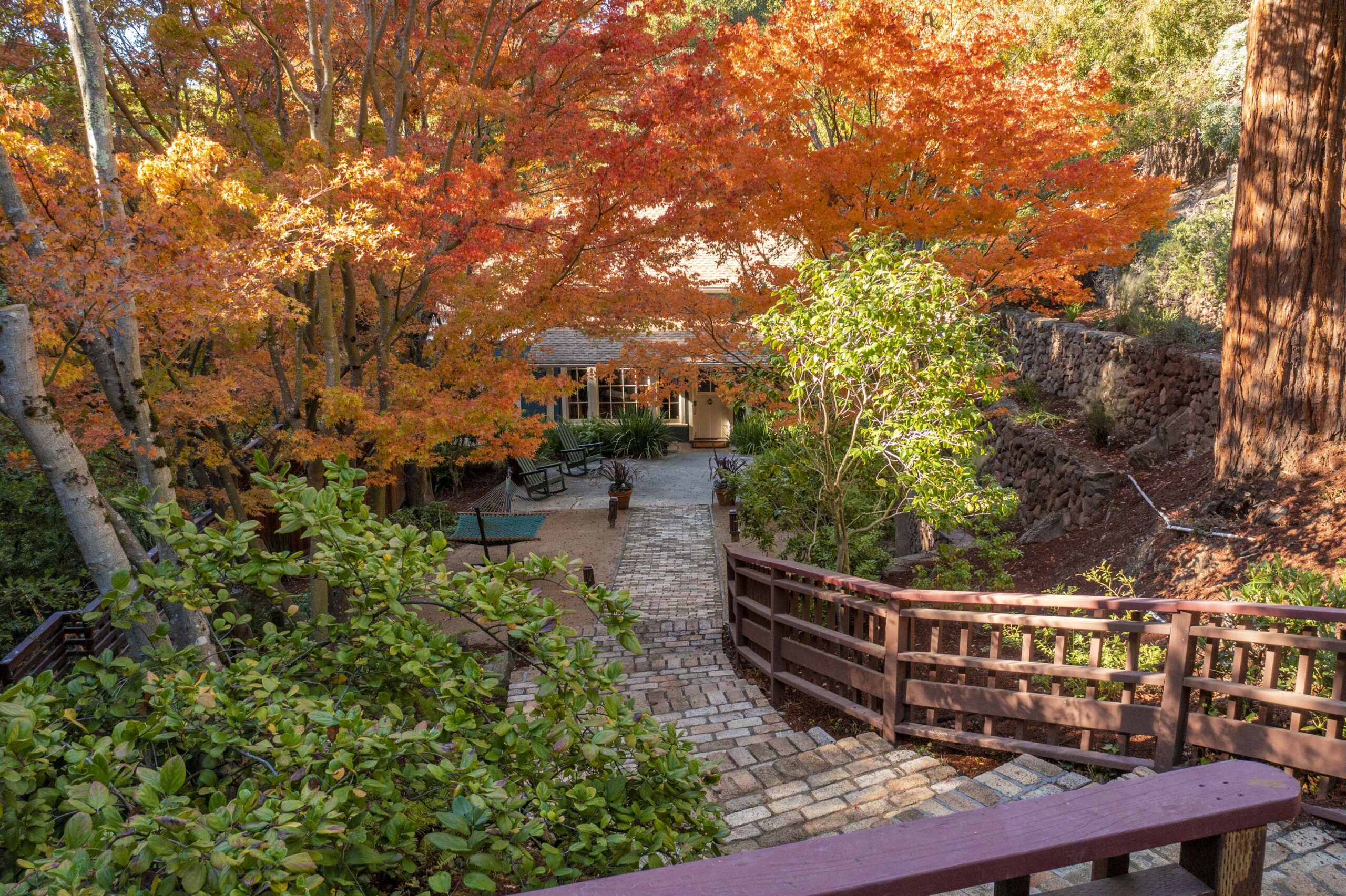The property offers so many unique settings to soak in the surrounding natural settings: it is a joy to sit under the covered front porch on a rainy day or stay warm and cozy near the fireplace in the glowing redwood great room, soak up the sun on the upper deck, or meditate by the creek surrounded by redwoods. Every season offers unique beauty with flowering fruit trees in the spring, verdant summer shade, spectacular fall color, and winter waterfalls along the creek.