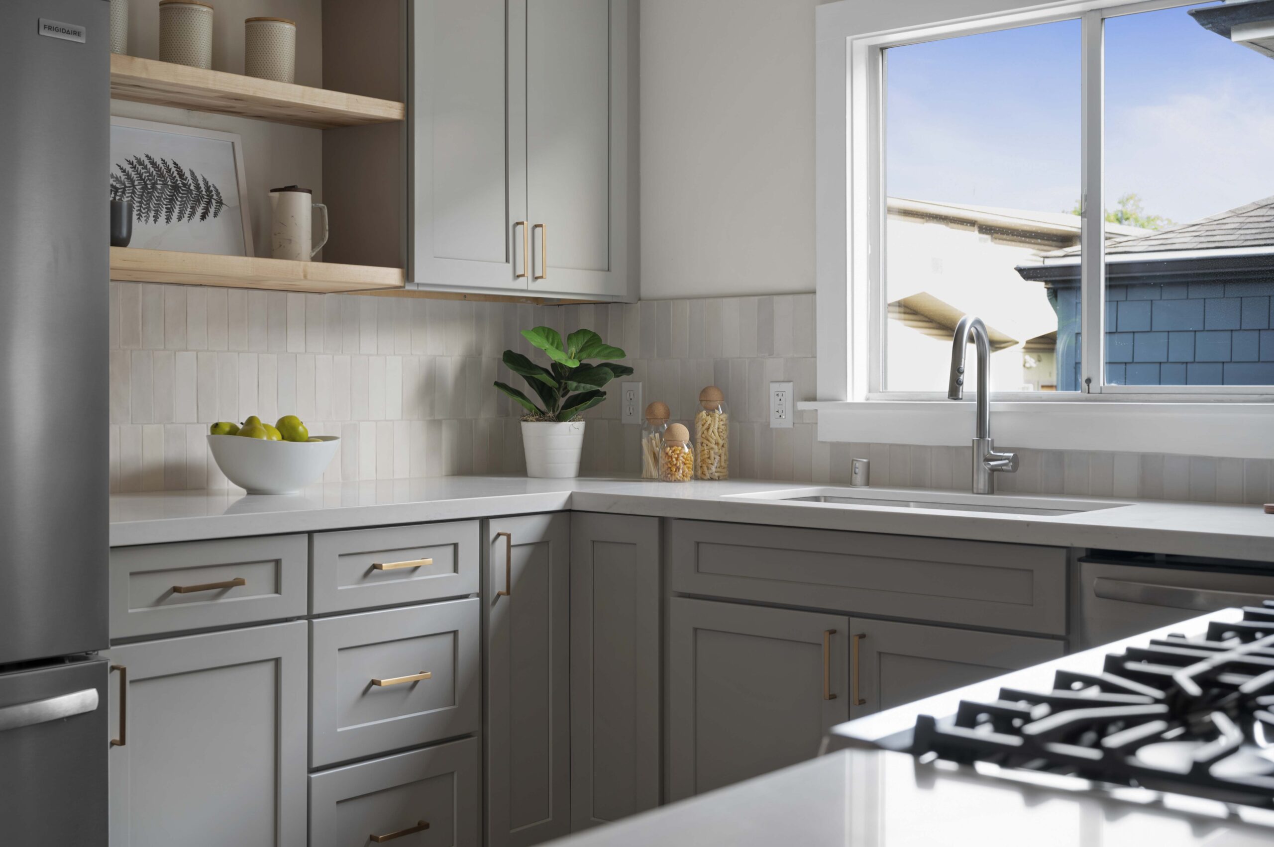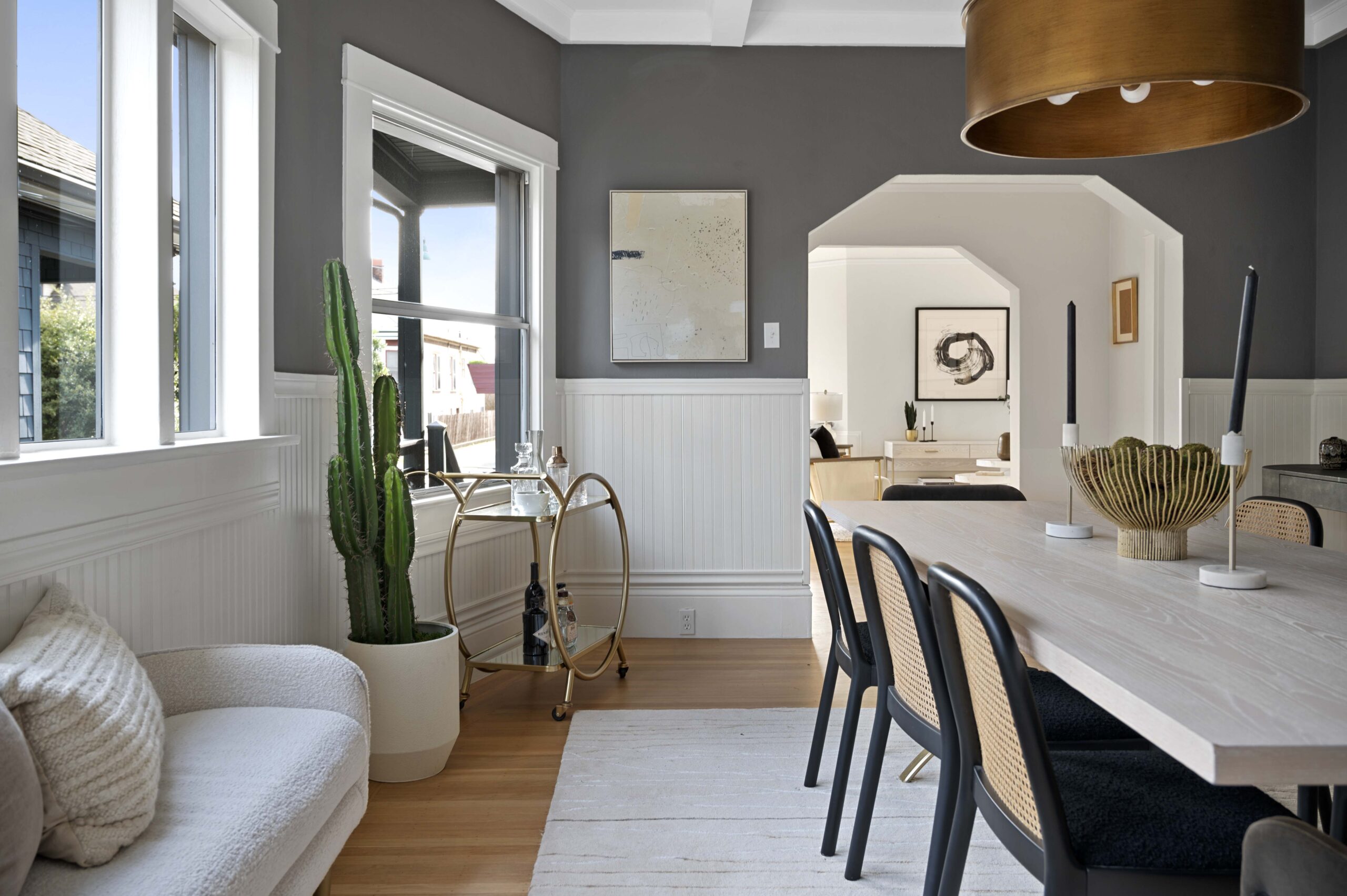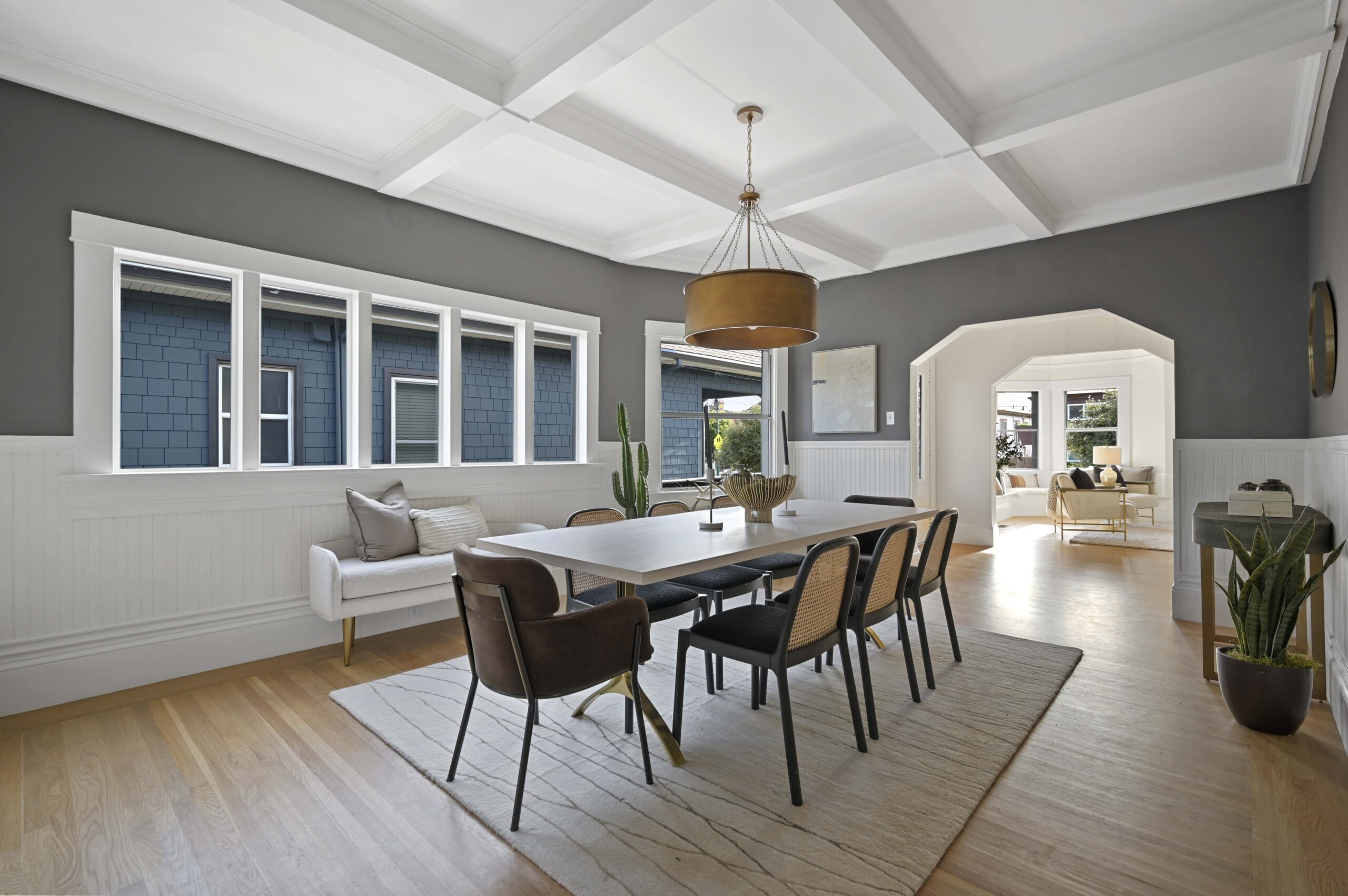 SOLD: Charming 1905 Bungalow in the heart of Alameda’s flourishing East End. Bespoke finishes include fresh kitchen and baths combined with vintage details, decorative moldings, and original hardwood floors. Spacious formal living room with elegant plaster coved ceilings and large picture windows allowing for splendid natural light. Dining room with original box-beamed ceilings and an elegant built-in. Freshly updated kitchen with custom tile floors, stone counters, designer subway tile backsplash, and new stainless appliances. En-suite bedroom with floating vanity, designer bath surrounds, and new flooring. Spacious hall bathroom with new vanity, designer lighting, and walk-in shower.