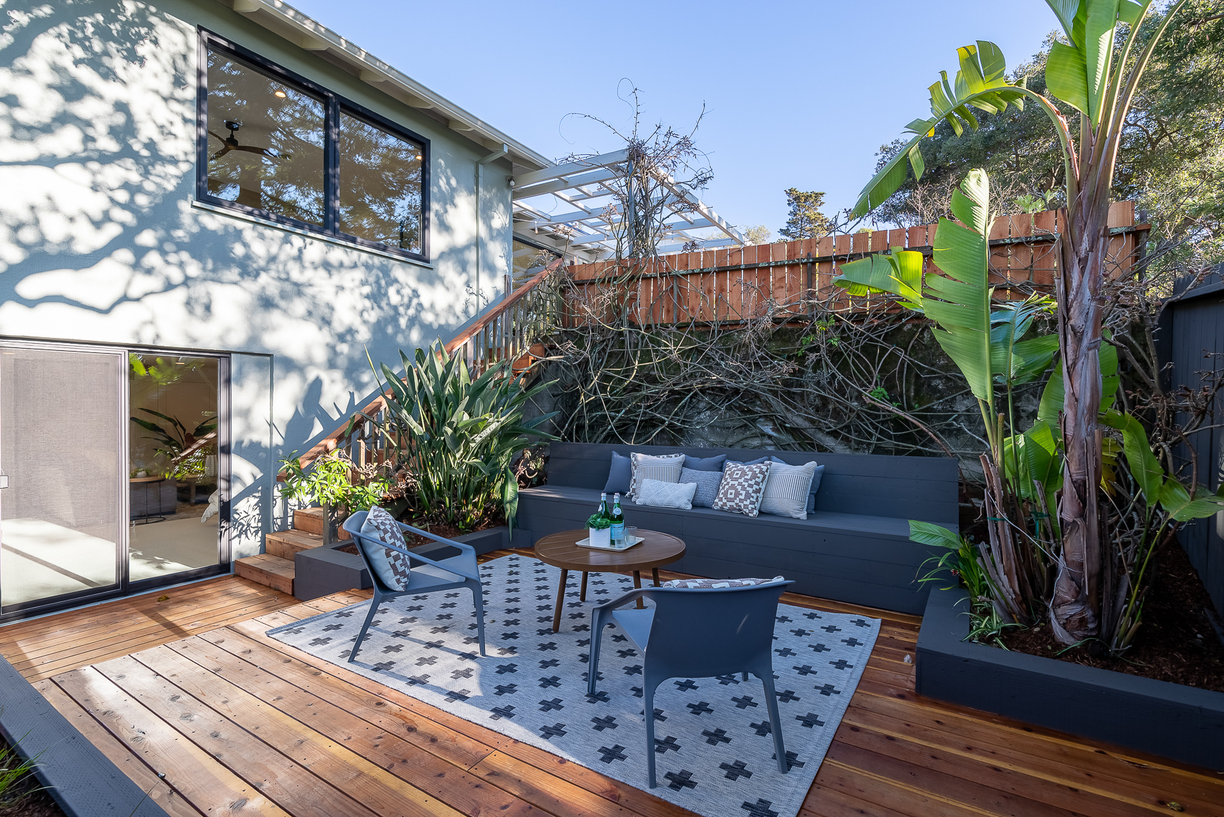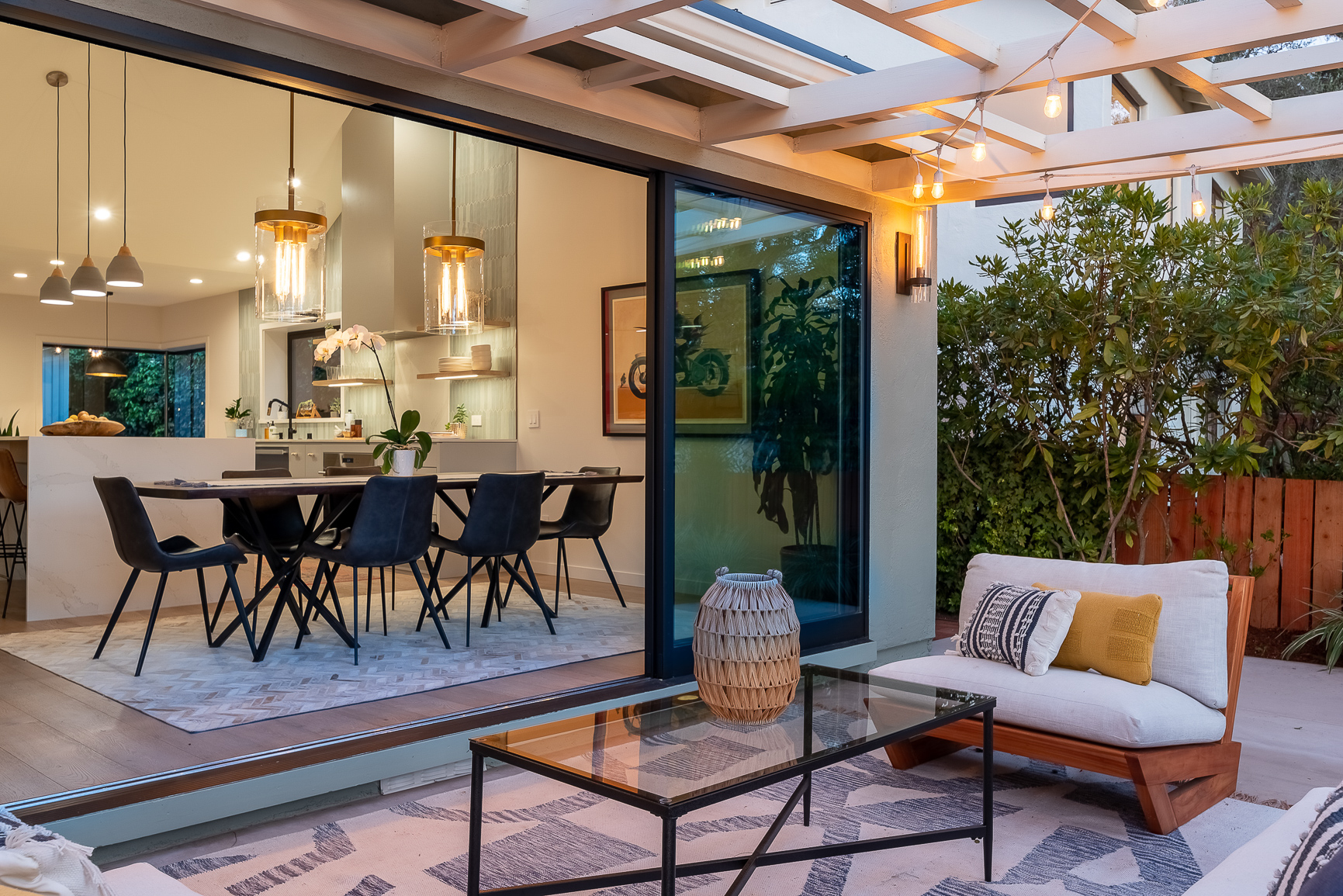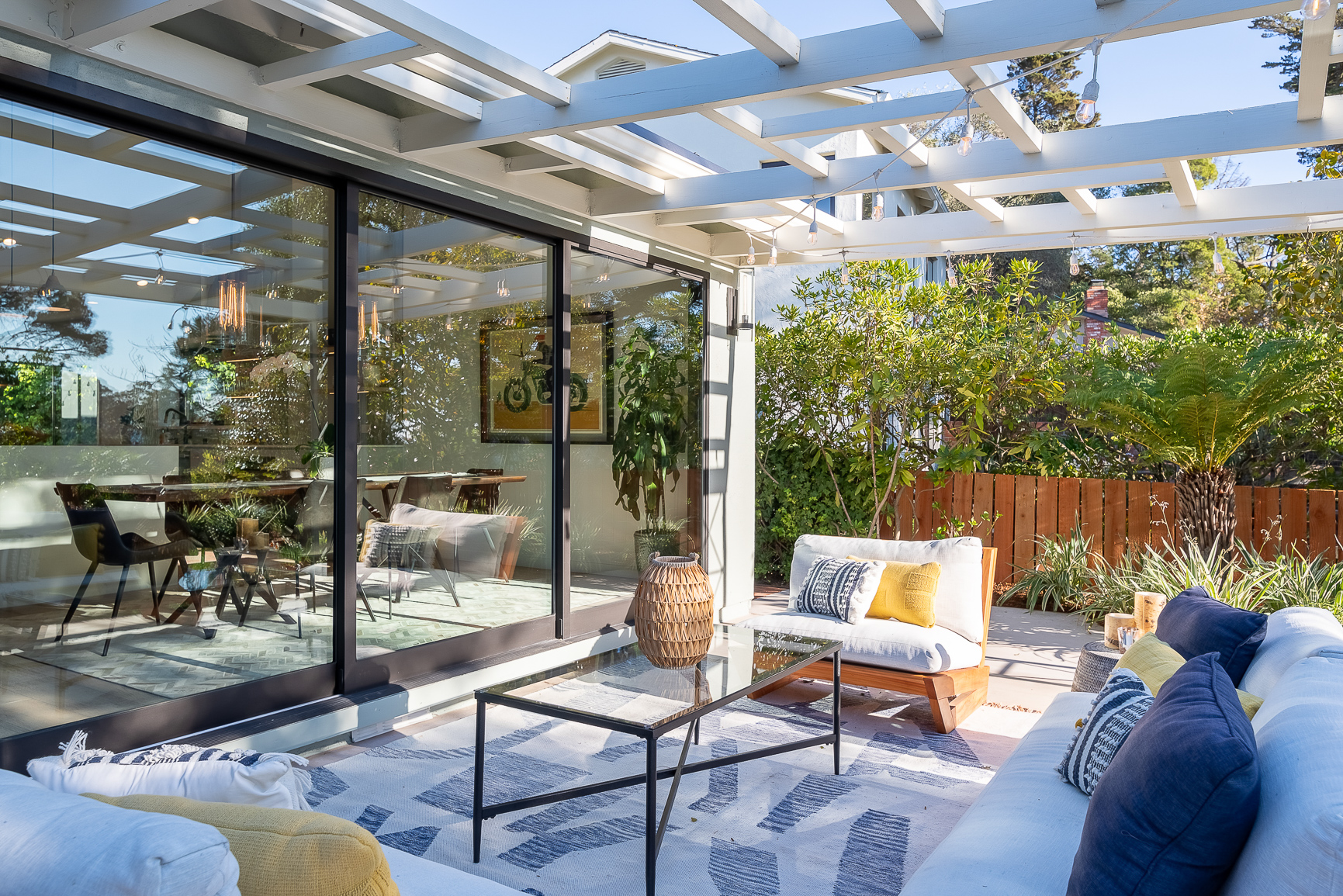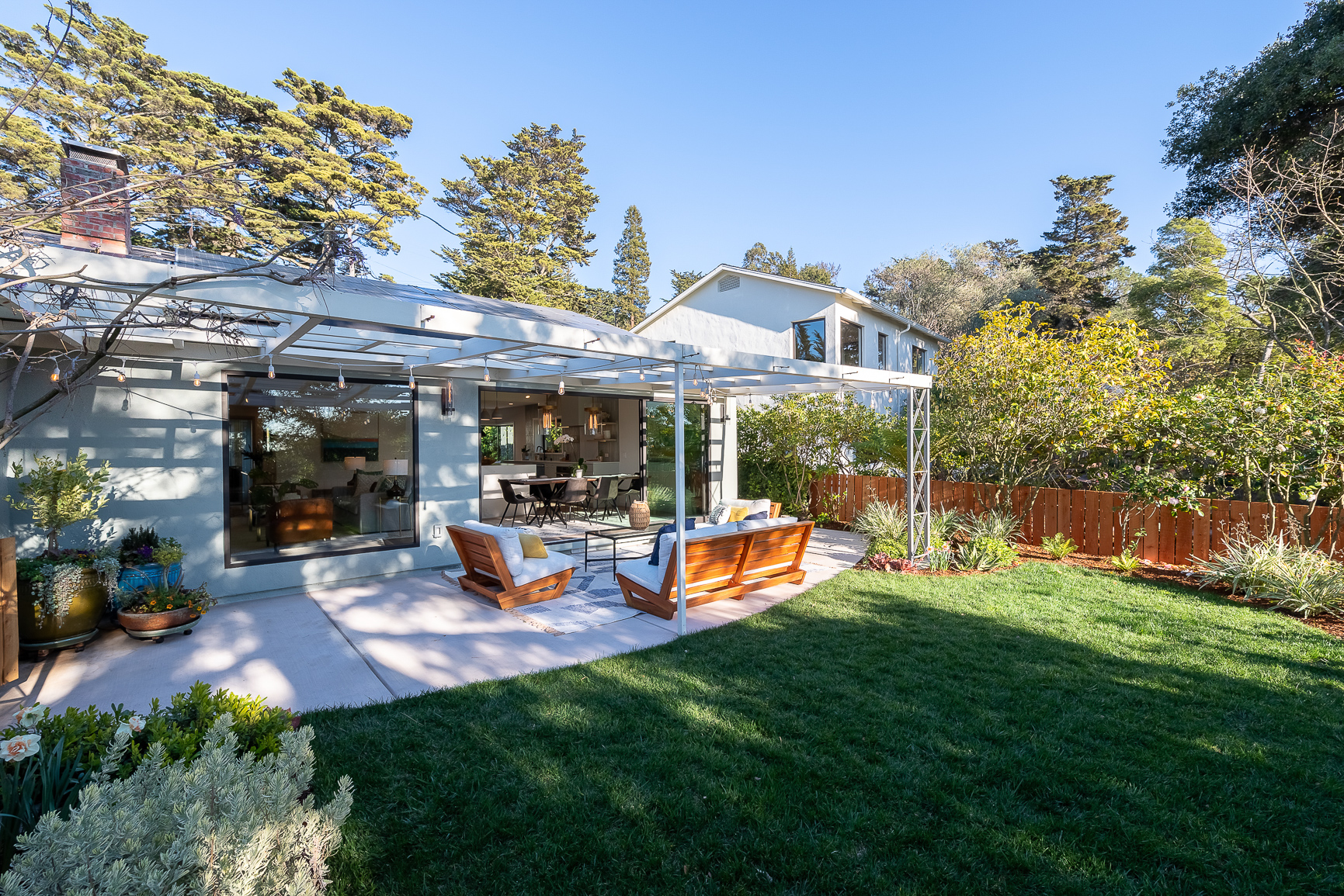 Dwell-inspired Mid-Century two bridge view home featuring approximately $700K in custom renovations. Open floorplan with vaulted ceilings and 15’ wide retractable glass walls opening directly onto the level-out patio & gardens that are perfect for entertaining and play. The Chef’s kitchen is a true epicureans delight, offering a stone island with waterfall edge, Silestone quartz counters, custom tile walls, double door Sub Zero Refrigerator, adjacent Wine Refrigerator, Wolf Range, Miele Appliances and spacious pantry with alternative area for washer and dryer hook-ups.