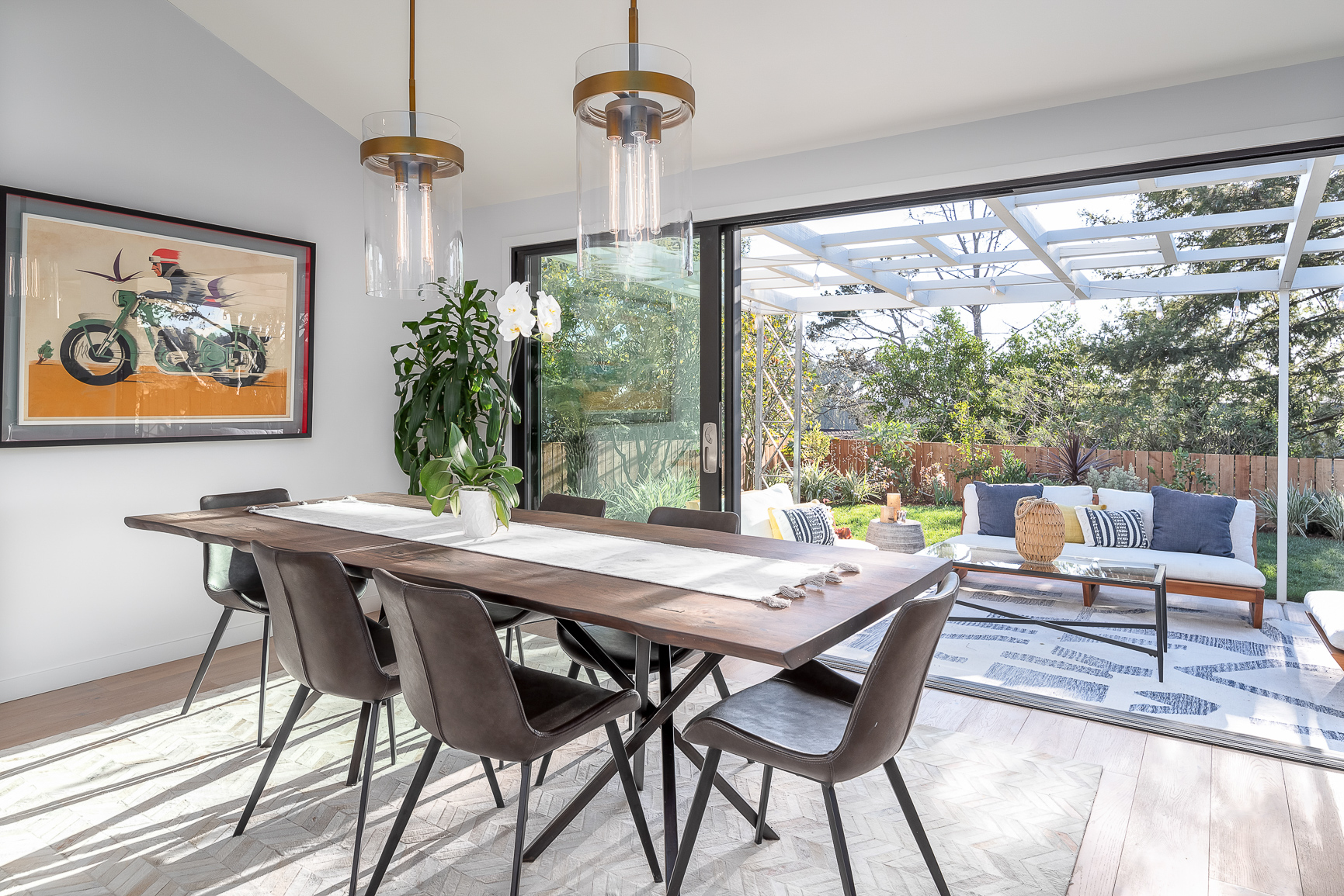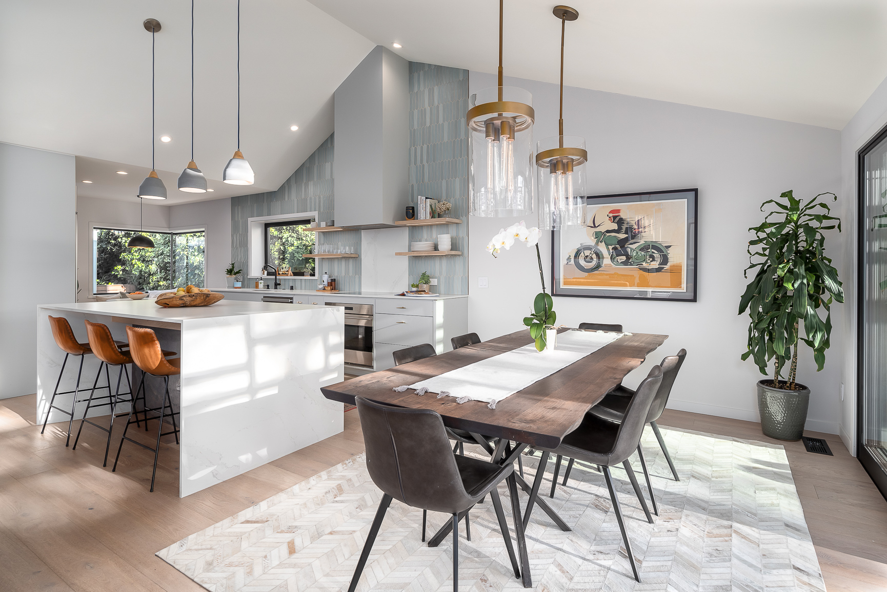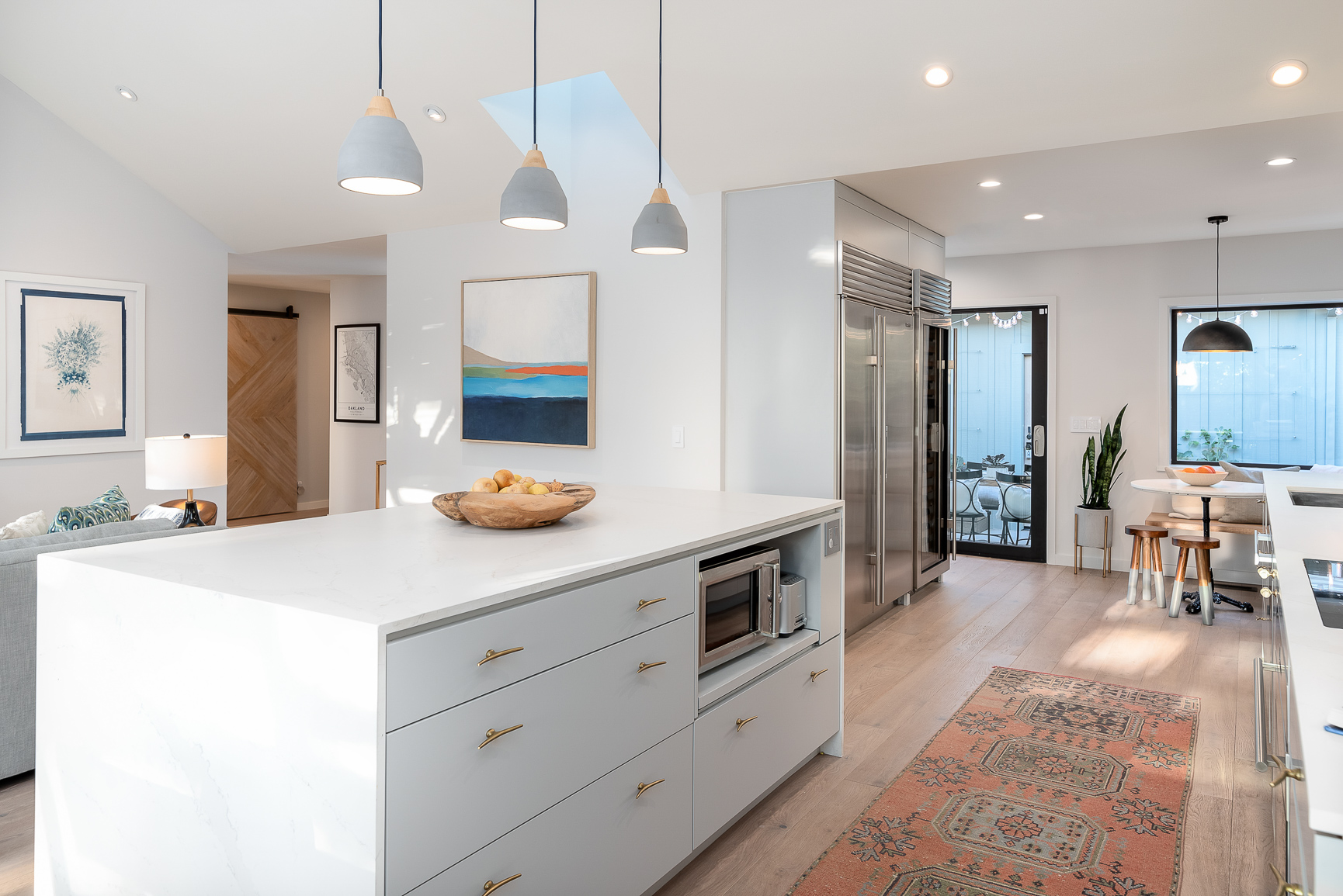 Dwell-inspired Mid-Century two bridge view home featuring approximately $700K in custom renovations. Open floorplan with vaulted ceilings and 15’ wide retractable glass walls opening directly onto the level-out patio & gardens that are perfect for entertaining and play. The Chef’s kitchen is a true epicureans delight, offering a stone island with waterfall edge, Silestone quartz counters, custom tile walls, double door Sub Zero Refrigerator, adjacent Wine Refrigerator, Wolf Range, Miele Appliances and spacious pantry with alternative area for washer and dryer hook-ups.