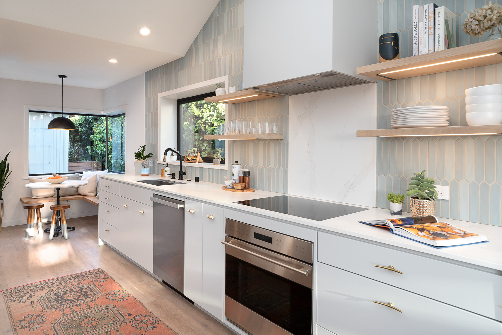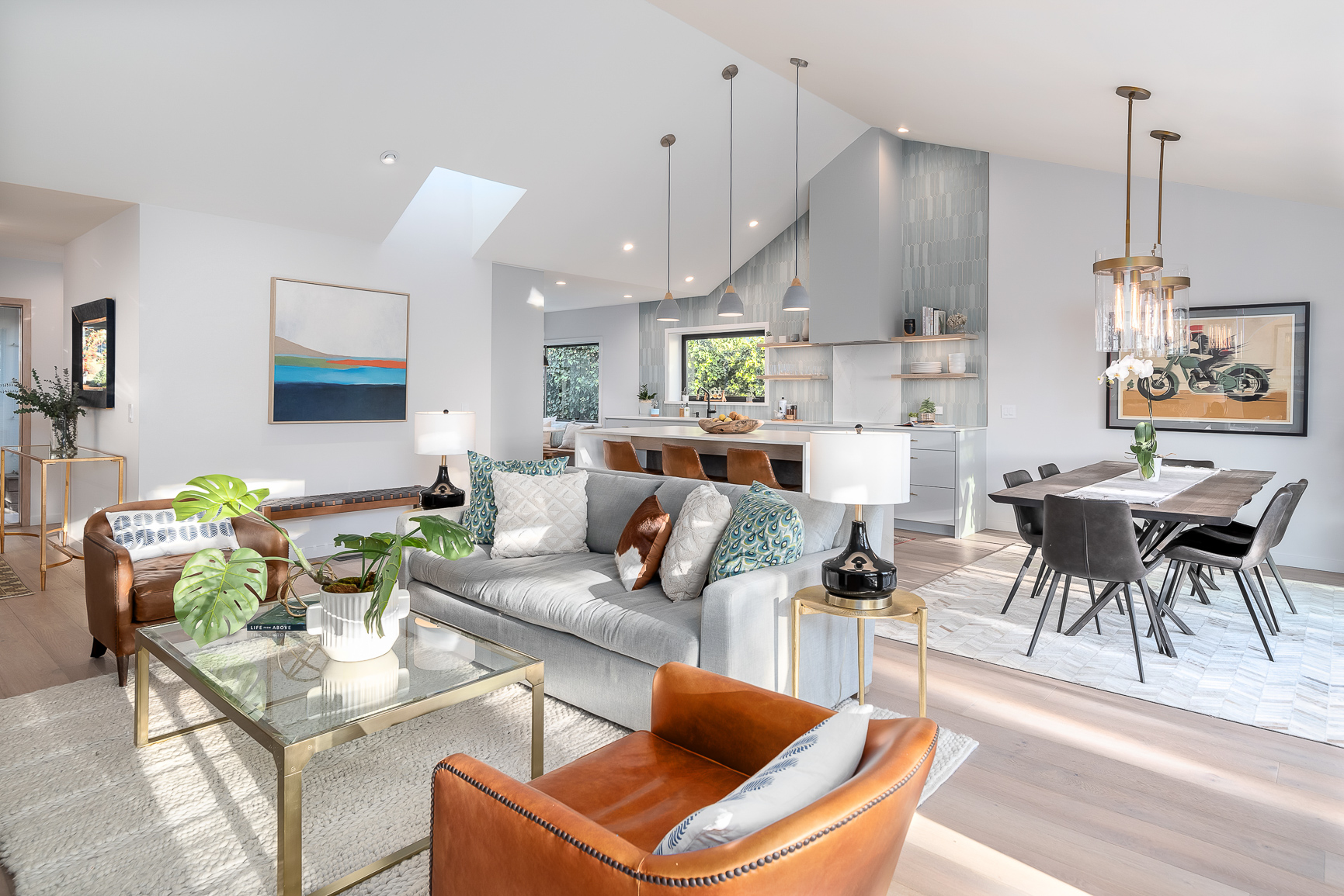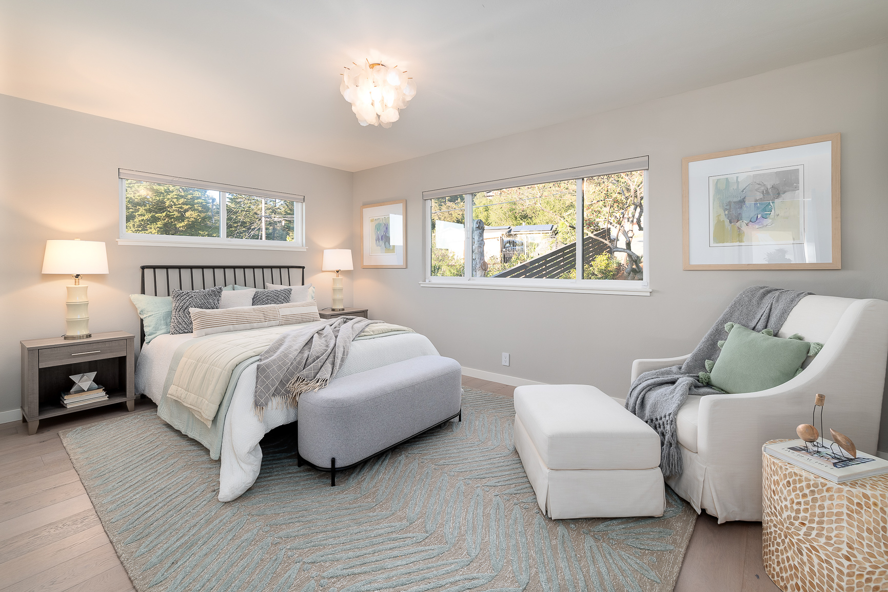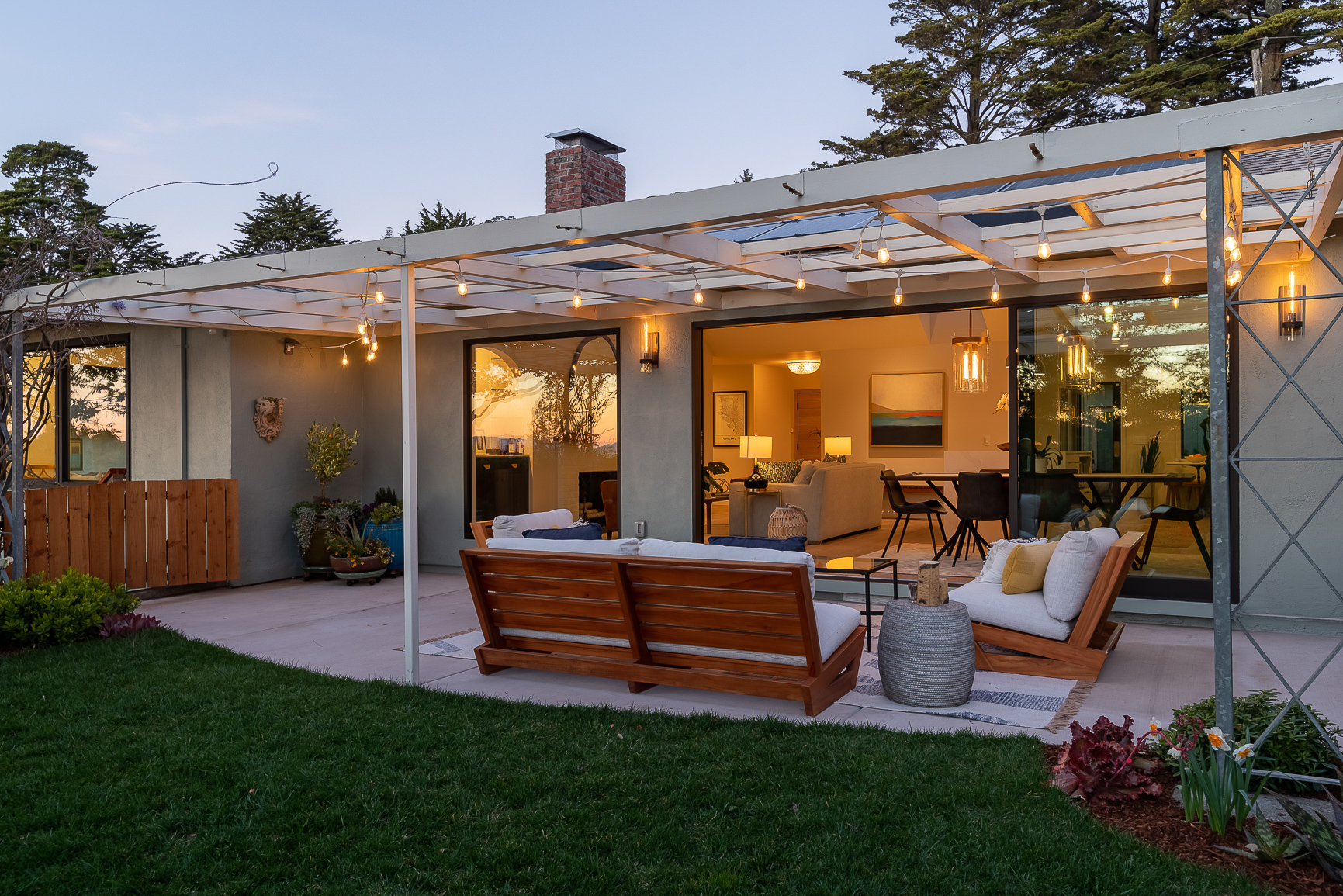 Dwell-inspired Mid-Century two bridge view home featuring approximately $700K in custom renovations. Open floorplan with vaulted ceilings and 15’ wide retractable glass walls opening directly onto the level-out patio & gardens that are perfect for entertaining and play. The Chef’s kitchen is a true epicureans delight, offering a stone island with waterfall edge, Silestone quartz counters, custom tile walls, double door Sub Zero Refrigerator, adjacent Wine Refrigerator, Wolf Range, Miele Appliances and spacious pantry with alternative area for washer and dryer hook-ups.