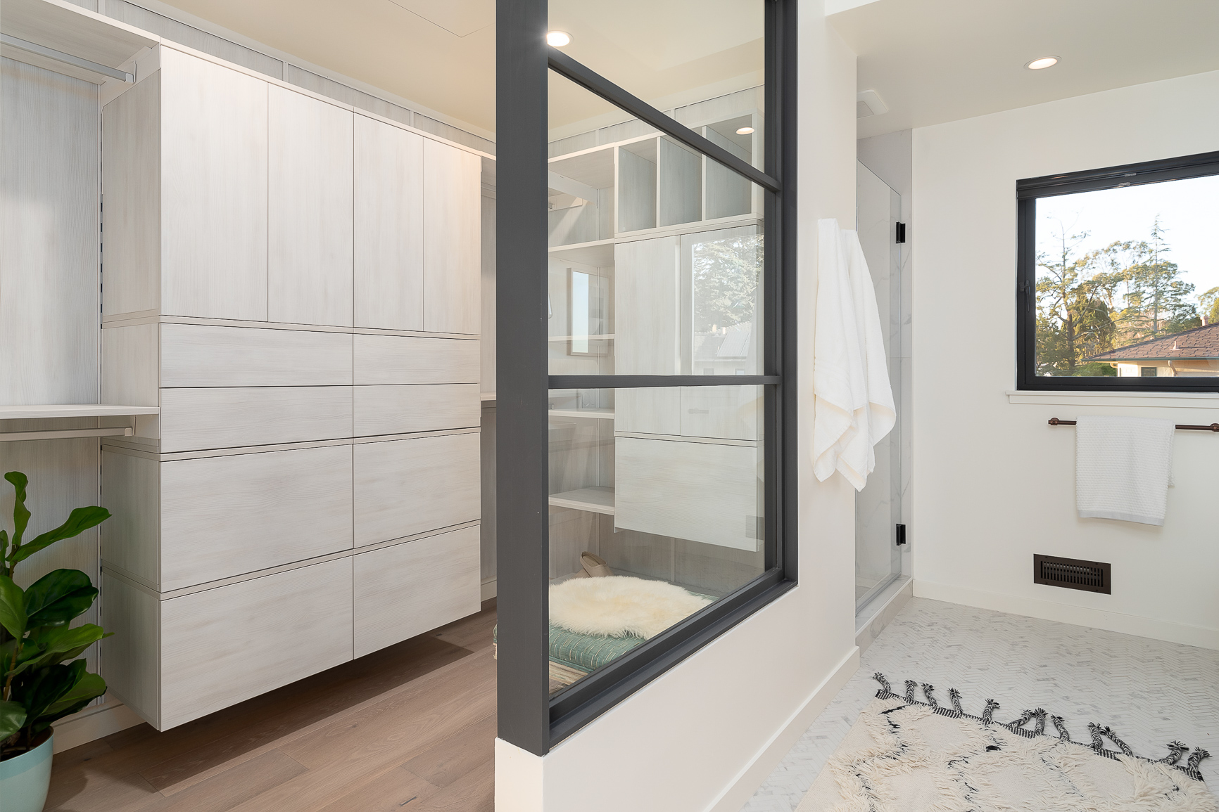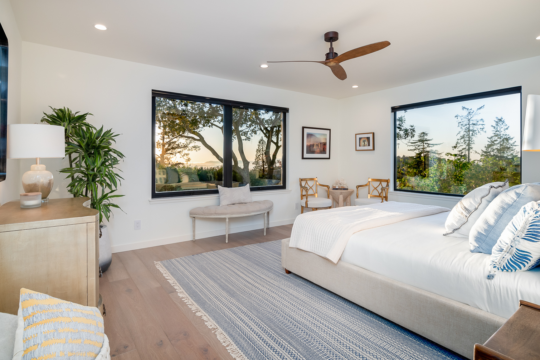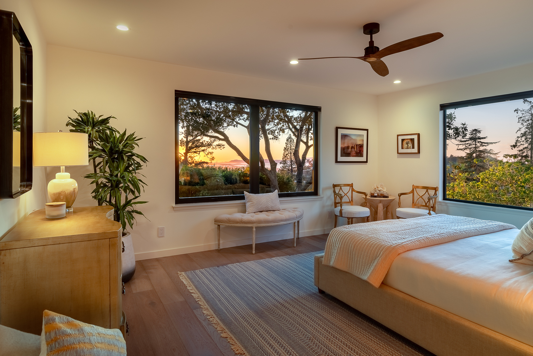 The Primary suite wing features stunning San Francisco and Bay views and is complete with a designer bathroom, heated floors, and a glass-walled walk-in closet. The lower level with its spacious den, fireplace, full bathroom, custom drop-down Murphy bed, and a flex room perfect as a gym or home office offers doors out to its own private patio. In addition, the home is equipped with 24 solar panels that are estimated to generate 93% of the needed electricity requirements of the home and coupled to the solar, two Tesla battery walls located in the garage supply back-up power to the property should the home go off the grid.