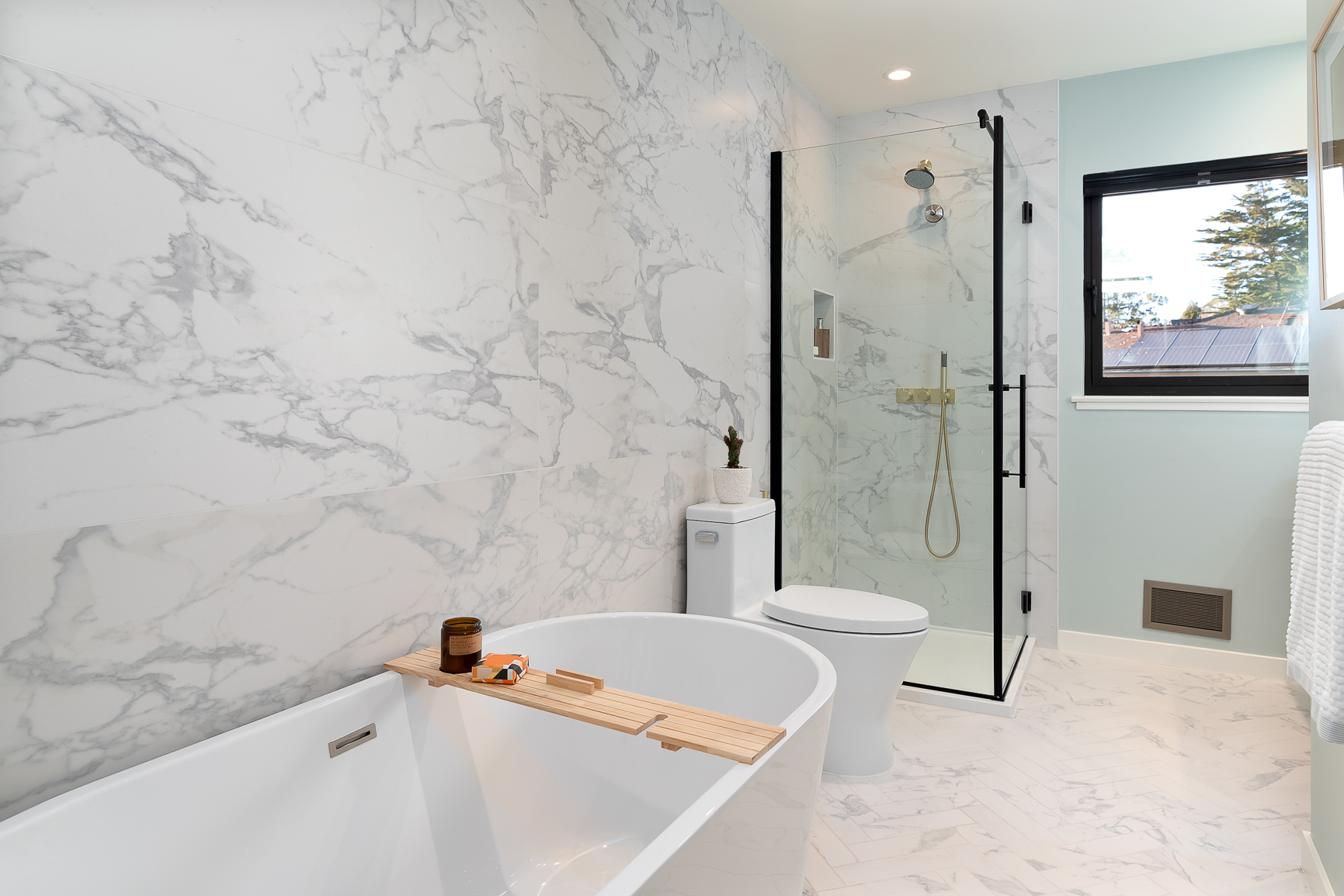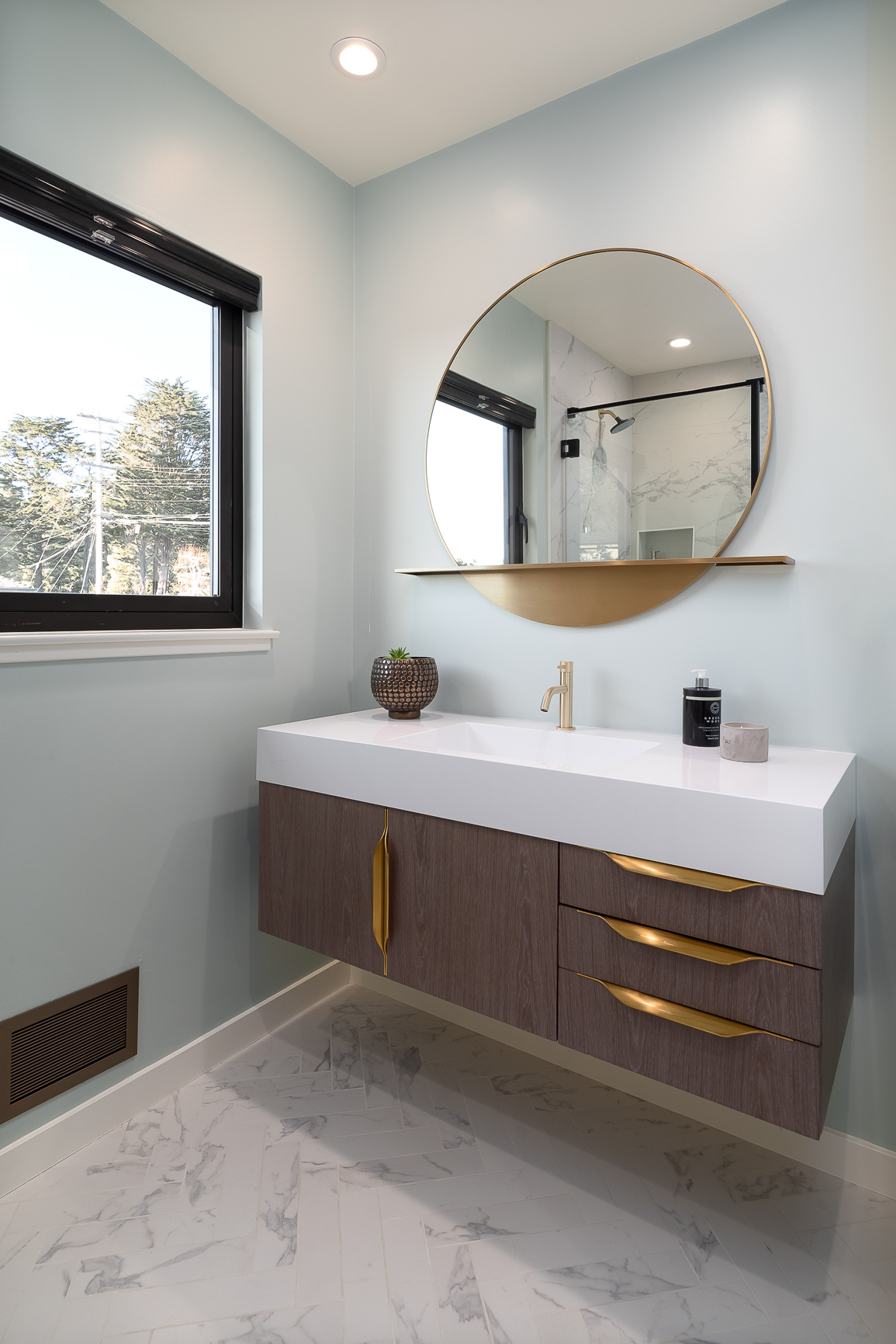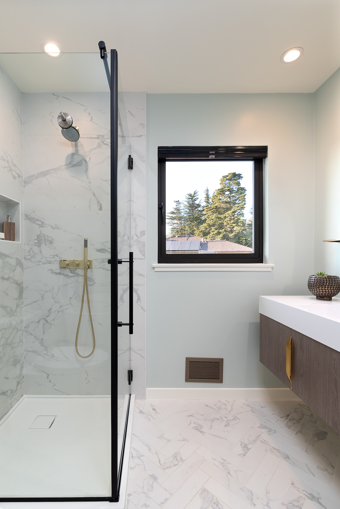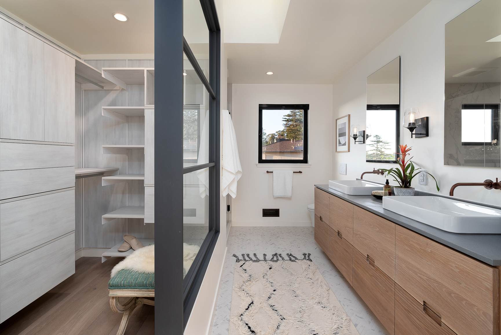 The Primary suite wing features stunning San Francisco and Bay views and is complete with a designer bathroom, heated floors, and a glass-walled walk-in closet. The lower level with its spacious den, fireplace, full bathroom, custom drop-down Murphy bed, and a flex room perfect as a gym or home office offers doors out to its own private patio. In addition, the home is equipped with 24 solar panels that are estimated to generate 93% of the needed electricity requirements of the home and coupled to the solar, two Tesla battery walls located in the garage supply back-up power to the property should the home go off the grid.