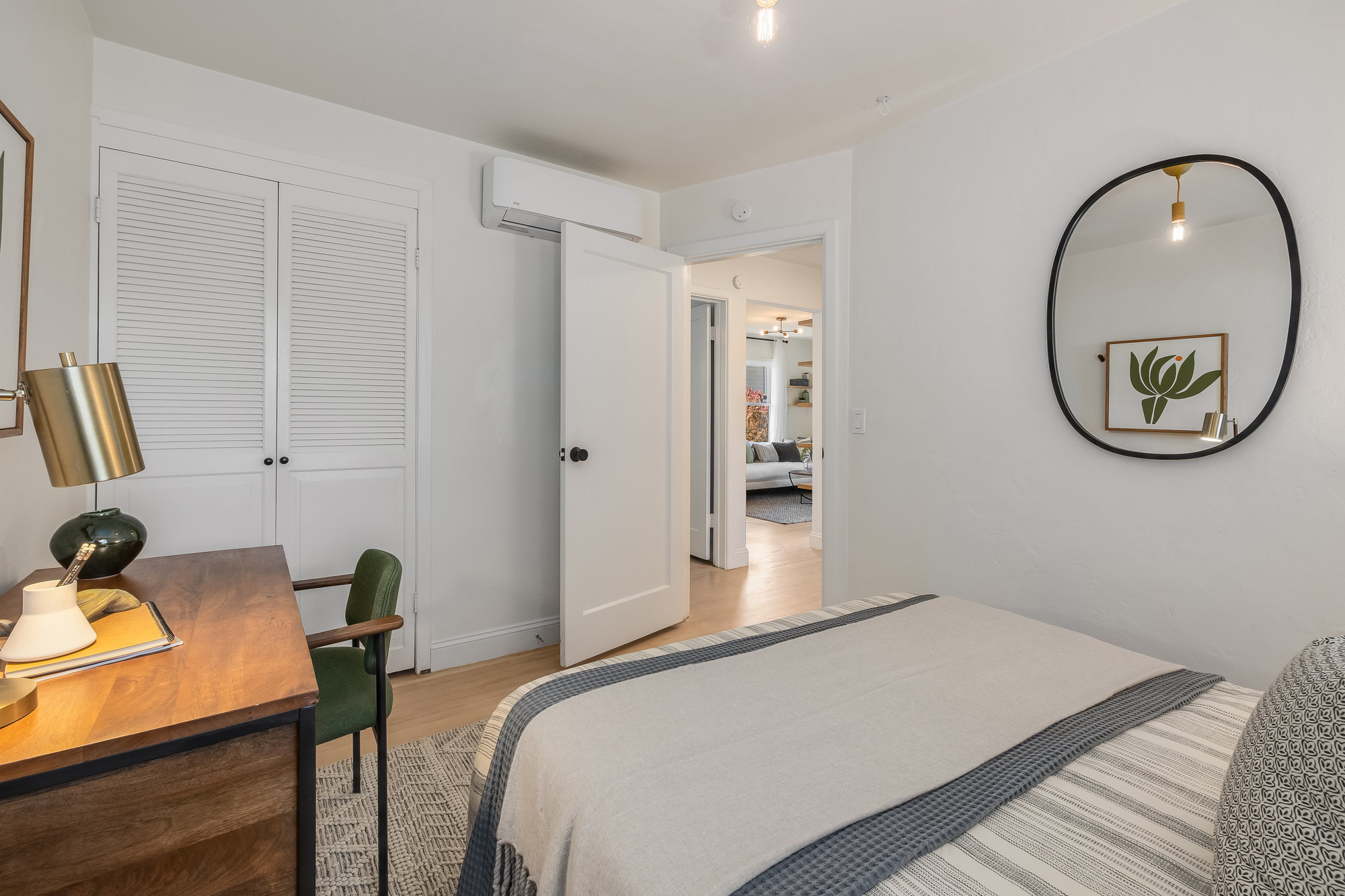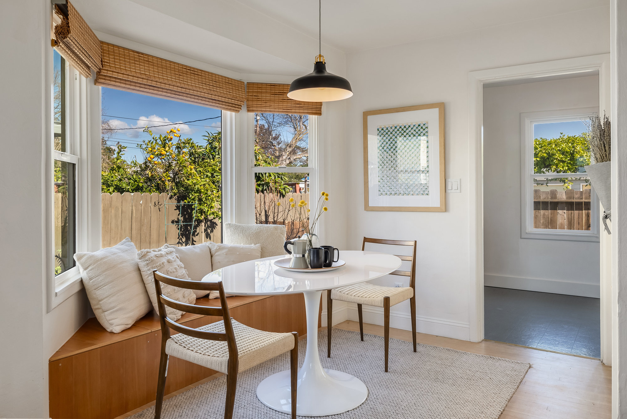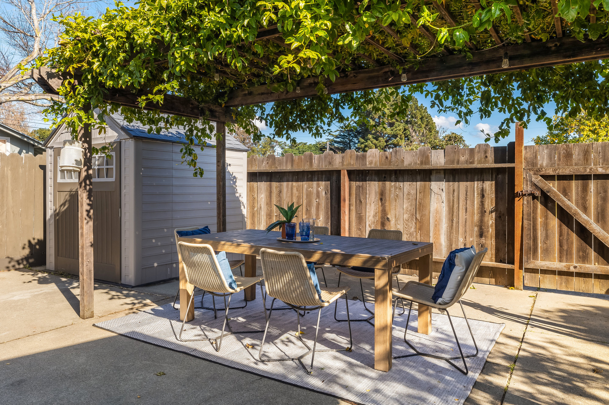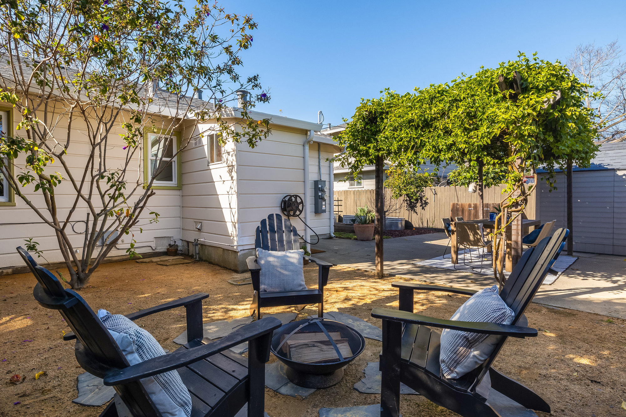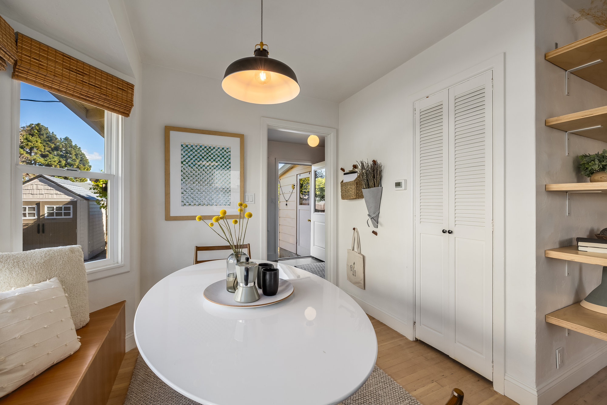 As charming as they come, this beautifully updated 1940s co-op blends vintage character with modern upgrades in one of Alameda’s most walkable neighborhoods. Thoughtfully renovated inside and out, this rare gem boasts one of the largest yards in the community—freshly landscaped and perfect for gardening, entertaining, or quiet evenings under the stars. Inside, the sunlit living and dining area welcomes you with a charming bay window and gleaming, refinished Douglas Fir floors. The fully remodeled kitchen is a standout, featuring custom cabinetry, designer countertops, high-end appliances, and a handcrafted tile backsplash. Two spacious bedrooms and an updated hall bath complete the inviting interior, freshly painted for a crisp, modern feel. This well-appointed co-op includes all-new dual-pane windows, a high-efficiency mini-split system for year-round comfort, an attached utility room with laundry, a roomy storage shed, and two on-site parking spots. Enjoy multiple outdoor seating areas and an unbeatable location just steps from Webster Street’s shops, restaurants, and farmers market. Woodstock Park is right across the street for morning dog walks, and the Seaplane fast ferry gets you to San Francisco in just 18 minutes. Don’t miss this rare opportunity!