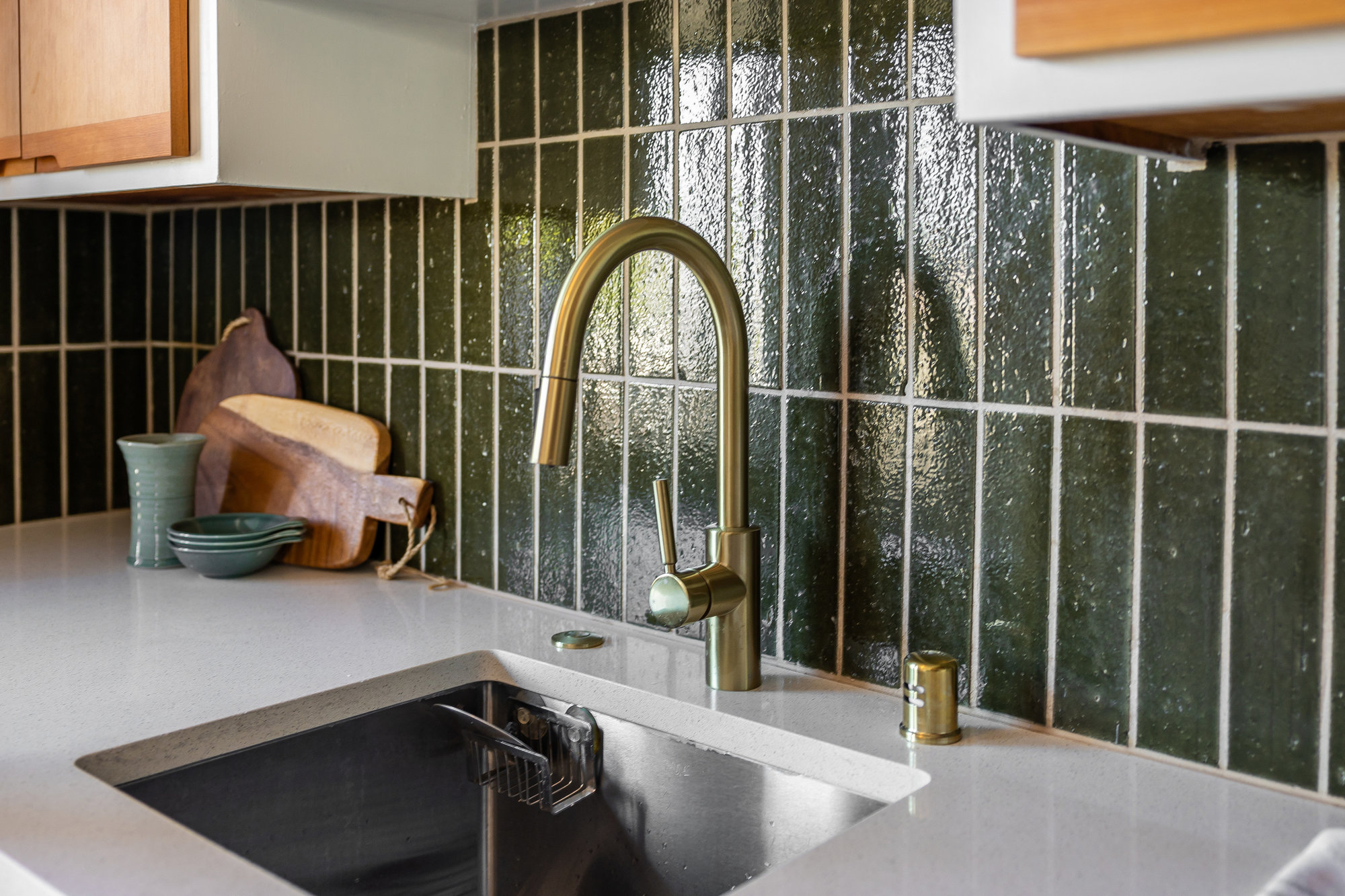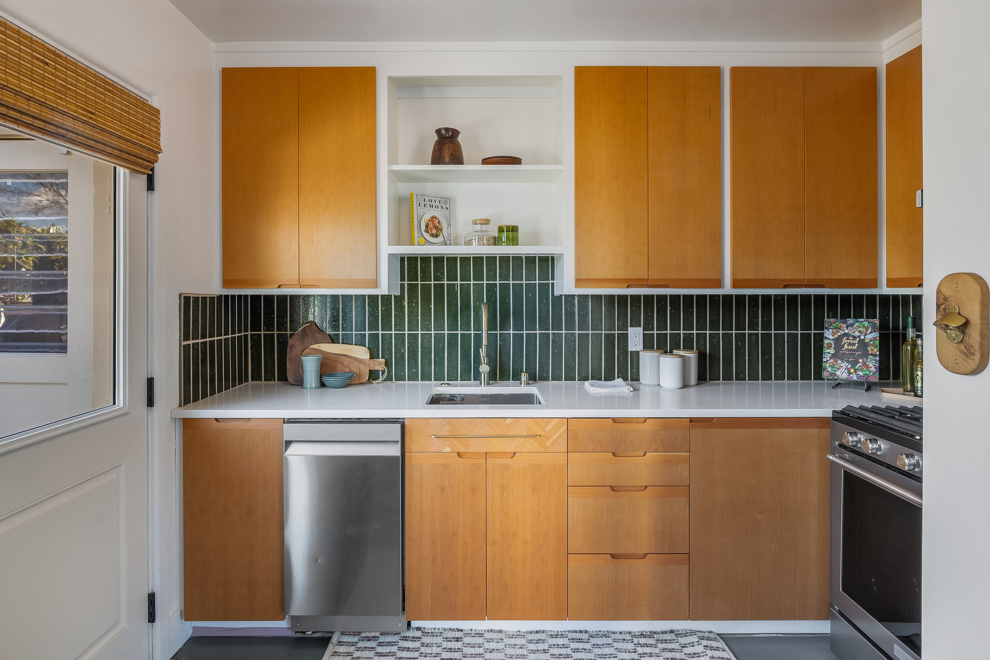 — Updated kitchen with new countertops, backsplash, faucet, and appliances